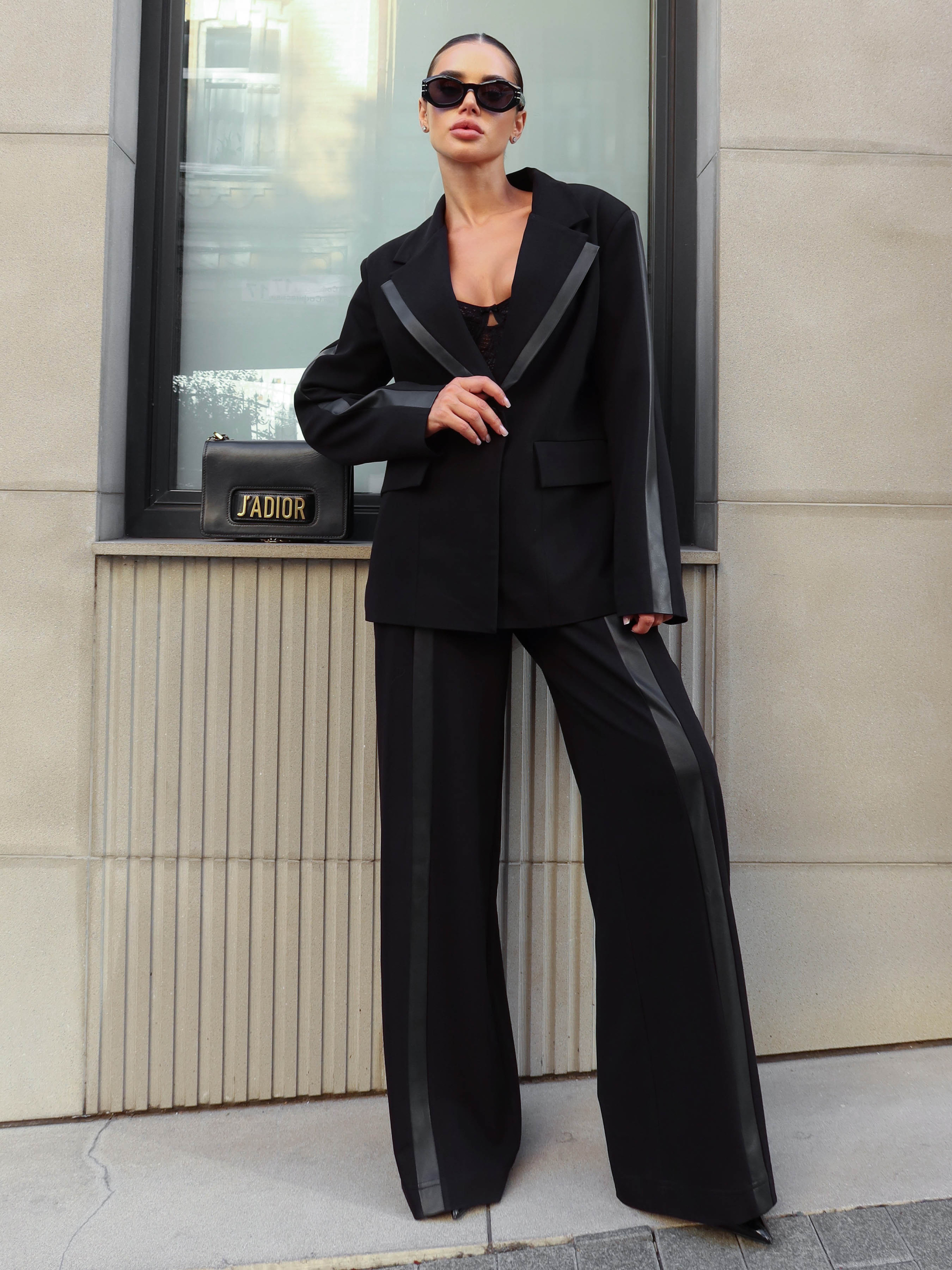 Тканина (колір графіт): костюмна шерсть та екошкіра Склад основна тканина: 55% поліестер 45% вовна Тканина (чорний колір): костюмна тканина «гремі» Склад основна тканина: 75% віскоза 20% поліестер 5% спандекс Склад оздоблення: 94% поліестер, 6% інші волокна Колір: графіт ,чорний Розмір: XS, S, M, L, XL Параметри моделі на фото: Зріст: 170 см, ОГ: 86 см, ОТ: 64 см, ОС: 93 см. На фото представлена модель розмір S Комплектація: брюки *Брюки продаються окремо, у нас в каталозі можна придбати піджак Твіл, представлений на фото Фактичні виміри по виробу: XS р ОТ: 56-70; см ОС: 94 см; Об’єм штанини зверху: 63 см; Довжина виробу з боку: 114 см; Довжина крокового шва: 81,5 см; S р ОТ: 60-74; см ОС: 98 см; Об’єм штанини зверху: 65 см; Довжина виробу з боку: 114 см; Довжина крокового шва: 81 см; M р ОТ: 64-78; см ОС: 102 см; Об’єм штанини зверху: 67 см; Довжина виробу з боку: 114 см; Довжина крокового шва: 80,5 см; L р ОТ: 68-82; см ОС: 106 см; Об’єм штанини зверху:69 см; Довжина виробу з боку: 115 см; Довжина крокового шва: 81,5 см; XL р ОТ: 72-86; см ОС: 110 см; Об’єм штанини зверху: 71 см; Довжина виробу з боку: 115 см; Довжина крокового шва: 81 см; Посадка: висока Силует: вільний Застібка: брючна (гульфік, пояс на ґудзиках) Кишені: у бічних швах із похилим входом Декоративні елементи: лампаси з еко шкіри по центру брюк Стильні брюки з костюмної тканини у сірому та чорному кольорі створені для поєднання комфорту й елегантності. Модель має високу посадку, вільний силует і класичну брючну застібку з гульфіком та поясом на ґудзиках. Лампаси з екошкіри по центру додають сучасного акценту, а бічні кишені з похилим входом роблять виріб практичним у щоденному носінні.