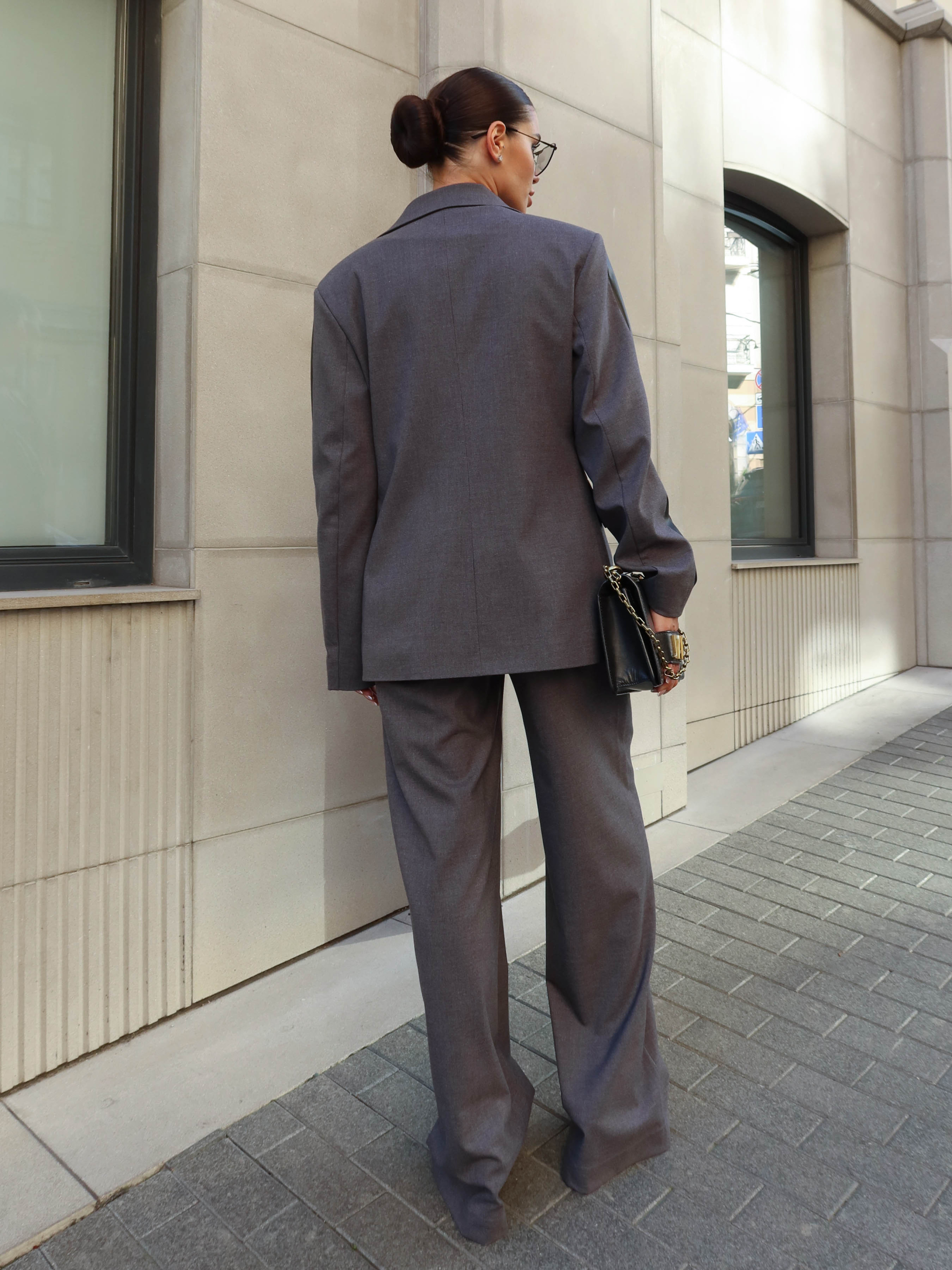 Тканина (колір графіт): костюмна шерсть та екошкіра Склад основна тканина: 55% поліестер 45% вовна Тканина (чорний колір): костюмна тканина «гремі» Склад основна тканина: 75% віскоза 20% поліестер 5% спандекс Склад оздоблення: 94% поліестер, 6% інші волокна Колір: графіт ,чорний Розмір: XS, S, M, L, XL Параметри моделі на фото: Зріст: 170 см, ОГ: 86 см, ОТ: 64 см, ОС: 93 см. На фото представлена модель розмір S Комплектація: брюки *Брюки продаються окремо, у нас в каталозі можна придбати піджак Твіл, представлений на фото Фактичні виміри по виробу: XS р ОТ: 56-70; см ОС: 94 см; Об’єм штанини зверху: 63 см; Довжина виробу з боку: 114 см; Довжина крокового шва: 81,5 см; S р ОТ: 60-74; см ОС: 98 см; Об’єм штанини зверху: 65 см; Довжина виробу з боку: 114 см; Довжина крокового шва: 81 см; M р ОТ: 64-78; см ОС: 102 см; Об’єм штанини зверху: 67 см; Довжина виробу з боку: 114 см; Довжина крокового шва: 80,5 см; L р ОТ: 68-82; см ОС: 106 см; Об’єм штанини зверху:69 см; Довжина виробу з боку: 115 см; Довжина крокового шва: 81,5 см; XL р ОТ: 72-86; см ОС: 110 см; Об’єм штанини зверху: 71 см; Довжина виробу з боку: 115 см; Довжина крокового шва: 81 см; Посадка: висока Силует: вільний Застібка: брючна (гульфік, пояс на ґудзиках) Кишені: у бічних швах із похилим входом Декоративні елементи: лампаси з еко шкіри по центру брюк Стильні брюки з костюмної тканини у сірому та чорному кольорі створені для поєднання комфорту й елегантності. Модель має високу посадку, вільний силует і класичну брючну застібку з гульфіком та поясом на ґудзиках. Лампаси з екошкіри по центру додають сучасного акценту, а бічні кишені з похилим входом роблять виріб практичним у щоденному носінні.