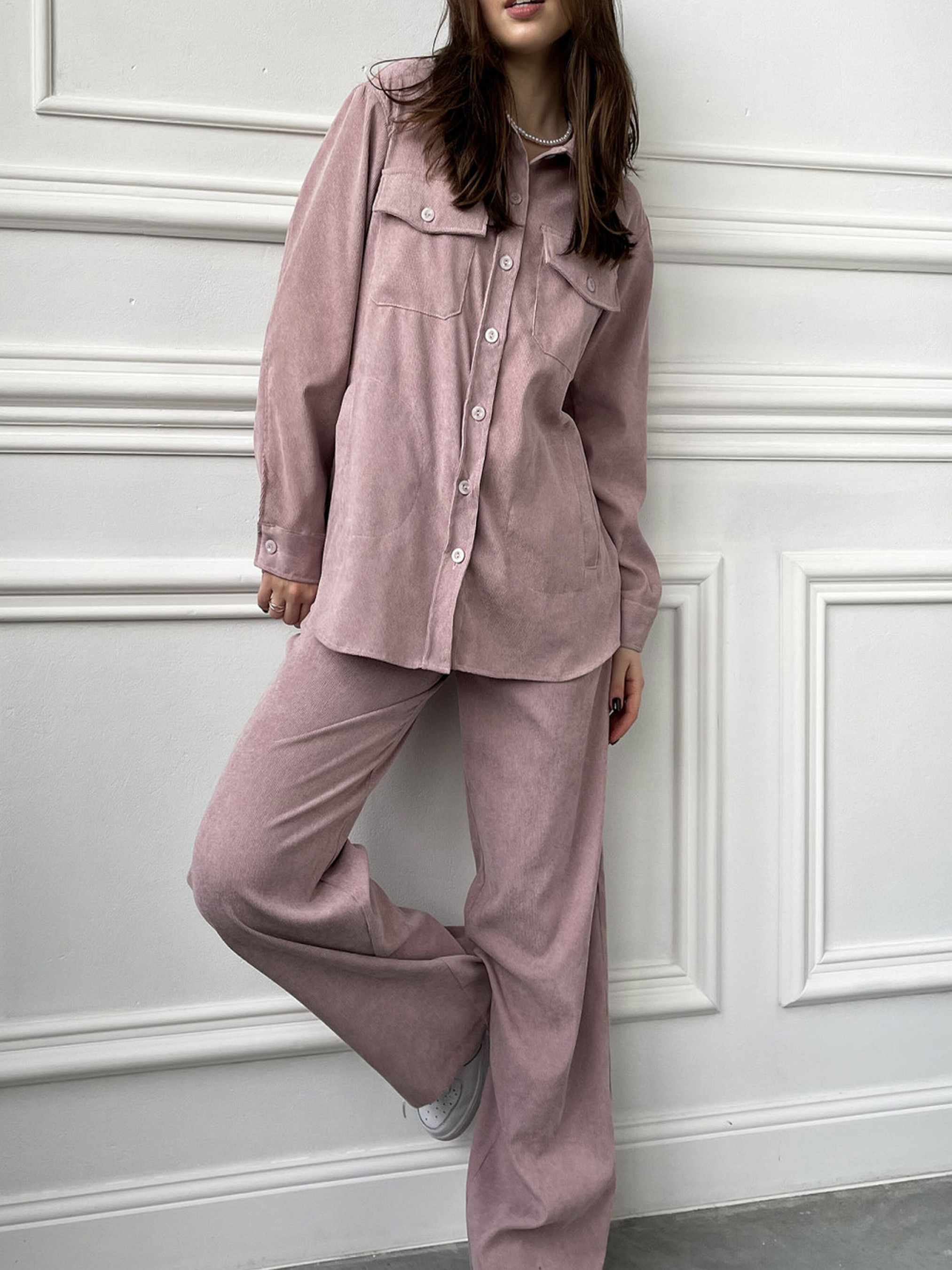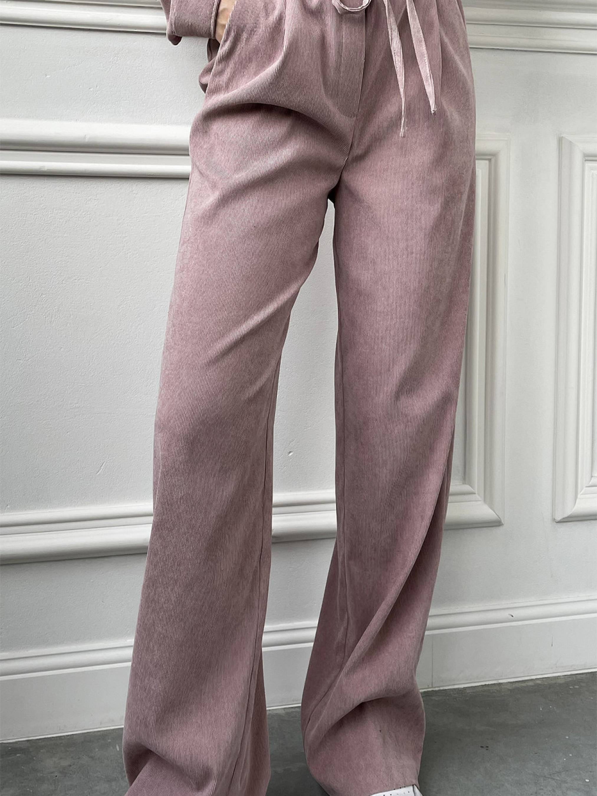 Жіночі рожеві брюки з кишенями, широким кроєм, на резинці та з поясом. Ці стильні жіночі брюки ніжно-рожевого кольору стануть чудовим доповненням до гардероба, поєднуючи комфорт і трендовий вигляд. Широкий крій забезпечує вільний силует, що додає легкості та елегантності образу. Основні характеристики: 1. Матеріал: М'яка та приємна на дотик тканина забезпечує комфорт протягом усього дня. 2. Посадка: Завдяки поясу на резинці брюки добре сідають по фігурі та не сковують рухів. 3. Кишені: Практичні бічні кишені додають зручності та функціональності. 4. Дизайн: Широкі штани виглядають стильно як у повсякденних, так і у більш вишуканих образах. Як носити: 1. Для створення легкого casual-луку поєднуйте з базовими футболками та кросівками 2. В офісному стилі брюки чудово доповнять блузи та туфлі на підборах. 3. Для вечірнього виходу комбінуйте з витонченими аксесуарами та елегантним взуттям. Ці брюки - ідеальний вибір для жінок, які цінують зручність та сучасний стиль.
