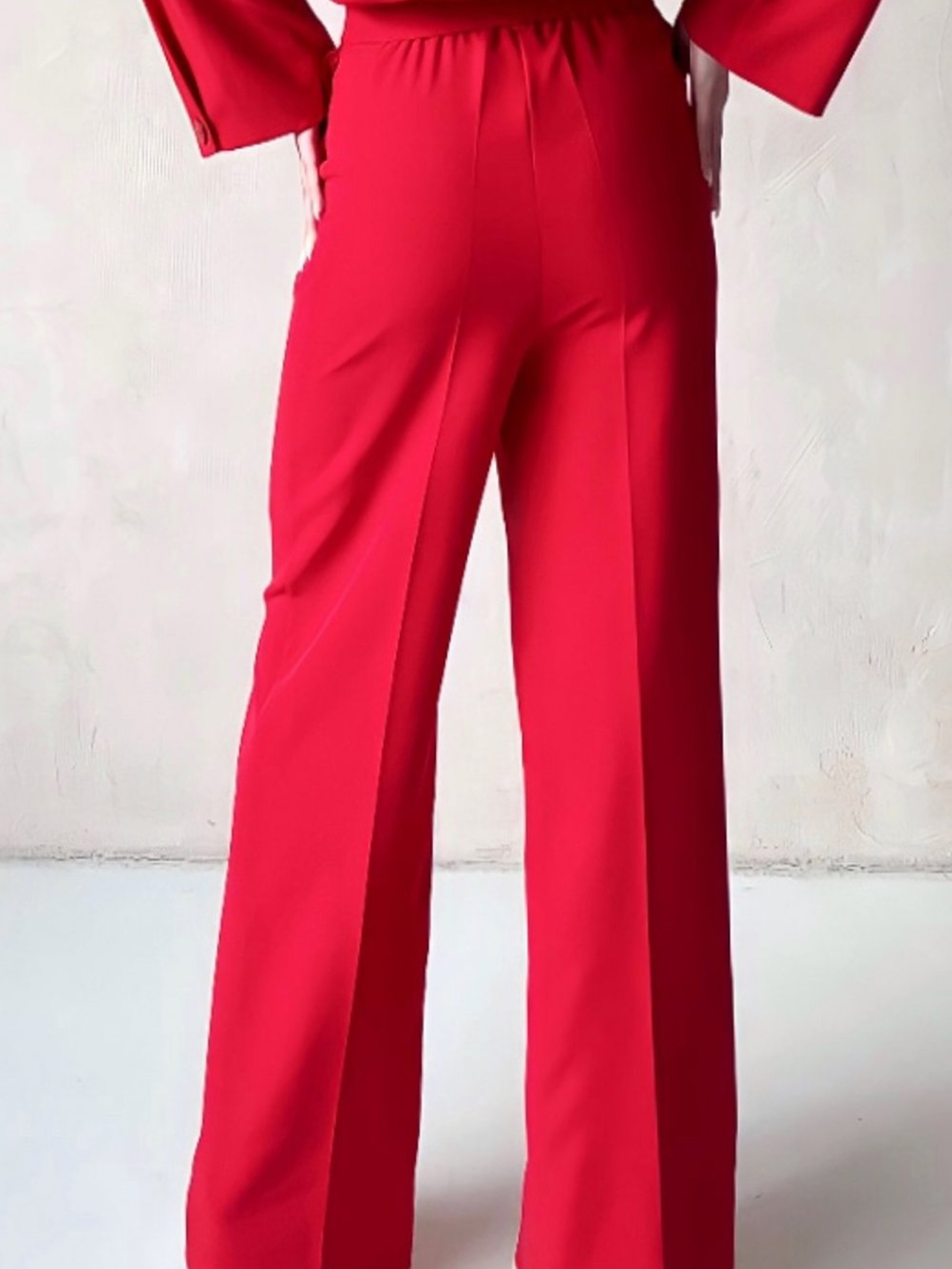 Жіночі червоні брюки з кишенями, широким кроєм, на резинці Ці червоні брюки з широким кроєм і кишенями — сміливий і стильний вибір для створення яскравих і енергійних образів. Широкий крій надає комфорт та свободу рухів, а резинка на талії гарантує зручну посадку і підтримку протягом усього дня. Яскравий червоний колір додає впевненості і енергії, а кишені додають практичності і функціональності. Це ідеальний варіант для тих, хто хоче виразити свою індивідуальність і стиль. Особливості: Широкий крій: дозволяє створити розслаблений і стильний вигляд, підходить для різних типів фігури. Червоний колір: яскравий і енергійний відтінок, який привертає увагу і додає впевненості образу. Резинка на талії: зручна для комфортної посадки та підтримки. Кишені: зручні та практичні для зберігання дрібниць. Молнія: зручна застібка для легкості носіння. Рекомендації по стилізації: Для стильного повсякденного образу поєднуйте ці брюки з білим топом або футболкою та кедами. Для більш елегантного вигляду носіть їх з блузою або сорочкою в нейтральних кольорах і туфлями на підборах. Завершіть образ аксесуарами, такими як стильна сумка або ремінь. Ці червоні брюки з широким кроєм і кишенями — ідеальний вибір для тих, хто хоче виглядати яскраво, енергійно і стильно в будь-якій ситуації.
