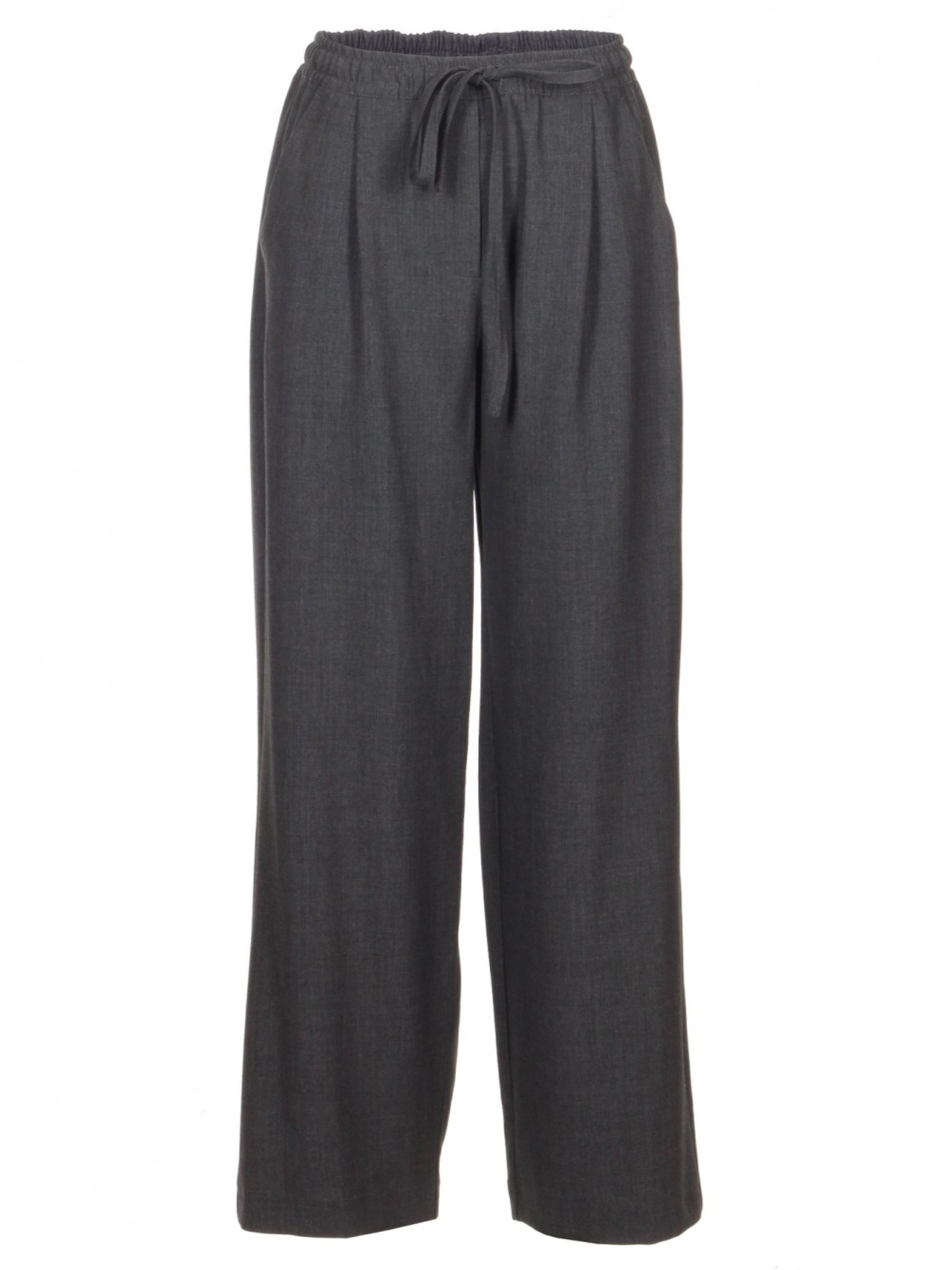 Жіночі сірі брюки з кишенями та широким кроєм Ці сірі брюки з кишенями та широким кроєм поєднують комфорт і стиль, що робить їх чудовим вибором для повсякденного носіння або більш вишуканих образів. Резинка на поясі забезпечує зручну посадку, а широкий крій створює вільний та елегантний вигляд. Основні характеристики: Колір: Сірий — нейтральний і універсальний відтінок, який легко поєднується з різними кольорами та текстурами. Крій: Широкий крій дозволяє створити стильний і комфортний образ, забезпечуючи свободу рухів. Пояс: Еластична резинка та пояс надають брюкам зручність і практичність у носінні. Кишені: Бокові кишені додають функціональності та стильного акценту. Як носити: Повсякденний стиль: Поєднуйте з простими топами або футболками для створення зручного і стильного образу. Офісний стиль: Додайте класичну блузу або сорочку для елегантного і професійного вигляду. Нарядний образ: Виберіть витончені аксесуари та взуття на підборах для особливих випадків. Сірі брюки з кишенями та широким кроєм — це універсальний і зручний елемент гардероба, що підходить для різних стильних образів і нагод.