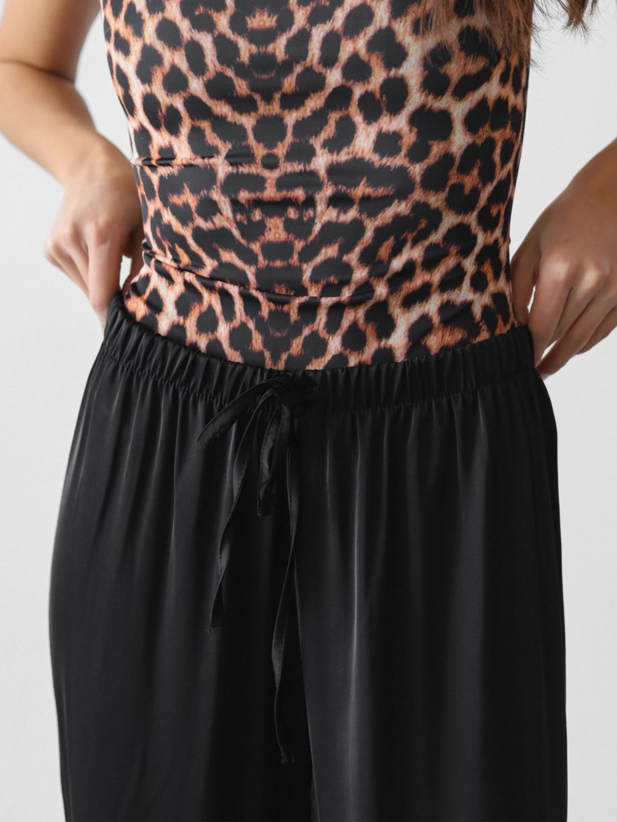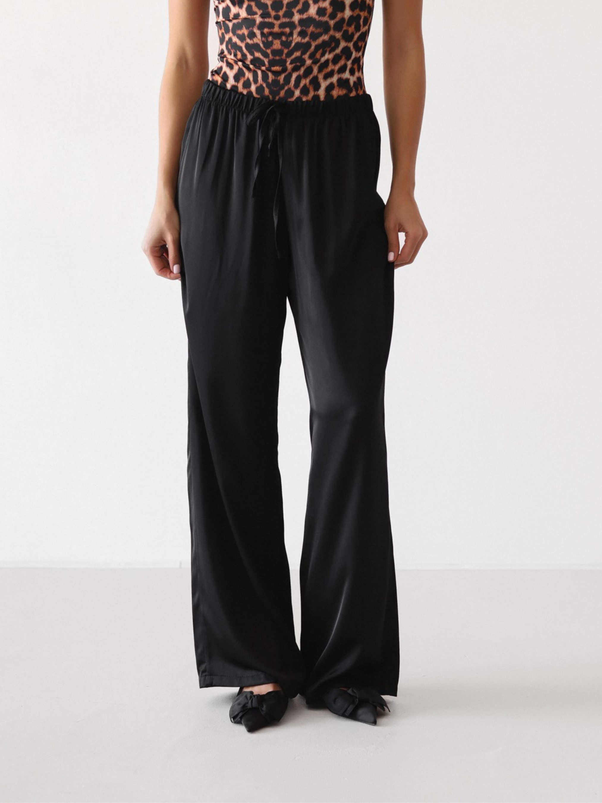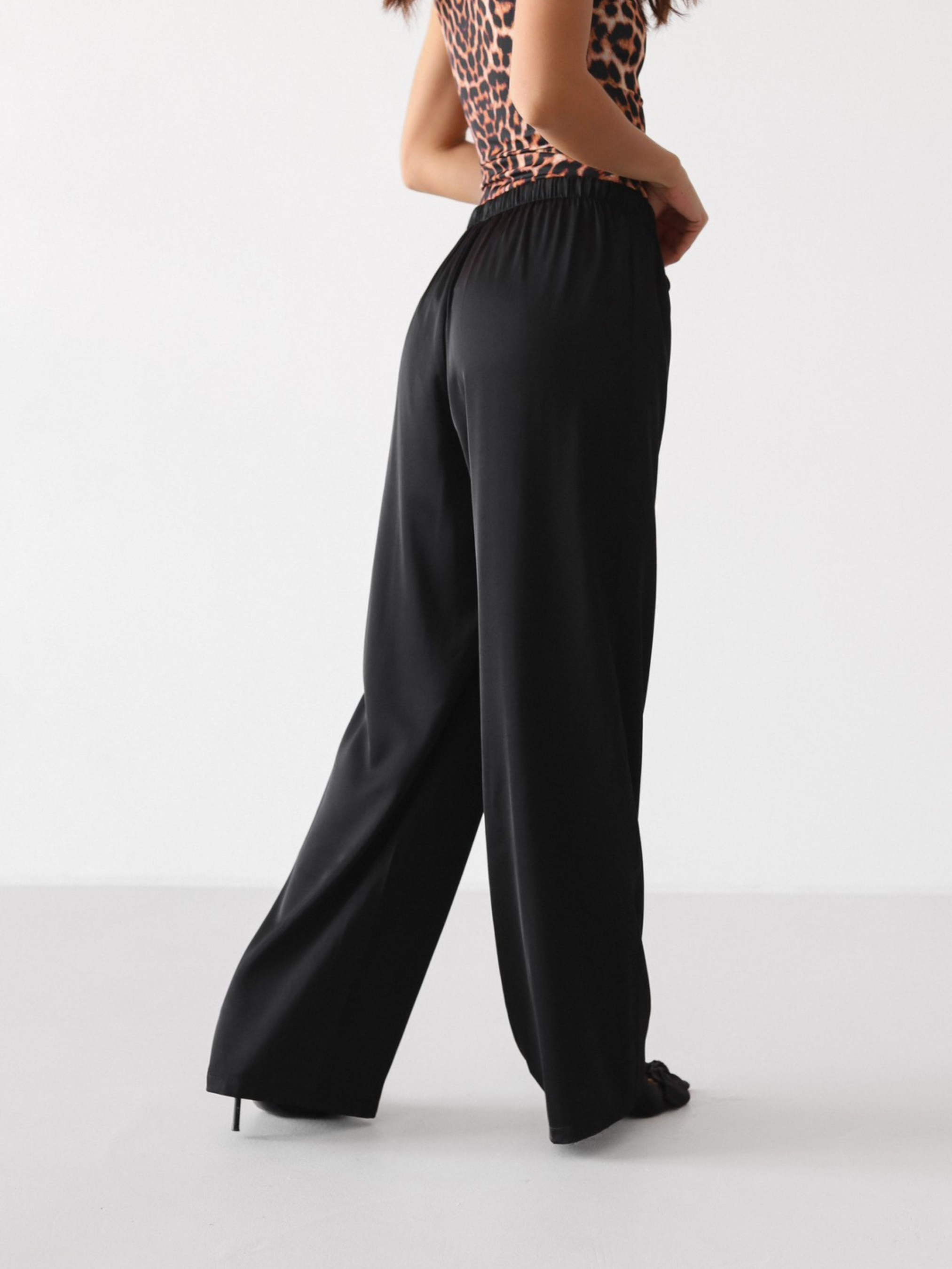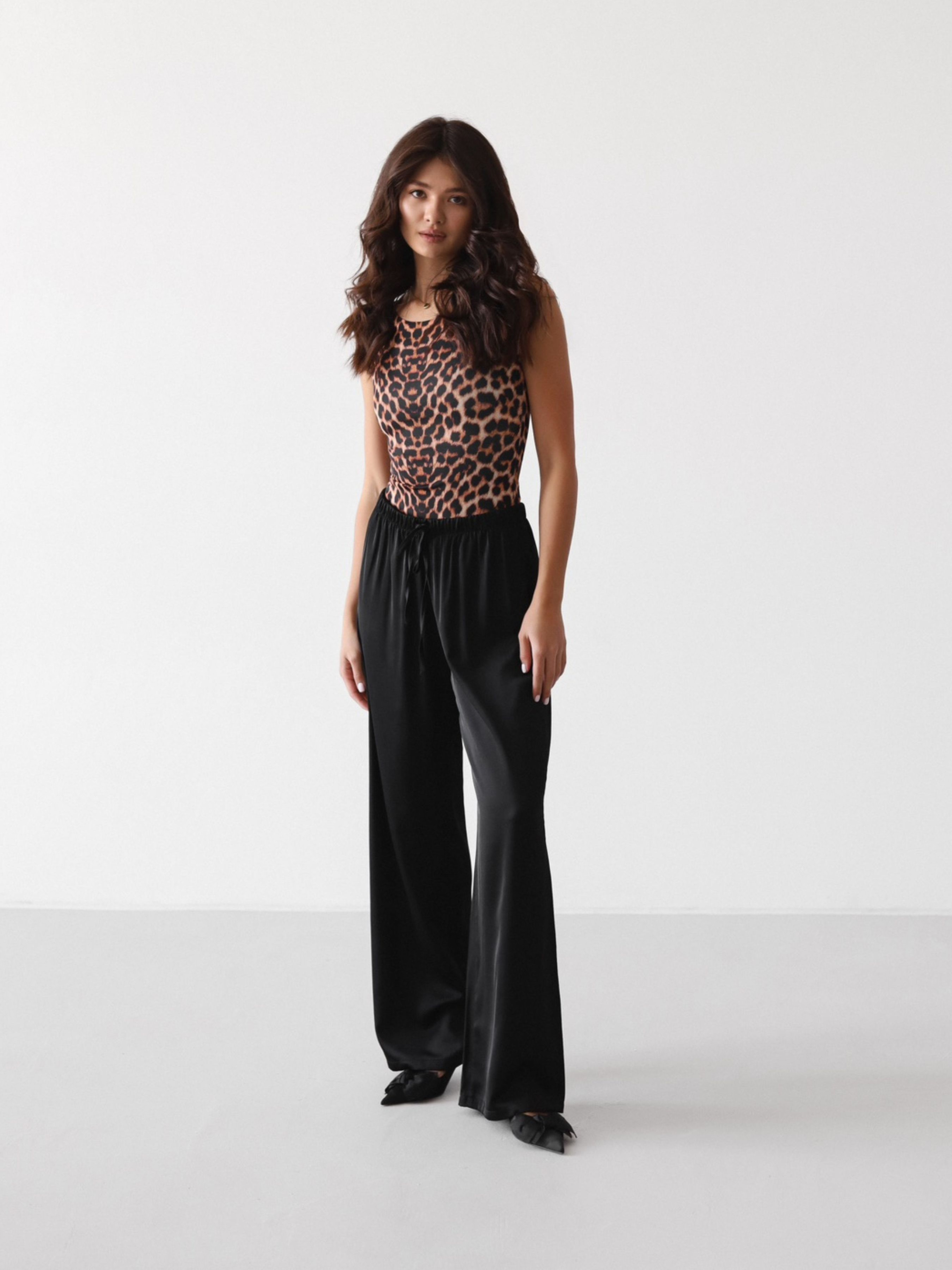 Легкі та хвилясті штани з сатину - must-have для стильного і комфортного образу. Модель виконана з приємної до тіла м'якої тканини, яка гарно лягає по фігурі та дарує відчуття легкості протягом дня. Штани мають вільний крій, еластичний пояс на гумці із зав'язками для зручної посадки. Ідеально комбінуються з базовими футболками, топами, піджаками та кросівками або взуттям на підборах. Підійдуть як для міських прогулянок, так і для домашнього затишку або подорожей.