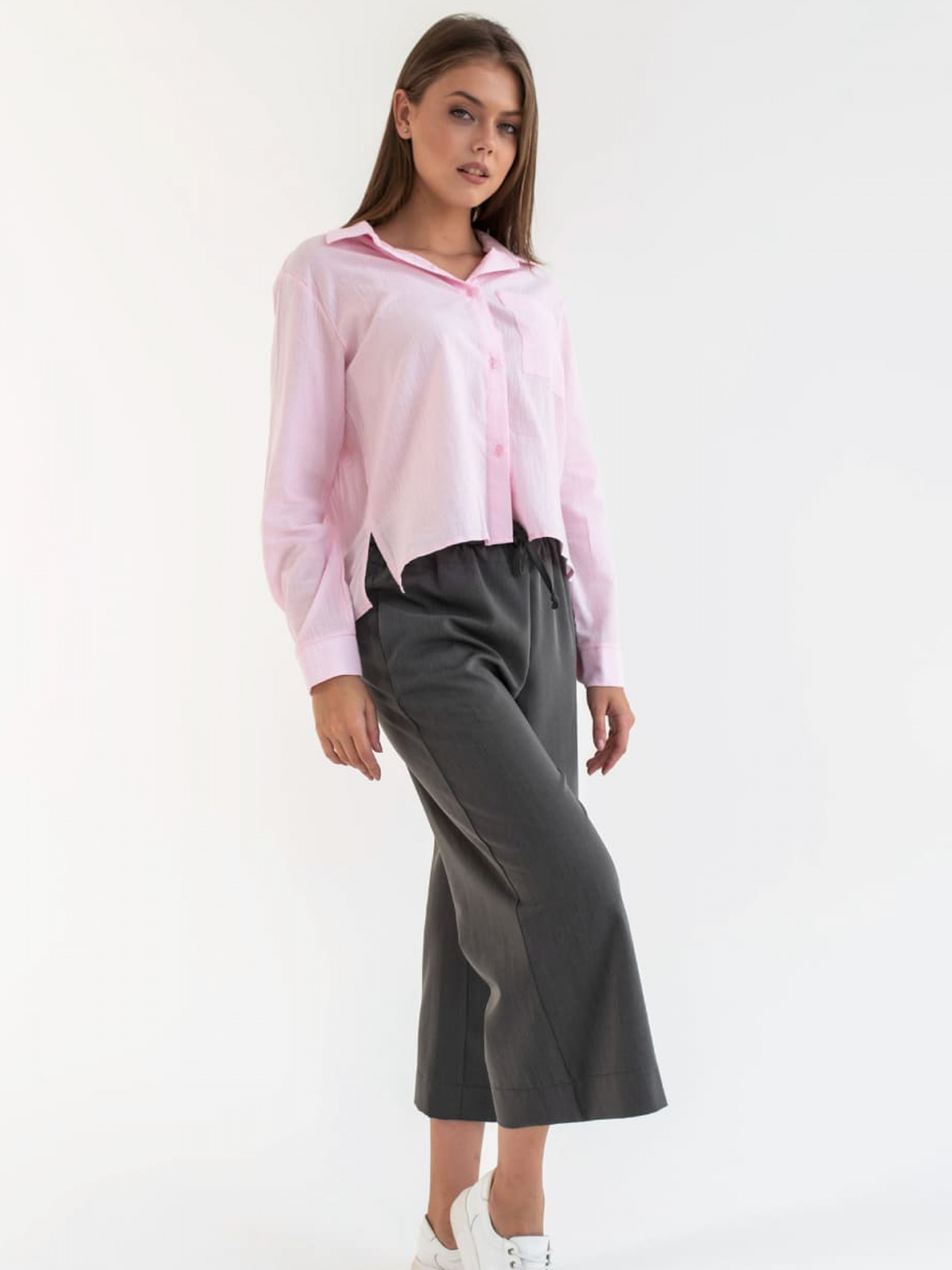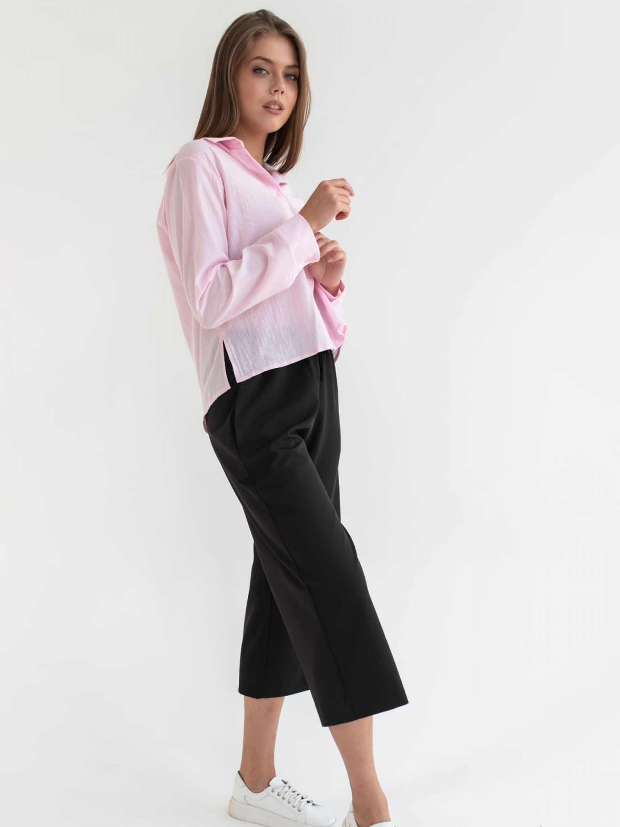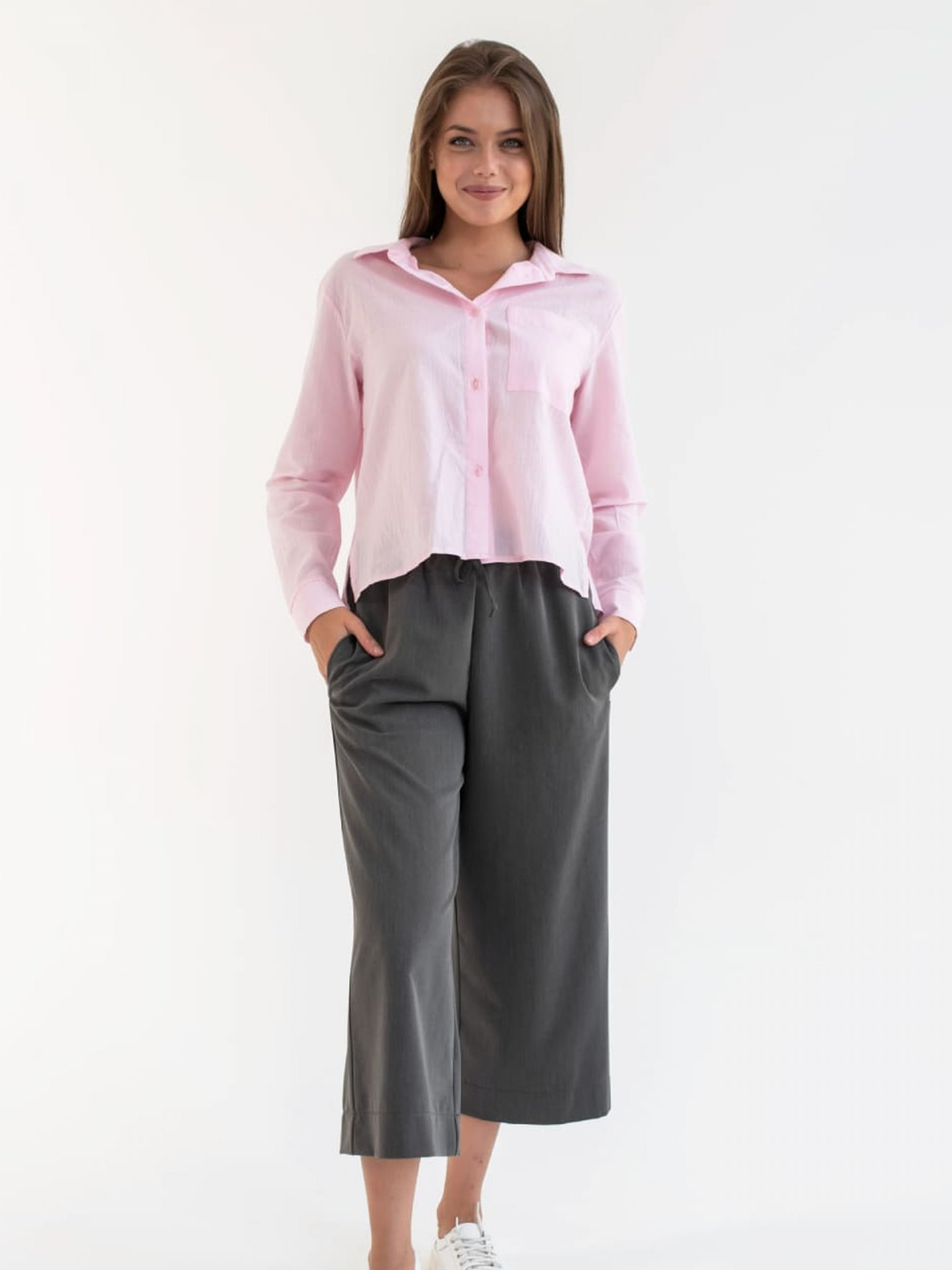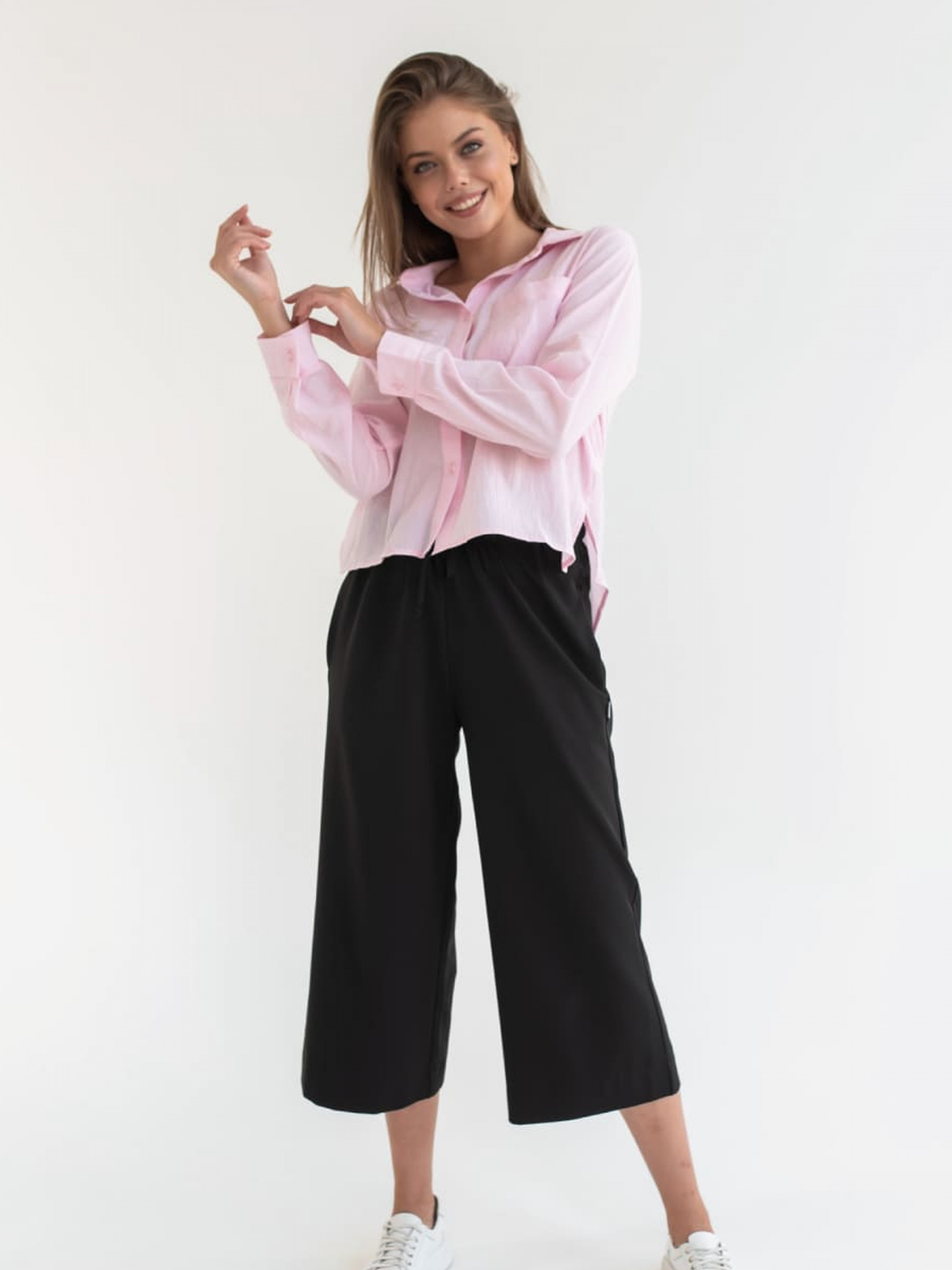 Жіночі штани виготовлені з м'якої еластичної тканини у фірмовому стилі.Комфортні в носінні, не сковують рухи.Приємний на дотик.; Штани-кюлоти; Oversize. Склад: Поліестер 100%