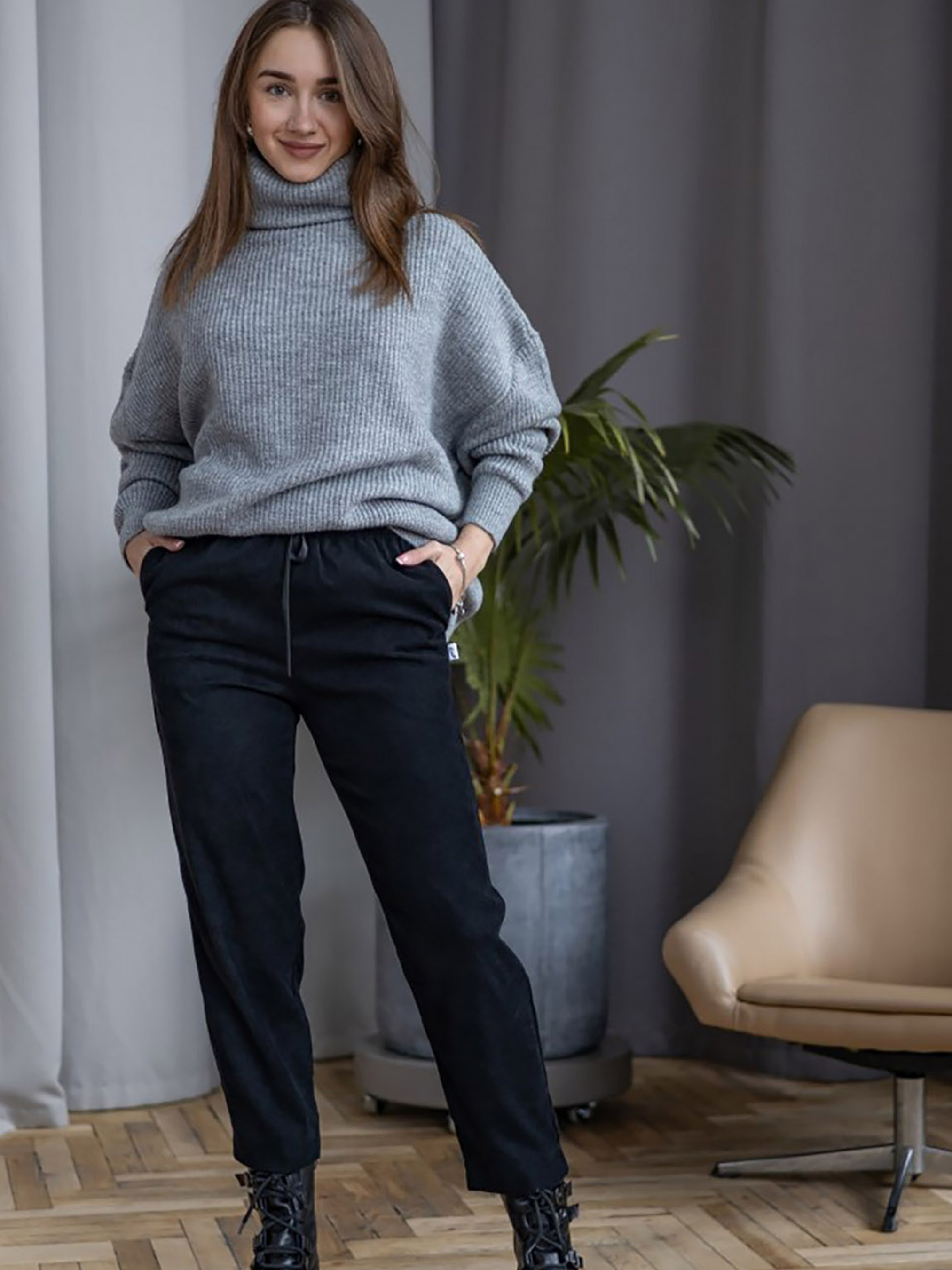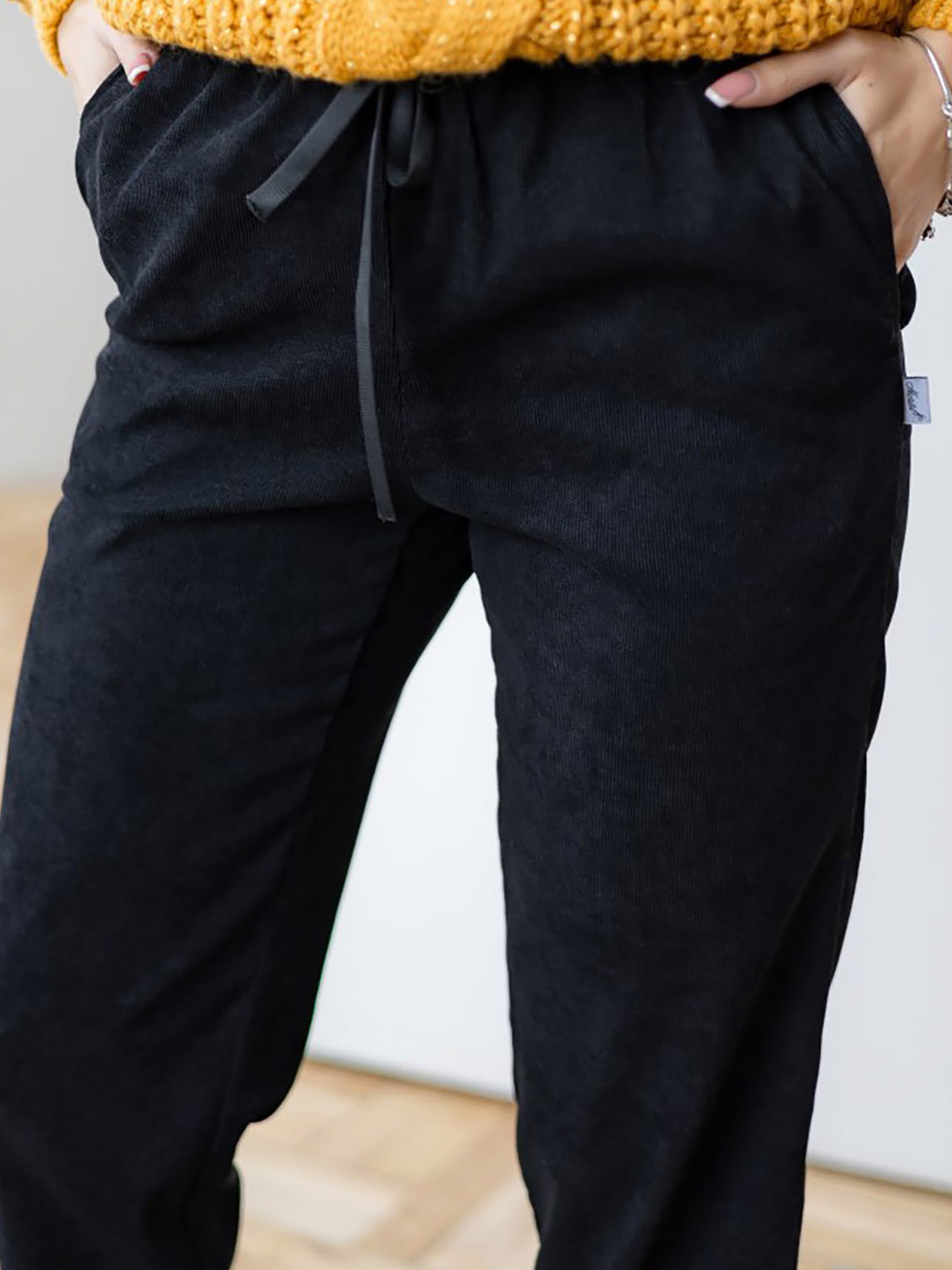 Стильні штани ;Вельвет; - ідеально доповнять ваші осінні образи. Крій звужений до низу Зверху на резинці із кіперної стрічки У бічних швах є кишені. Склад: Поліестер 30%, бавовна 21%, віскоза 49%