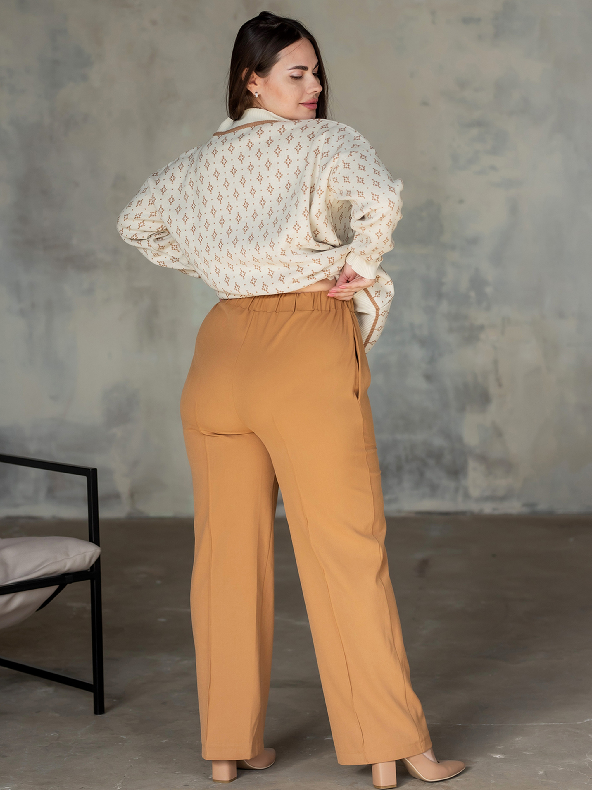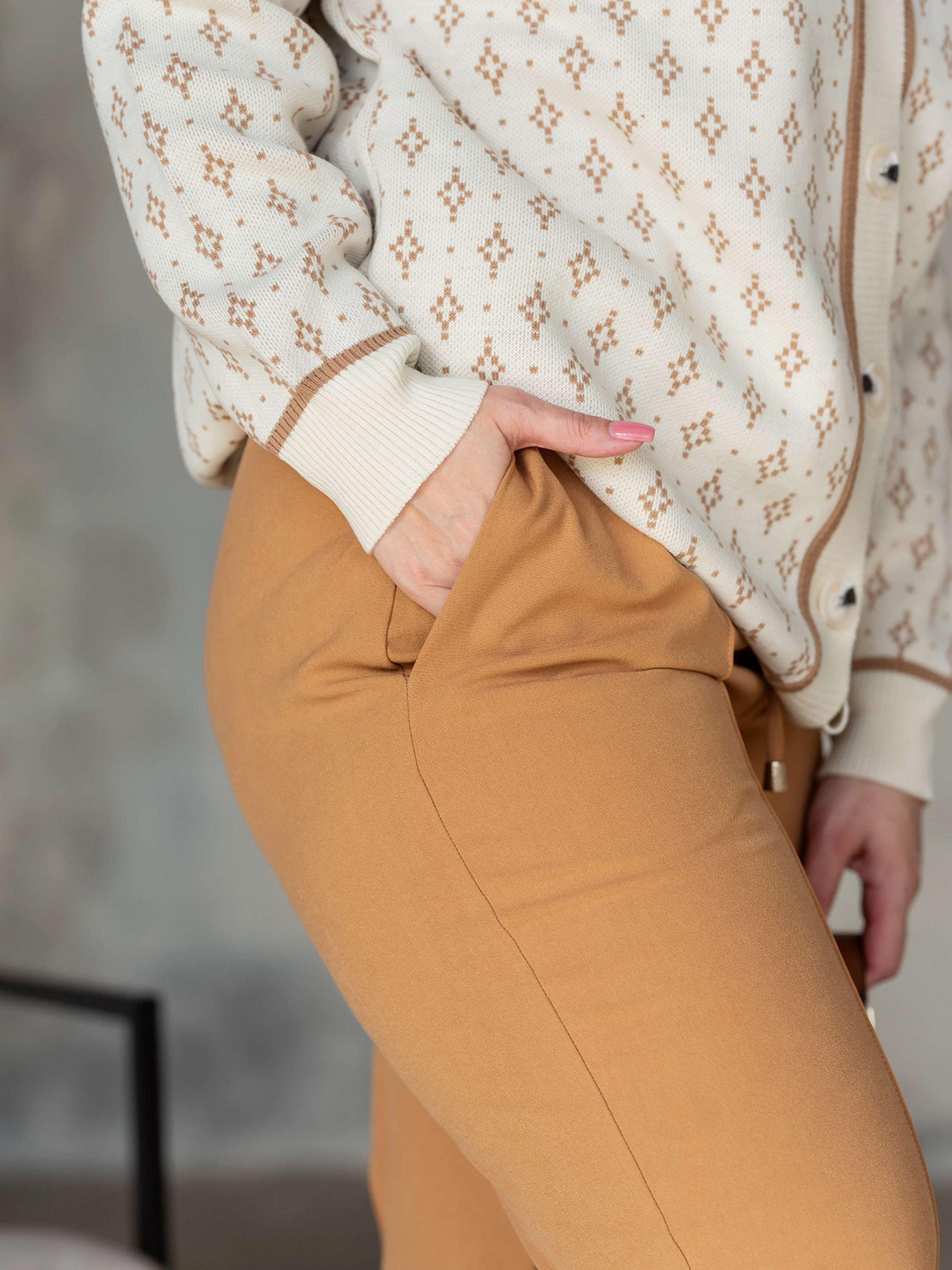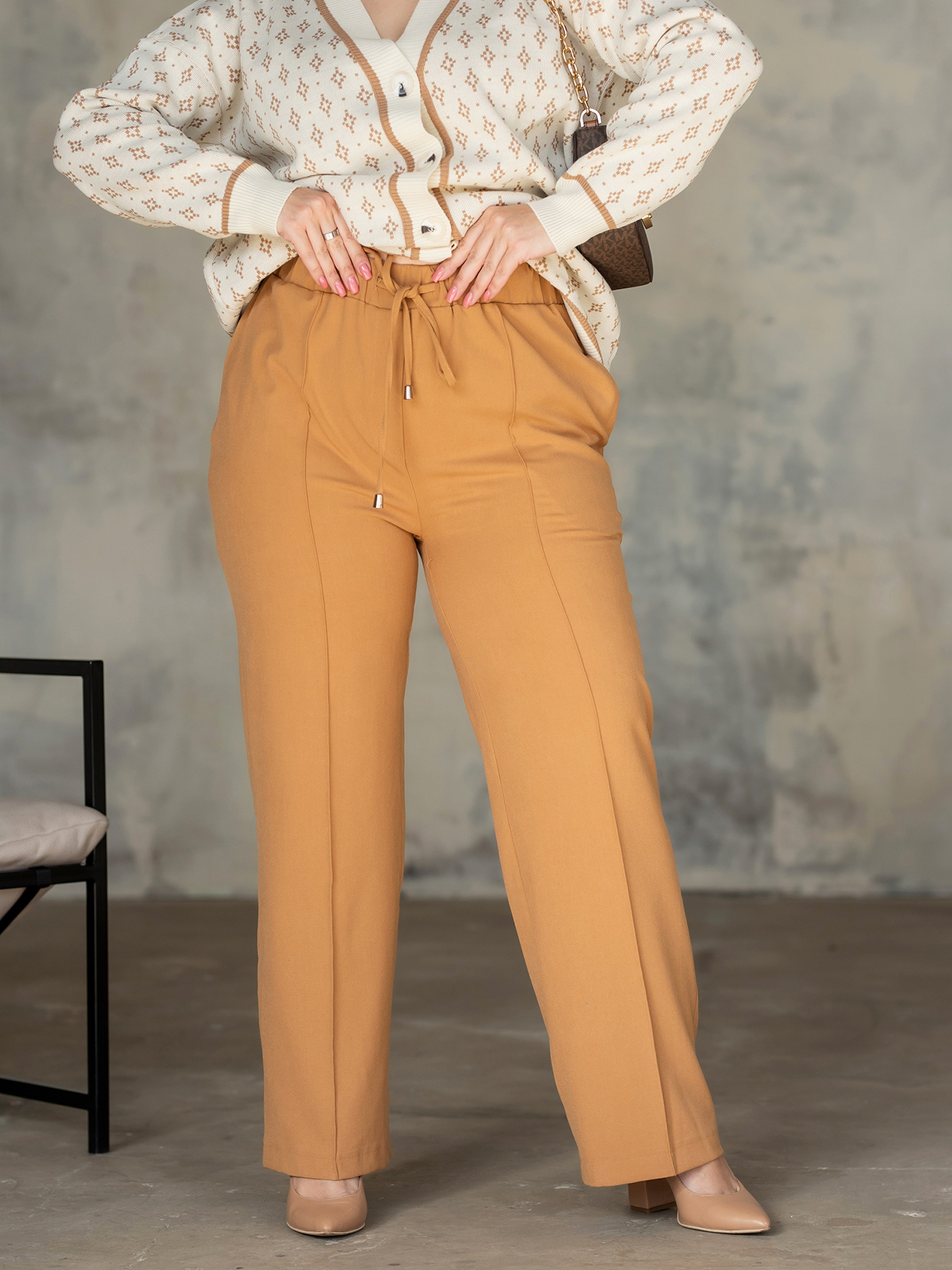 Весняна новинка вже у продажуКласичні штани зі стрілками спереду.Модель з високою посадкою, пояс на резинці, є куліскаЗ боковими кишенями та рівним обробленим низом.Лімітована колекція. Склад: Еластан 5%, віскоза 31%, поліестер 64%