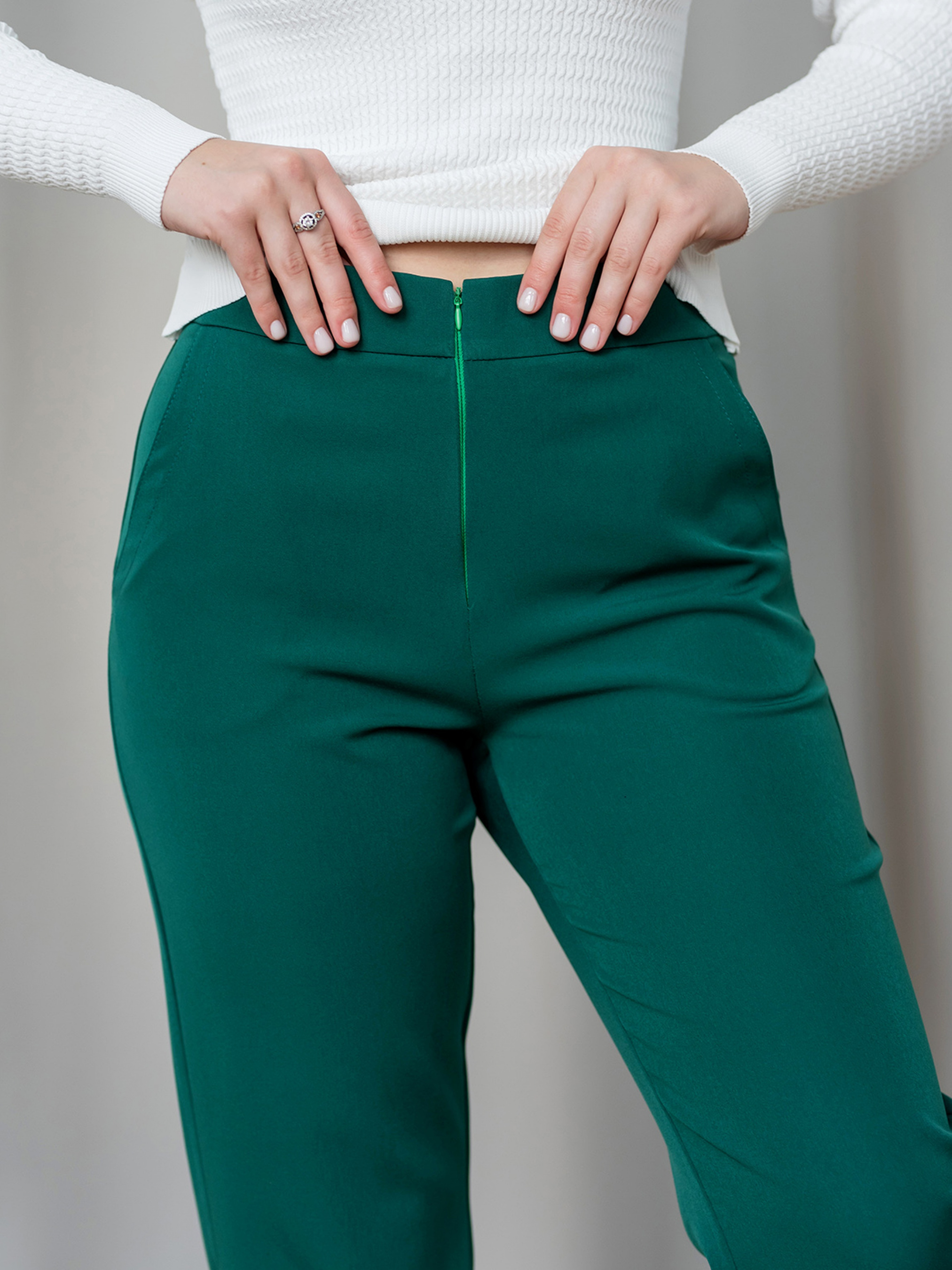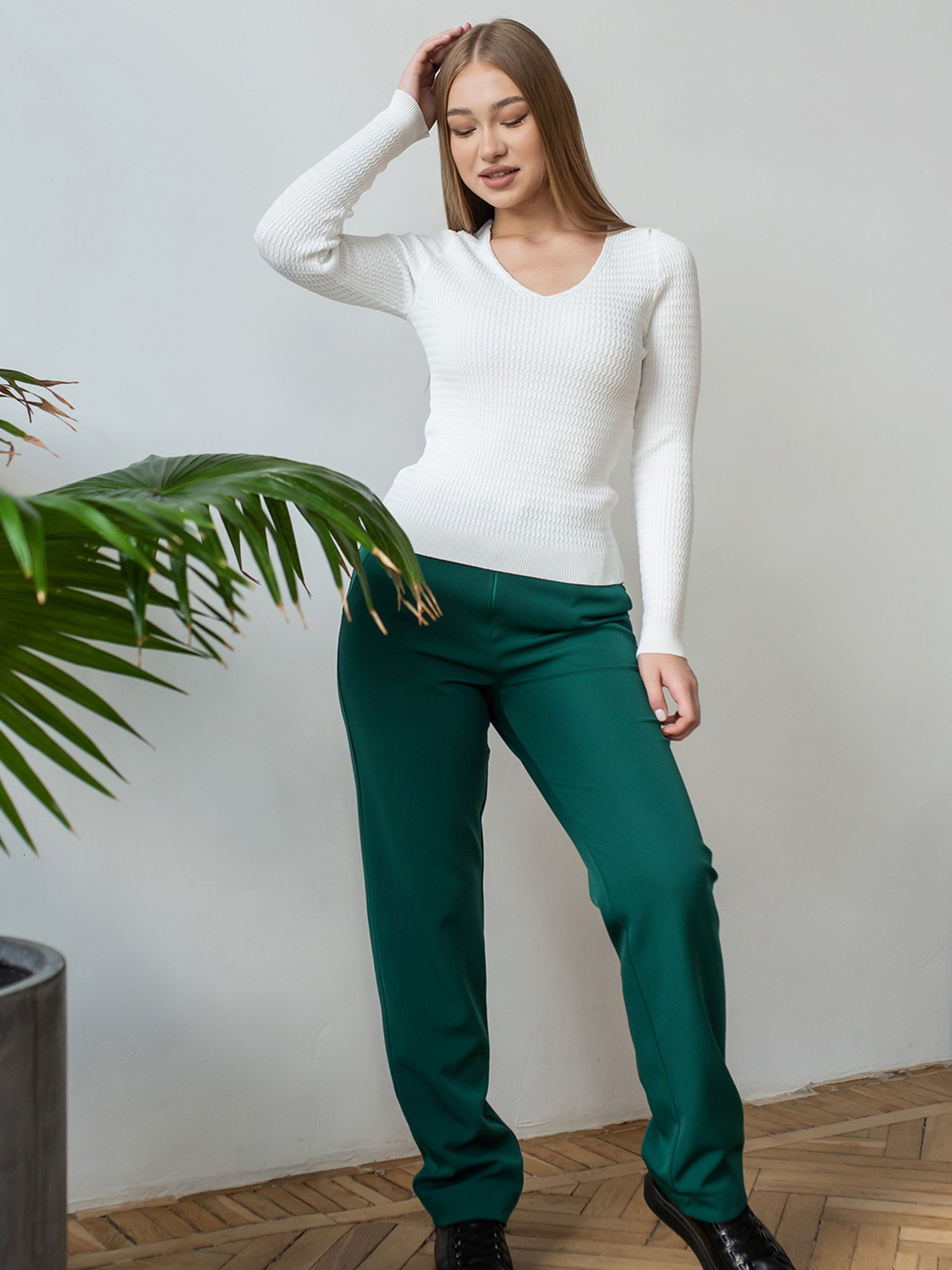 Класичні жіночі штани, комфортні в носці.Підходять як для класичного образу, так і для повсякденного.; Посадка штанів висока; Захипи по талії; Звужені донизу; Довжина до щиколотки; У бічних швах кишені. Склад: Поліестер 80%, еластан 3%, віскоза 17%