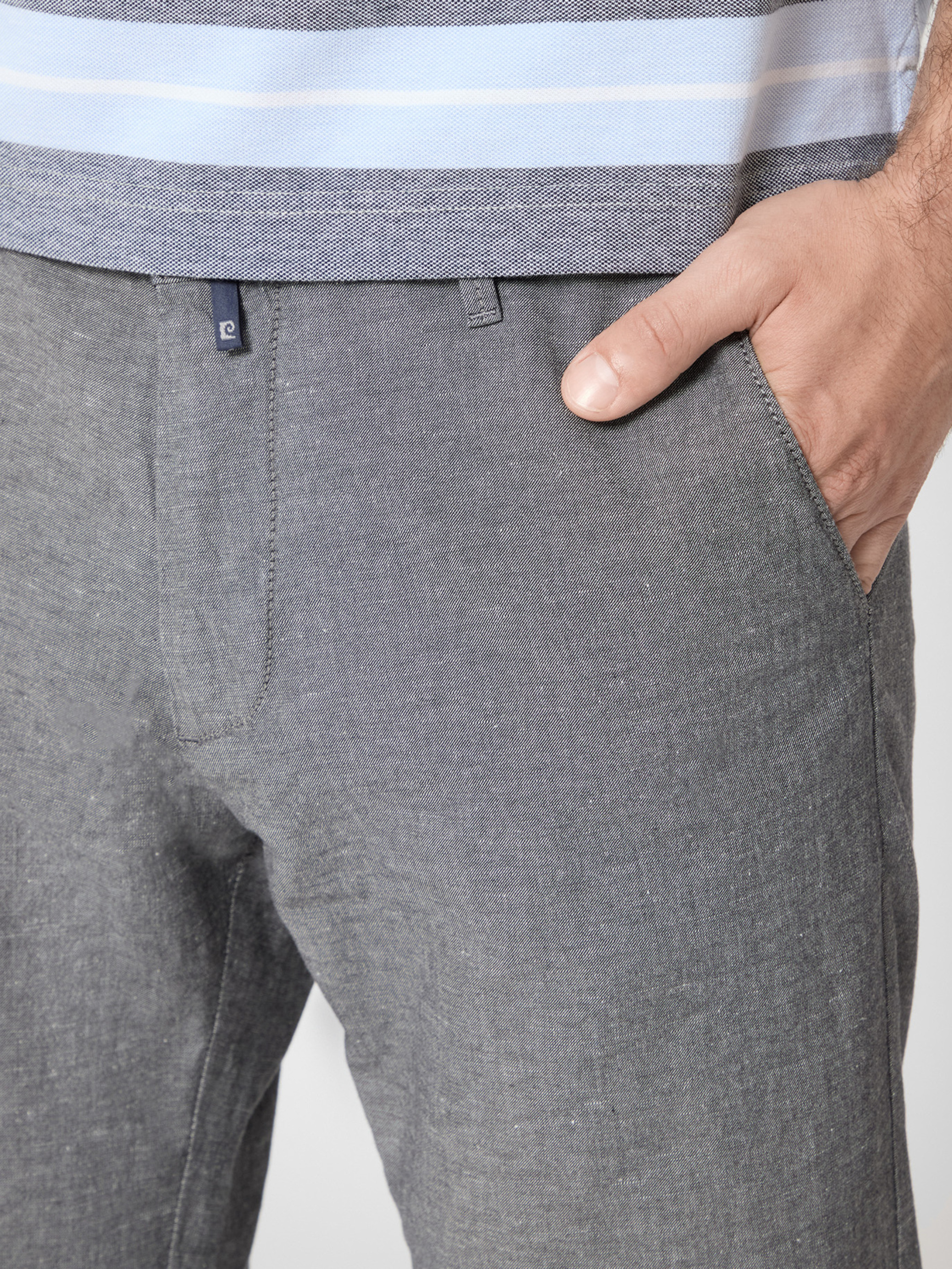 Модель із лінії Colmar від Pierre Cardin — стильне поєднання натуральної тканини та сучасного крою, ідеальні як для щоденного носіння, так і для smart-casual образів. Характеристики: Крій: Modern Fit — класичний силует із легкою посадкою, гармонійно поєднується з більшістю фігур . Склад: 70 % бавовна / 28 % льон / 2 % еластан — натуральність, дихаючість та комфорт із додатковою еластичністю . Матеріал: легкий льняно-бавовняний твіл з еластаном — приємний на дотик, дозволяє шкірі дихати, що особливо важливо в теплу пору року. Дизайн: Пояс зі шлевками — пасує ремінь Застібка: блискавка + ґудзик Чотири кишені: дві бічні, дві задні — елегантна функціональність . Колір: насичений синій — класичний, завжди доречний. Переваги: Природна тканина: льон забезпечує прохолоду, бавовна — м’якість, еластан — комфорт. Комфортний крій: Modern Fit поєднує свободу руху та стиль. Універсальність: пасують до сорочок, поло, джинсів, чіносів. Функціональність: достатня кількість кишень для щоденних потреб.