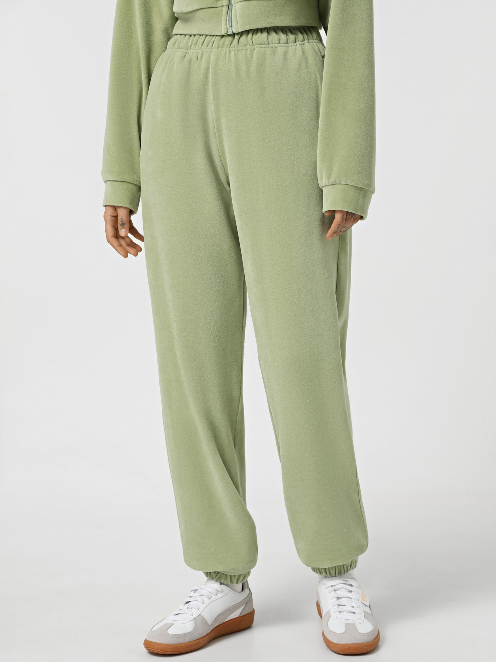 Штани велюрові ТМ Promin - тільки високоякісні натуральні тканини. Склад: Бавовна - 80%, Поліестер - 20% Колір: Блідо-салатовий