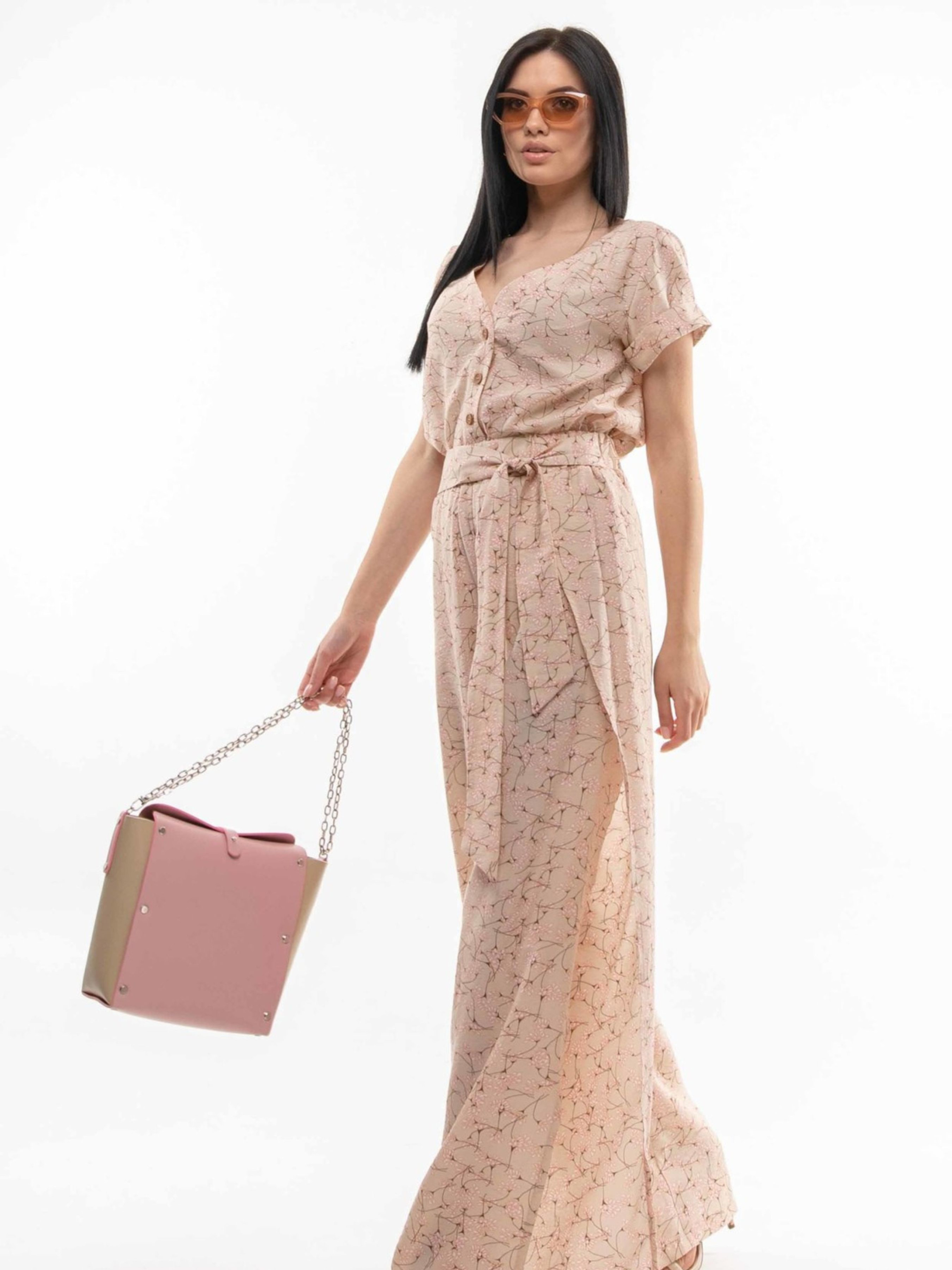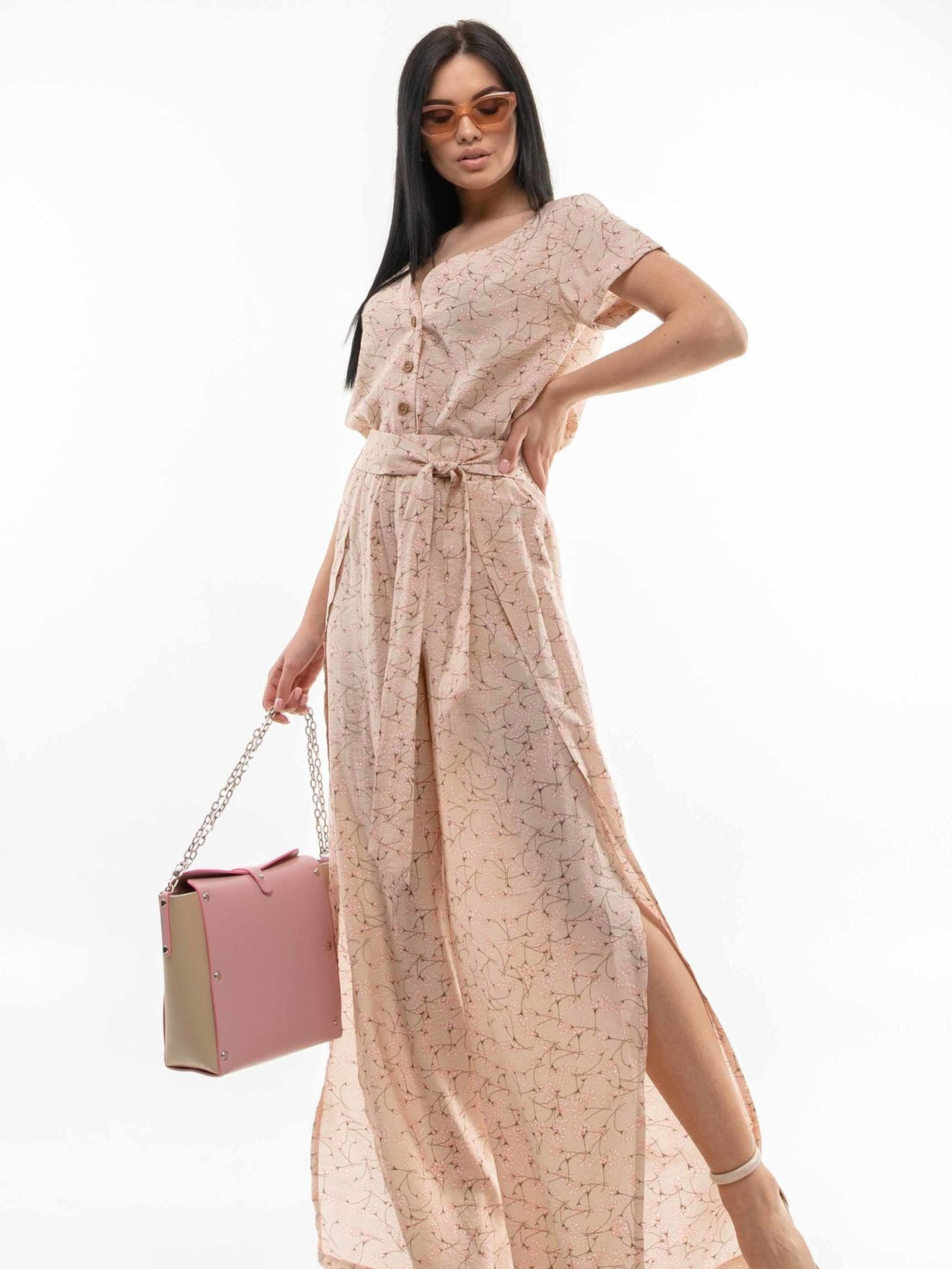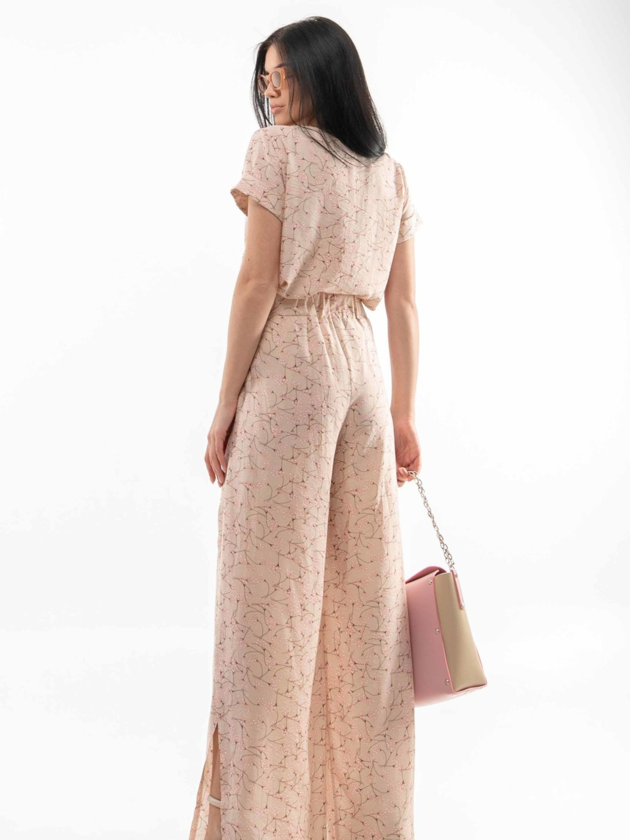 Оригінальні вільні брюки з неповторною харизмою обов'язково привернуть увагу. Їхня висока талія оформлена широкою еластичною гумкою, а в бічні шви вшитий широкий пояс, що додає акценту. Неймовірно оригінальний крій – задні половинки штанів плавно переходять на перед, утворюючи ефект запаху та високий розріз, – у поєднанні з легкою тканиною, що дихає, створює справжній ефект "ВАУ". Залежно від обраного кольору, брюки виготовлені з різних приємних до тіла матеріалів: Характеристики (залежно від кольору): Матеріал (беж, капучино): Аер флоу муслін (34% віскоза, 56% поліестер, 10% бавовна) – легка, струмлива, дихаюча тканина. Матеріал (т.синій, червоний): Софт (34% віскоза, 56% поліестер, 10% бавовна) – м'яка, приємна, дихаюча тканина. Крій: Вільний Посадка: Висока талія Пояс: Широка гумка на талії, широкий вшитий пояс в бічних швах Деталі: Задні половинки переходять на перед, утворюючи запах та високий розріз Стиль: Оригінальний, трендовий, повсякденний, стильний Властивості: Дихаюча тканина, комфортна посадка, унікальний крій Сезон: Весна, літо