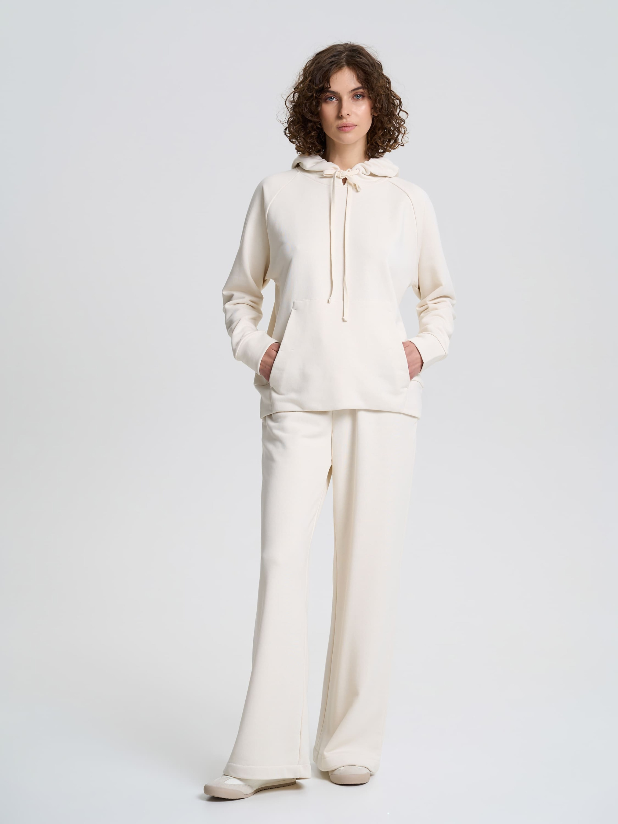 Жіночі широкі штани – це ідеальне поєднання комфорту та стильного силуету. Вільний крій забезпечує легкість рухів, а м’яка струмлива тканина красиво лягає по фігурі. Пояс на резинці зі шнурком дозволяє легко регулювати посадку, забезпечуючи максимальну зручність. У бічних швах розміщені функціональні кишені, які додають практичності. Завдяки своєму лаконічному дизайну штани легко комбінуються з базовими футболками, світшотами та худі, створюючи стильні образи для будь-яких ситуацій. Матеріал Тканина з трьома складовими, що складається з петельок. На вивороті тканини приємний гриф у вигляді петель. Технологія виробництва забезпечує полотну щільність, міцність і довговічність. Практичний, натуральний матеріал, стійкий до деформації. Добре пропускає повітря і чудово вбирає вологу, підтримуючи комфортну температуру тіла. Рекомендації з догляду Вироби з тринитки рекомендується прати або вручну, або в пральній машині в делікатному режимі при температурі не вище 30 градусів.
