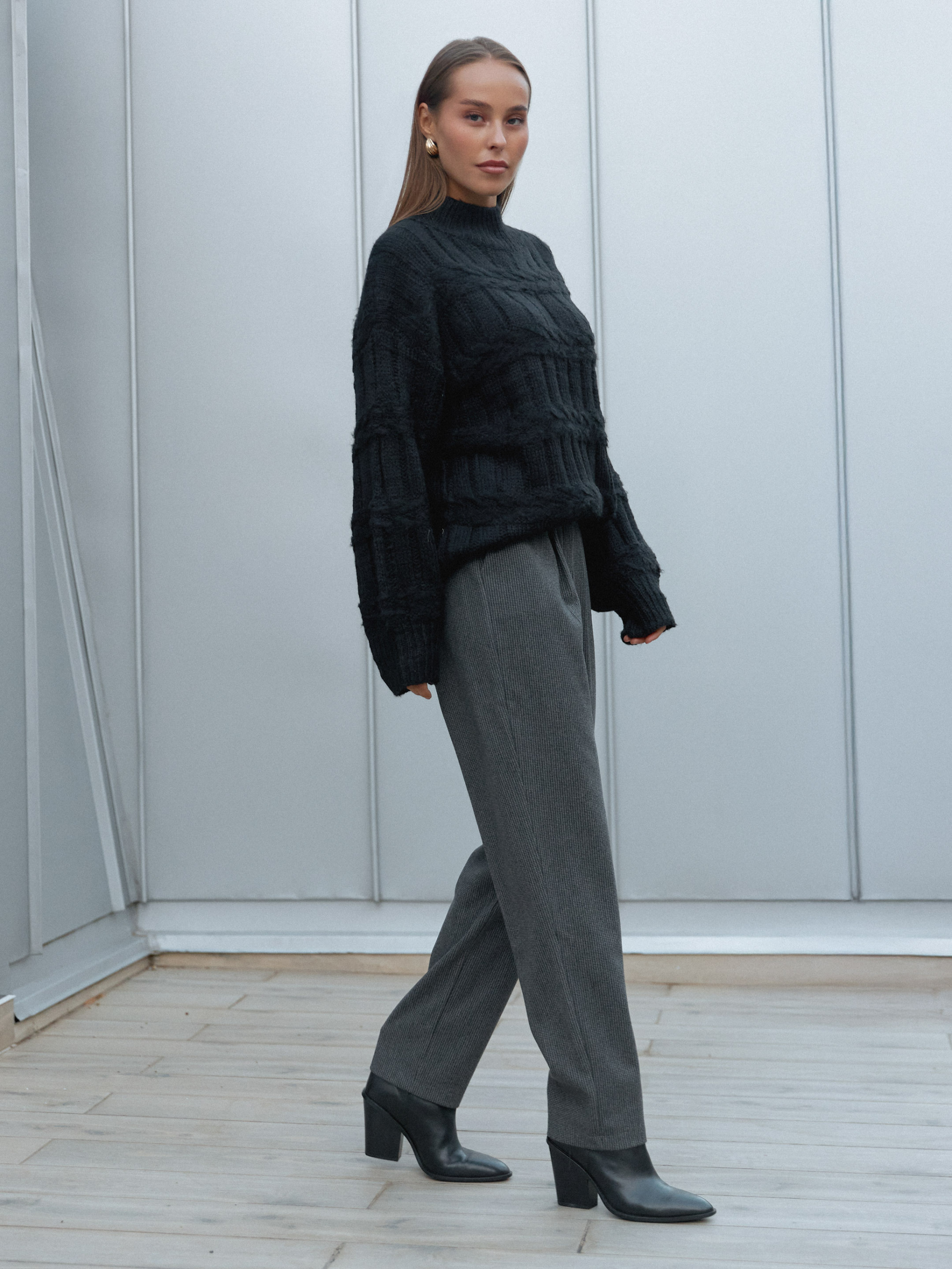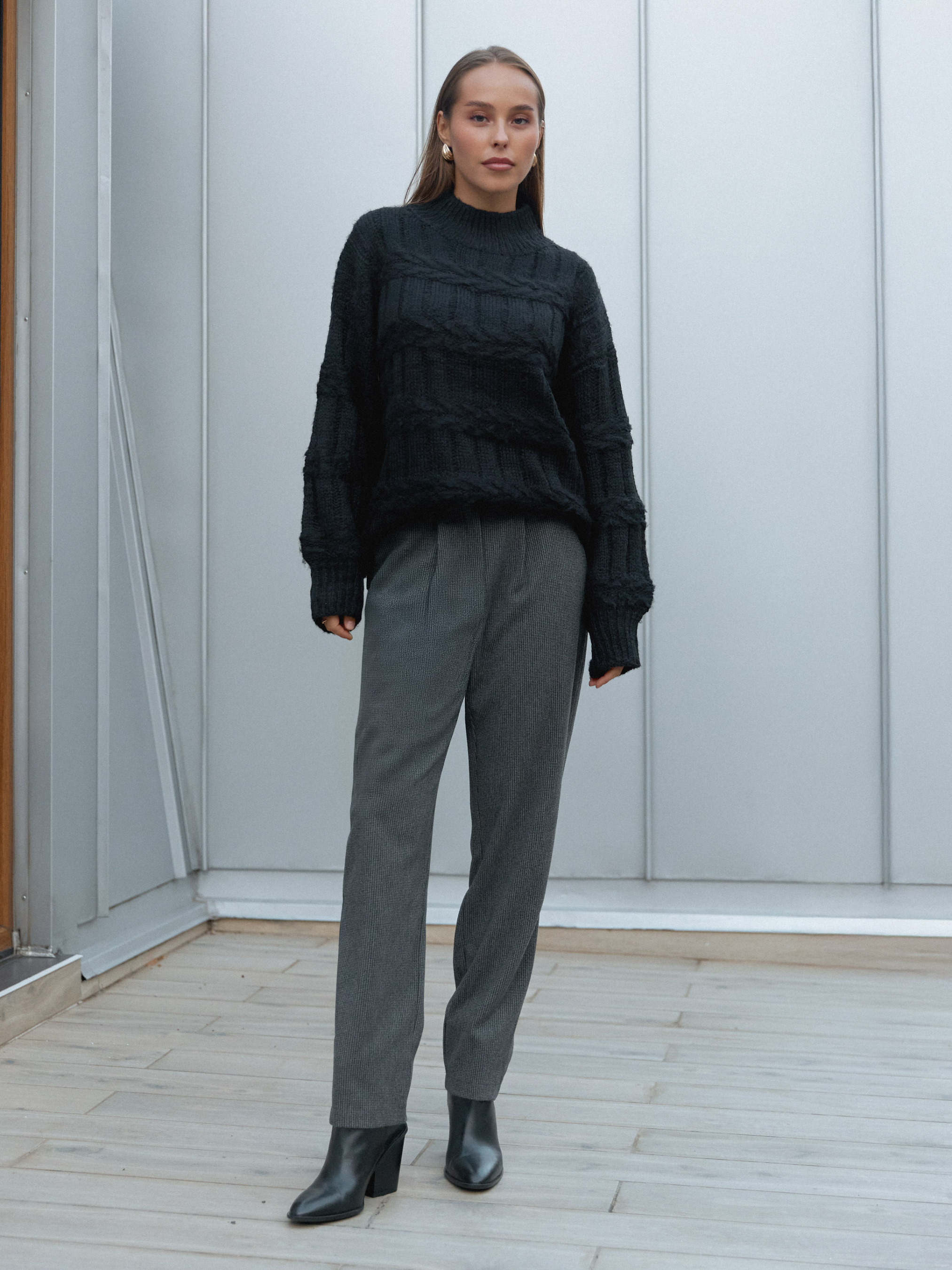 Стильні штани 2336.6519 від Seventeen — це поєднання елегантності, зручності та бездоганного крою. Вони створені для тих, хто цінує лаконічний дизайн і комфорт у кожному русі. Виконані з турецького кашеміру — м’якої, приємної до тіла тканини, що чудово тримає форму, не мнеться та зберігає тепло. Матеріал має благородну текстуру й додає образу стриманої розкоші. Фасон прямих, злегка завужених штанів гармонійно підкреслює силует, а склади по переду додають акуратності та витонченості лініям. Завдяки резинці на поясі модель комфортно сідає по фігурі, забезпечуючи свободу рухів упродовж дня. Блискавка та ґудзики роблять посадку зручною й практичною. Фурнітура: блискавка, ґудзики Декоративні елементи: склади по переду Конструктивні елементи: резинка на поясі Догляд за одягом: ручне прання до 30° Довжина брюк: S-M — 99 см, L-XL — 100 см, 2XL-3XL — 101 см Розмірна сітка: S-M: обхват талії 68–72 см, стегон 92–96 см L-XL: обхват талії 76–81 см, стегон 100–105 см 2XL-3XL: обхват талії 86–91 см, стегон 110–115 см Обирайте свій розмір, керуючись вимірами: штани мають комфортну посадку та елегантний крій, який пасує до светрів, блуз і жакетів, створюючи гармонійний образ для будь-якої нагоди.