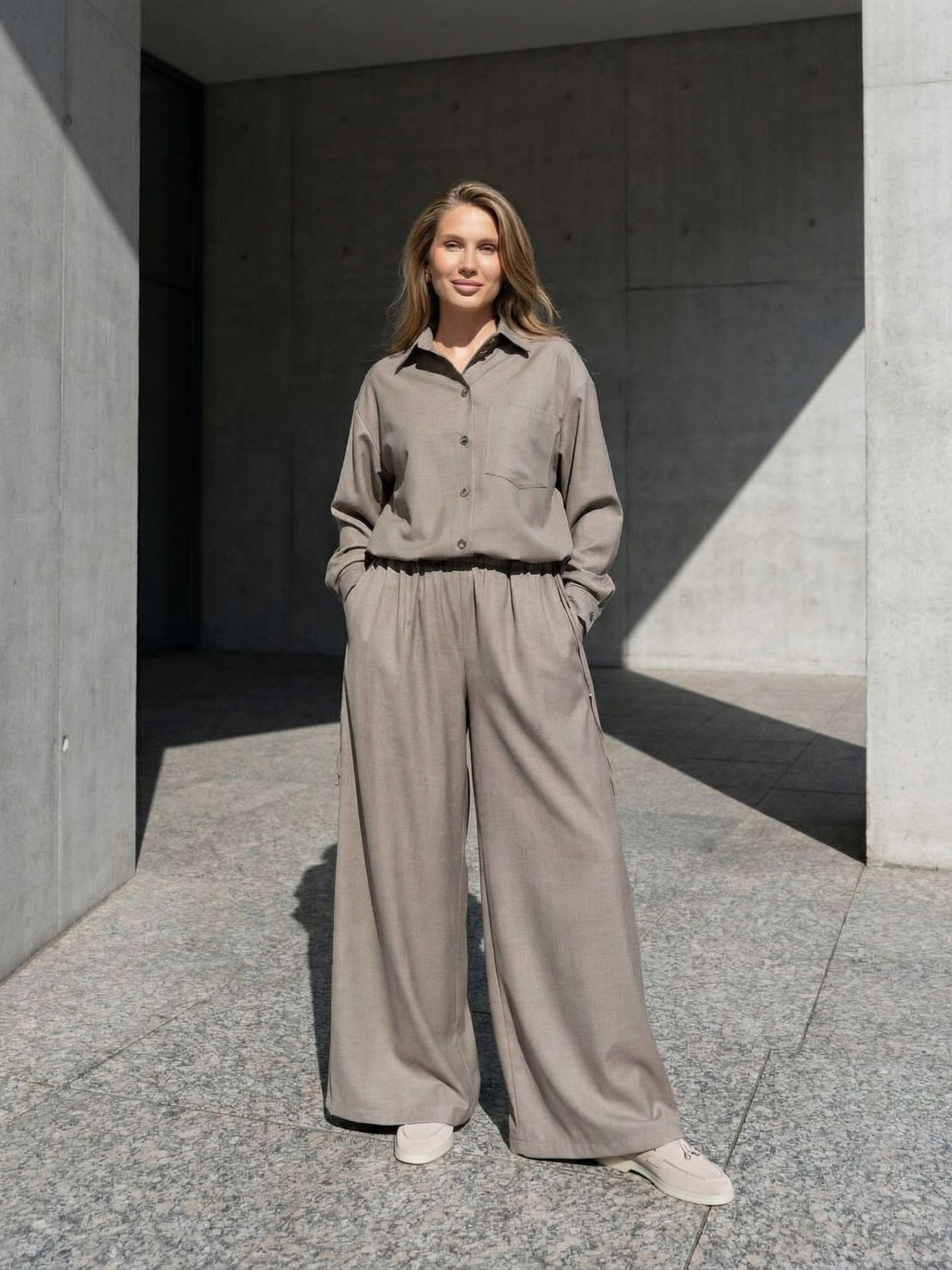 Жіночі штани аладіни (шаровари) з колекції Pre-spring 26 — стильна модель для створення сучасних та сміливих образів. Виконані з італійської костюмної тканини, яка добре тримає форму та виглядає елегантно. Вільний фасон і широка штанина забезпечують комфорт та ефектний силует. Модель універсального розміру — об’єм регулюється затяжками по поясу та внизу, що дозволяє адаптувати посадку під різні параметри та стилі. Шаровари ідеально підходять для демісезонного періоду, легко комбінуються з сорочками, бомберами, жакетами або базовими топами. Створюють акцентний, трендовий образ із нотками східної естетики. Розмір OneSize: Ширина по низу виробу - 80 см; Обхват стегон - 152 см; Обхват талії - 144 см; Довжина брюк - 107 см. Характеристики Колекція Pre-spring 26 Матеріал італійська косюмка Колір бежевий Фурнітура затяжки Фасон вільний Сезон демісезон Декоративні елементи широка штанина Конструктивні елементи шаровари Комплектація штани Догляд за одягом ручне прання до 30°