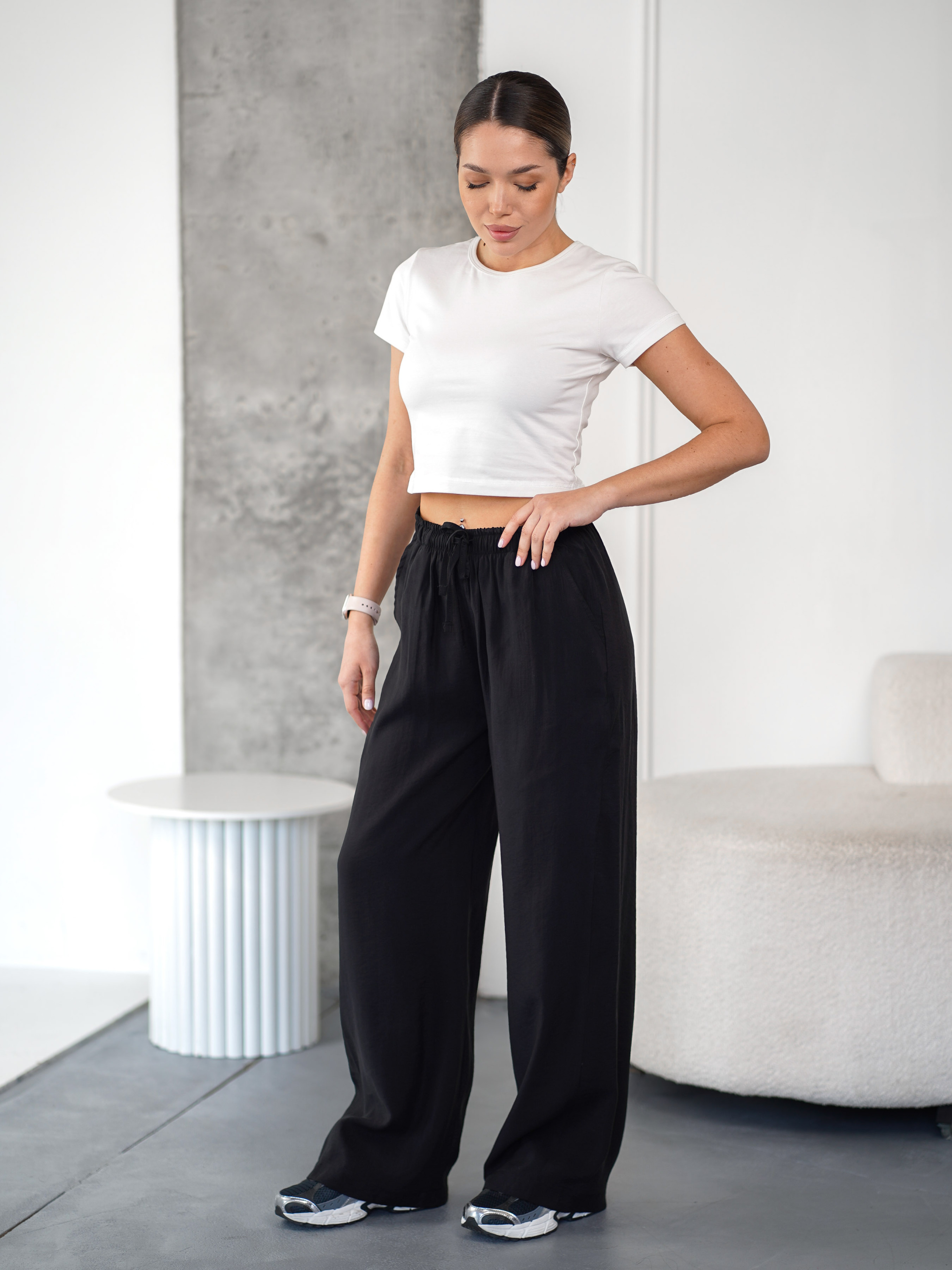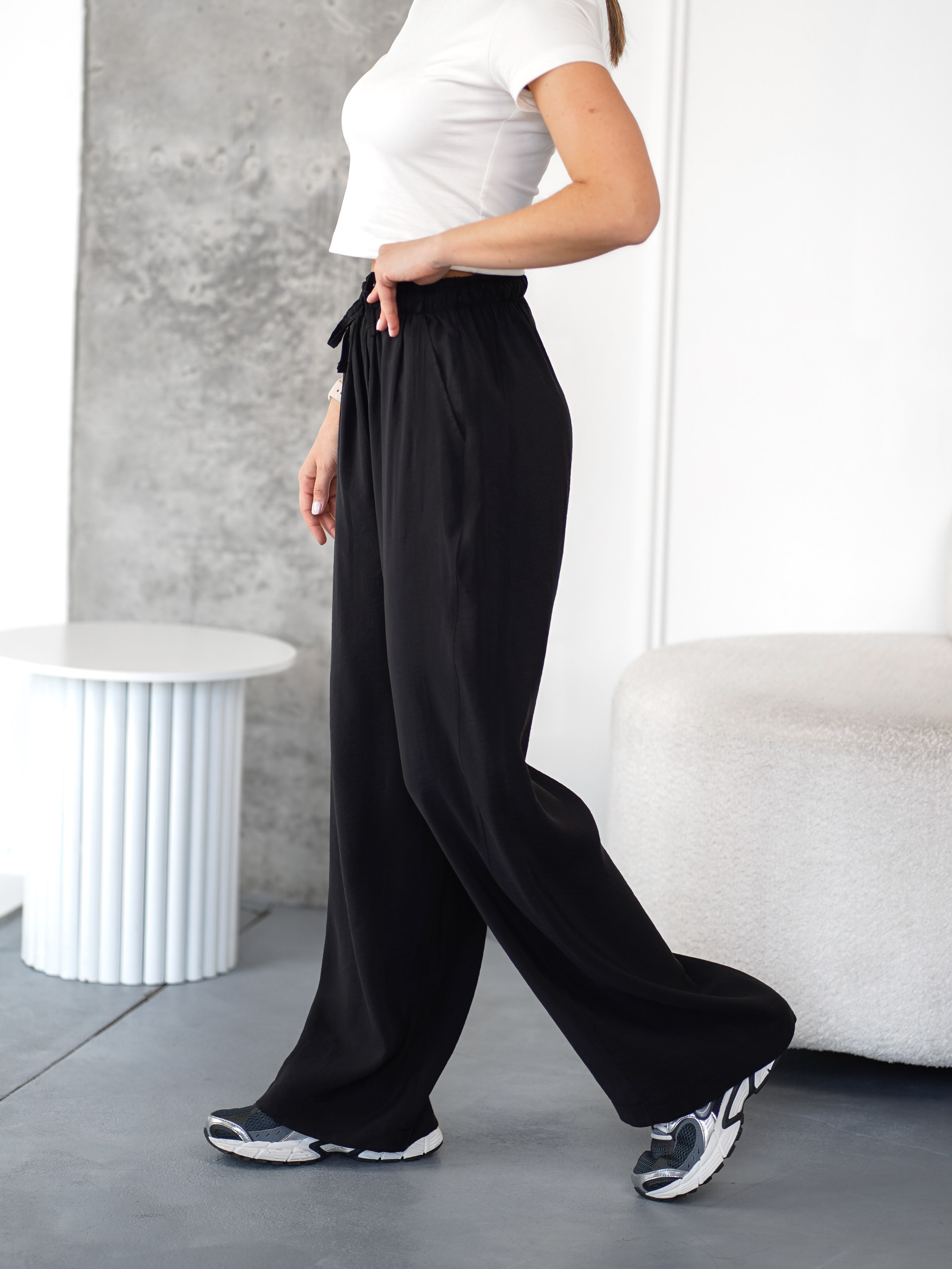 Жіночі прямі штани у вільному стилі з лаконічним дизайном та прямим подовженим кроєм робить штани універсальними, створюючи розслаблений та стильний силует.
