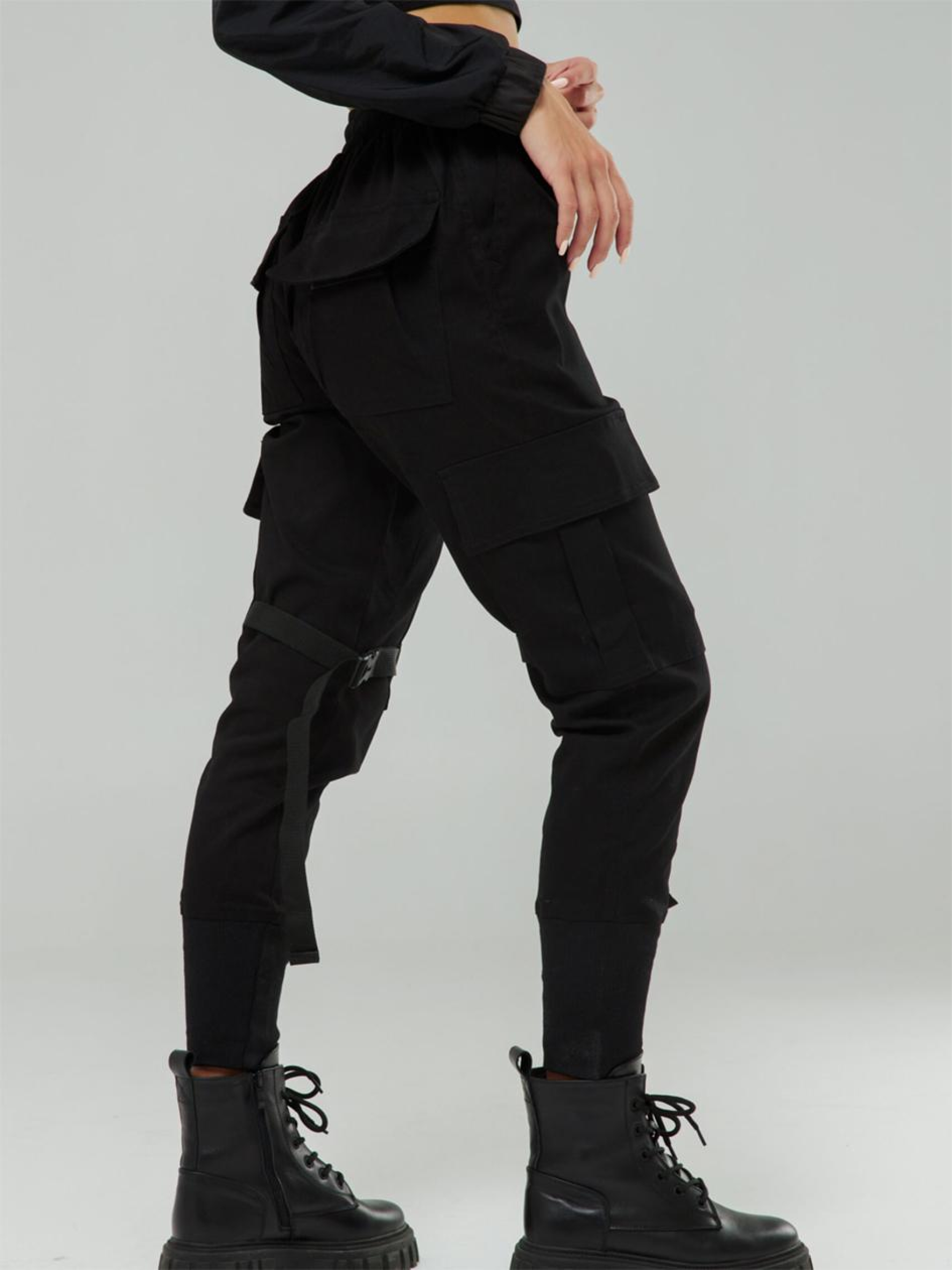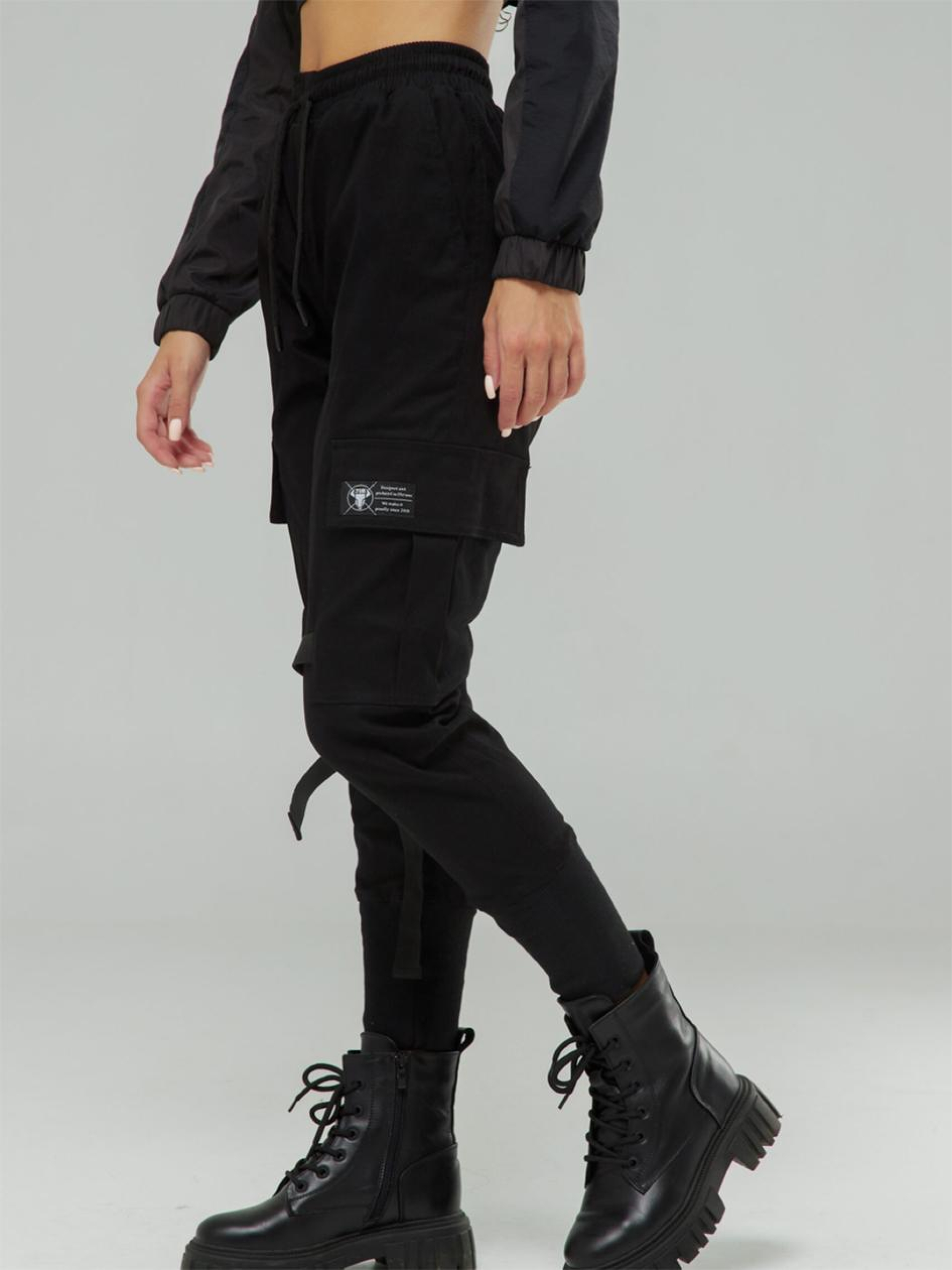 Склад тканини: 95% котон, 5% поліестер. Особливості матеріалів та фурнітури: Котонова тканина з додаванням поліестеру — щільна, дихаюча, комфортна в носінні. Забезпечує зносостійкість і зберігає форму після прання. Поверхня гладка, без еластичності, підходить для щоденного використання. Фурнітура — блискавки YKK, стійкі до навантажень і багаторазового використання. Ключові особливості моделі: Штани звуженого крою з манжетами — мінімалізм із характером. Пояс на резинці зі шнурком забезпечує надійну посадку без зайвих деталей. Шість функціональних кишень: дві брючні, дві бокові накладні з клапанами на липучках і дві задні — все продумано до дрібниць. Особливість моделі — лямки з фіксаторами в зоні коліна, які додають тактичного вайбу й підкреслюють силует. Ідеально для тих, хто хоче виглядати різко — навіть у повсякденному ритмі. Супутні товари: худі Дитя свободи, футболка Горо, сумка Лок Рекомендації по догляду: Машинне прання при макс. 30 ºC Не можна використовувати відбілювач Прасування при макс. 150 ºC Хімчистка заборонена Можна сушити в сушарці за низької температури