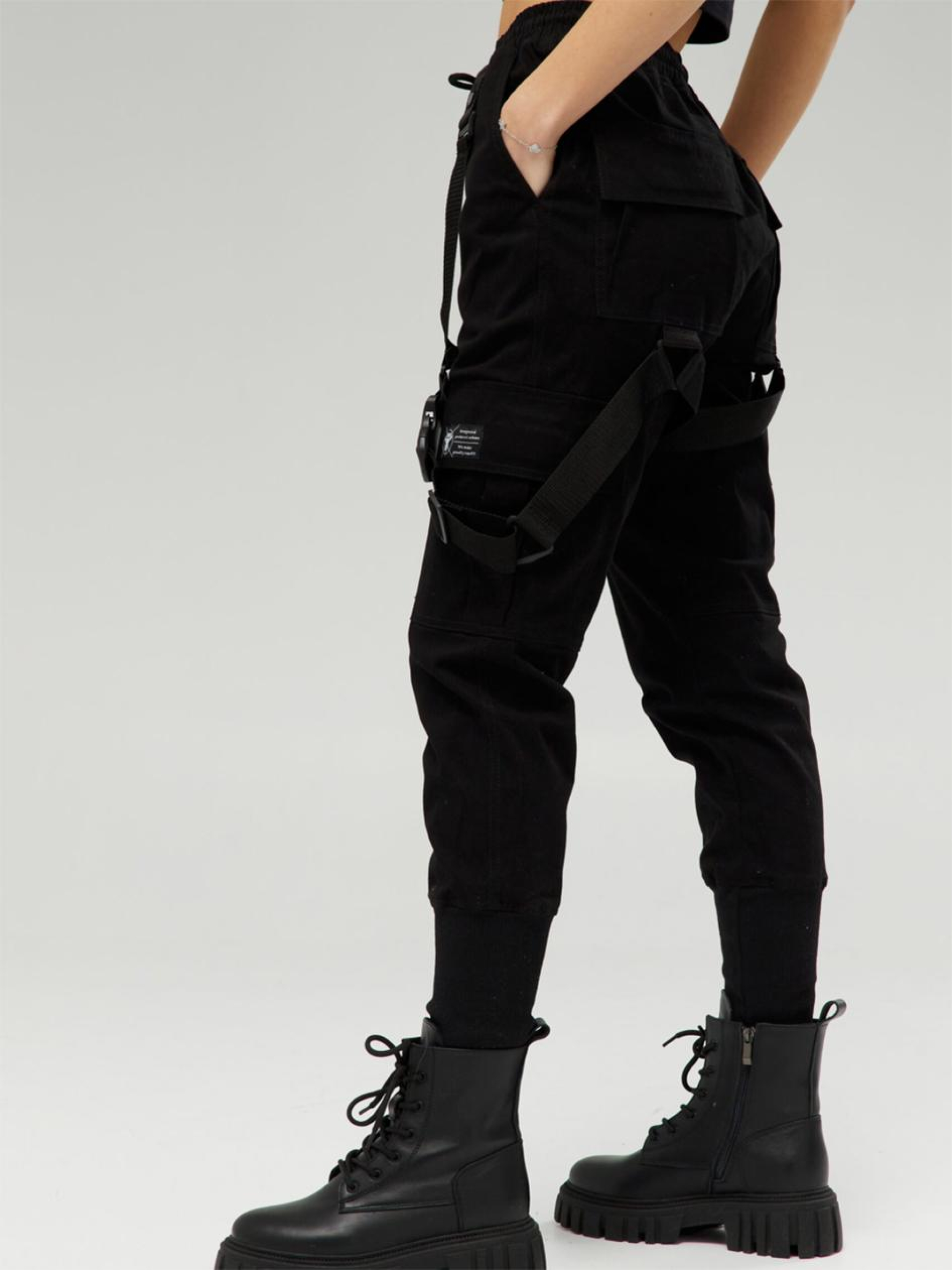 Склад тканини: 95% котон, 5% поліестер. Особливості матеріалів та фурнітури: Котонова тканина з додаванням поліестеру — щільна, дихаюча, комфортна в носінні. Забезпечує зносостійкість і зберігає форму після прання. Поверхня гладка, без еластичності, підходить для щоденного використання. Фурнітура — блискавки YKK, стійкі до навантажень і багаторазового використання. Ключові особливості моделі: Вільні штани, звужені донизу, з високим манжетом — для тих, хто поєднує комфорт і контроль над стилем. Пояс на резинці зі шнурком дозволяє точно відрегулювати посадку. Функціональність представлена шістьма кишенями: дві бокові внутрішні, дві задні накладні з клапанами та дві накладні з боків. Декоративні стропи, пришиті від поясу до задніх кишень, додають агресивного силуету та відсилки до бойової естетики. Ідеальний вибір для рейду в бетонних джунглях. Супутні товари: жилет Джет, худі Мотаро Рекомендації по догляду: Машинне прання при макс. 30 ºC Не можна використовувати відбілювач Прасування при макс. 150 ºC Хімчистка заборонена Можна сушити в сушарці за низької температури