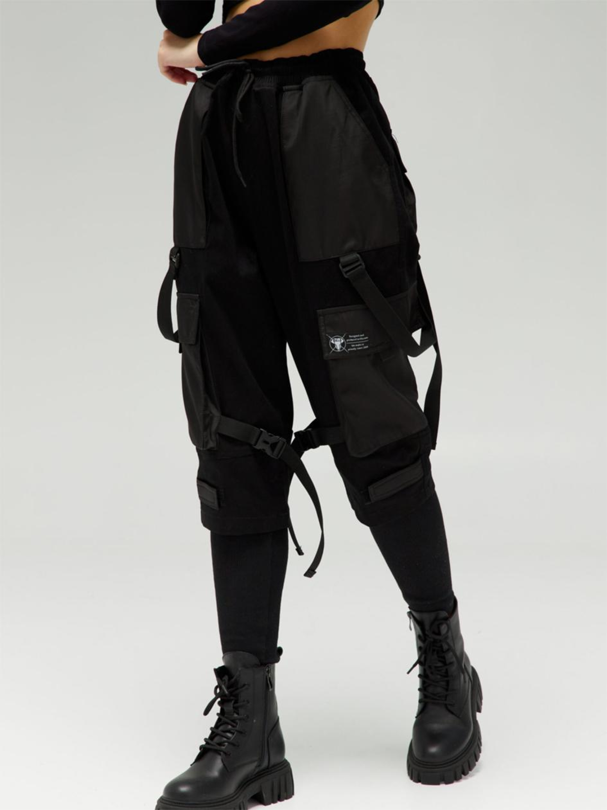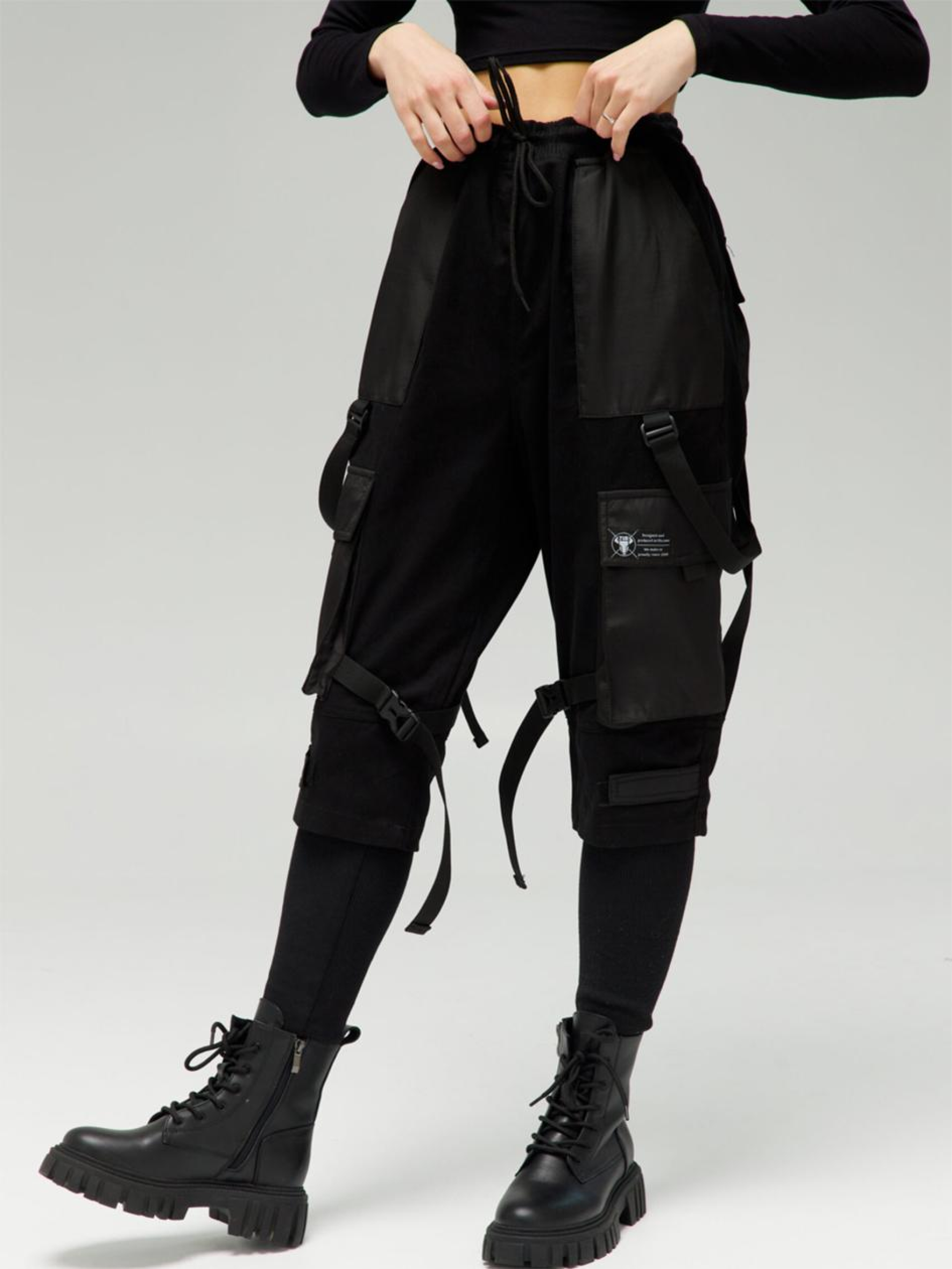 Склад тканини: Основна тканина: 95% котон, 5% поліестер. Вставки: жатка (100% поліестер). Особливості матеріалів та фурнітури: Котонова база щільна, нееластична, з натуральною текстурою та комфортною повітропроникністю. Домішка поліестеру покращує зносостійкість і стабільність після прання. Вставки з жатки мають рельєфну поверхню, візуально структурують виріб і підсилюють ділянки з механічним навантаженням. Фурнітура — блискавки YKK, стійкі до навантажень і багаторазового використання. Ключові особливості моделі: Штани вільного крою з низькою посадкою — для тих, хто не терпить обмежень. Пояс на резинці зі шнурком адаптується до руху, а висока манжета щільно фіксує посадку. Ширина штанин регулюється за допомогою липучки. Функціонал: 6 кишень — дві накладні з клапанами на ліпучках по боках, дві ззаду, дві класичні брючні. Декоративні стропи додають брутального акценту, а всі лямки мають регулювання по довжині. Ці штани — про свободу, технічність і контроль у кожному кроці. Супутні товари: худі Дитя свободи, куртка Шел Рекомендації по догляду: Машинне прання при макс. 30 ºC Не можна використовувати відбілювач Прасування при макс. 150 ºC Хімчистка заборонена Можна сушити в сушарці за низької температури