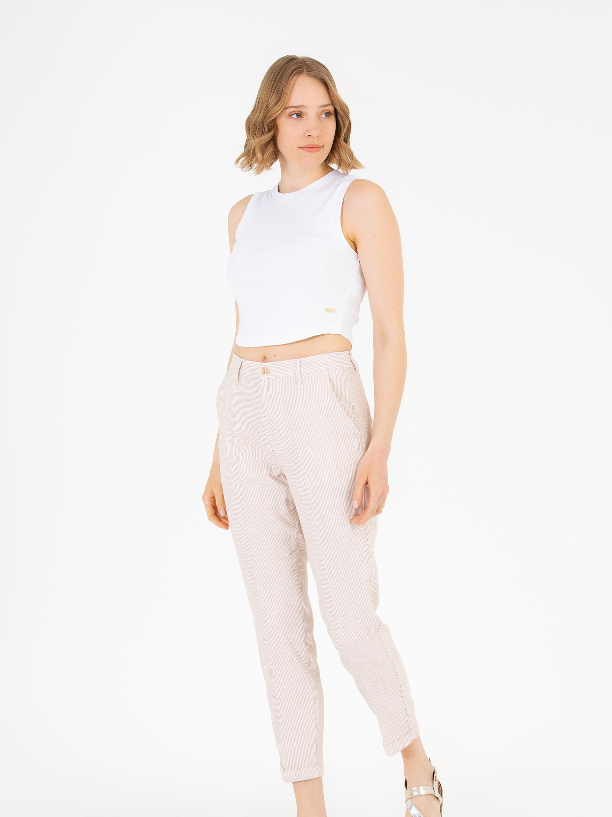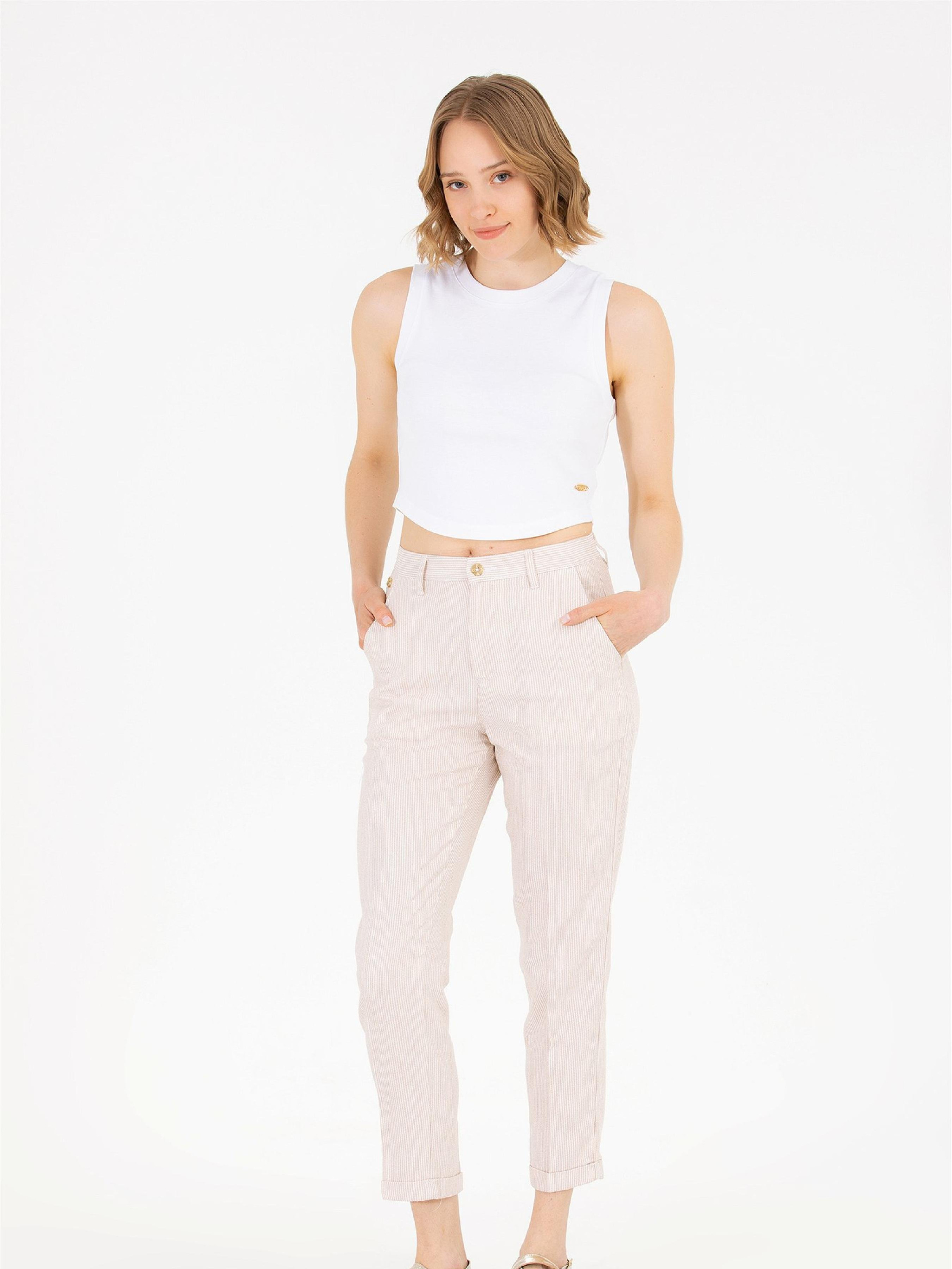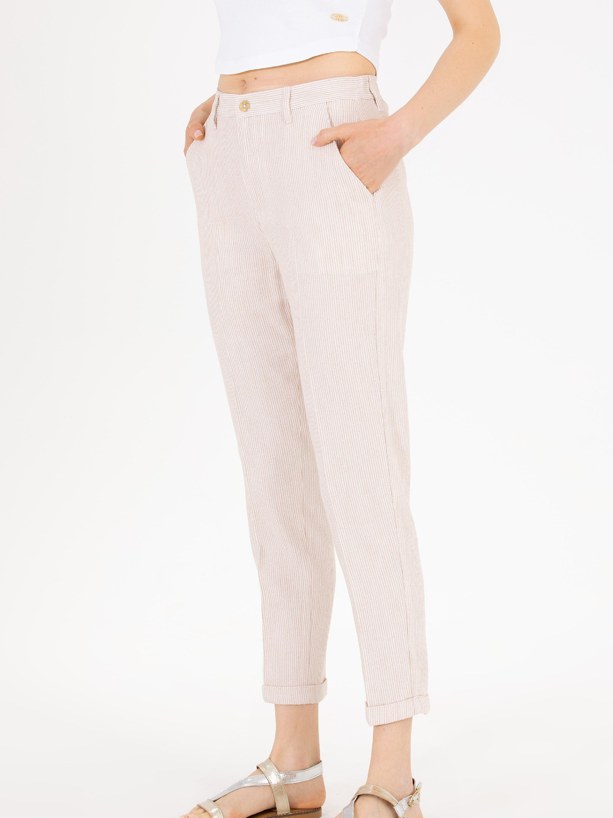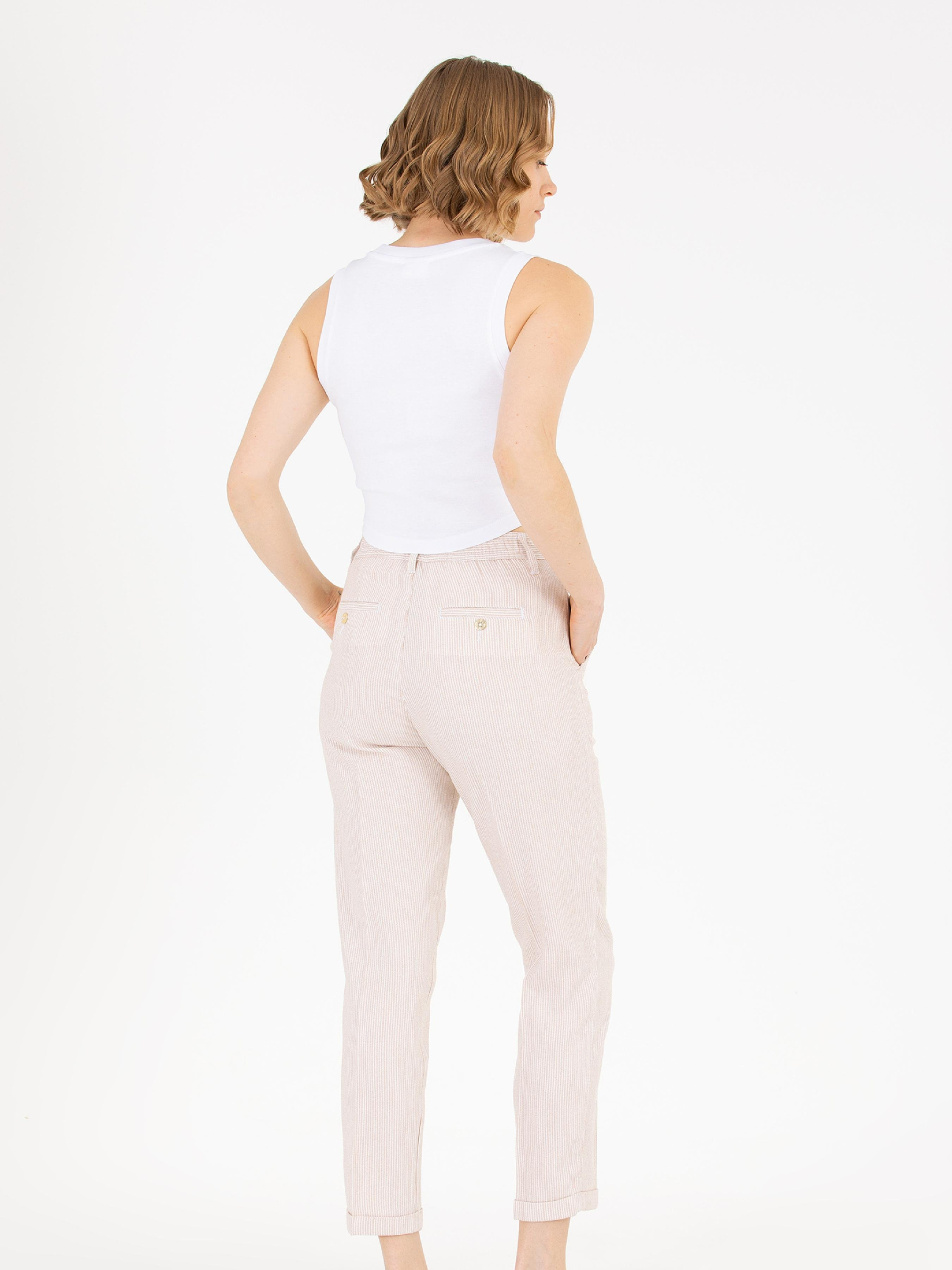 Колір: бежевий Склад: 26% бавовна, 63% віскоза,11% льон Кишені: дві кишені Фасон: вільний Посадка: середня посадка Обхват пояса: 64 см Обхват стегон: 90 см Розмір на моделі: 34 Зріст: 170 см LID-1665