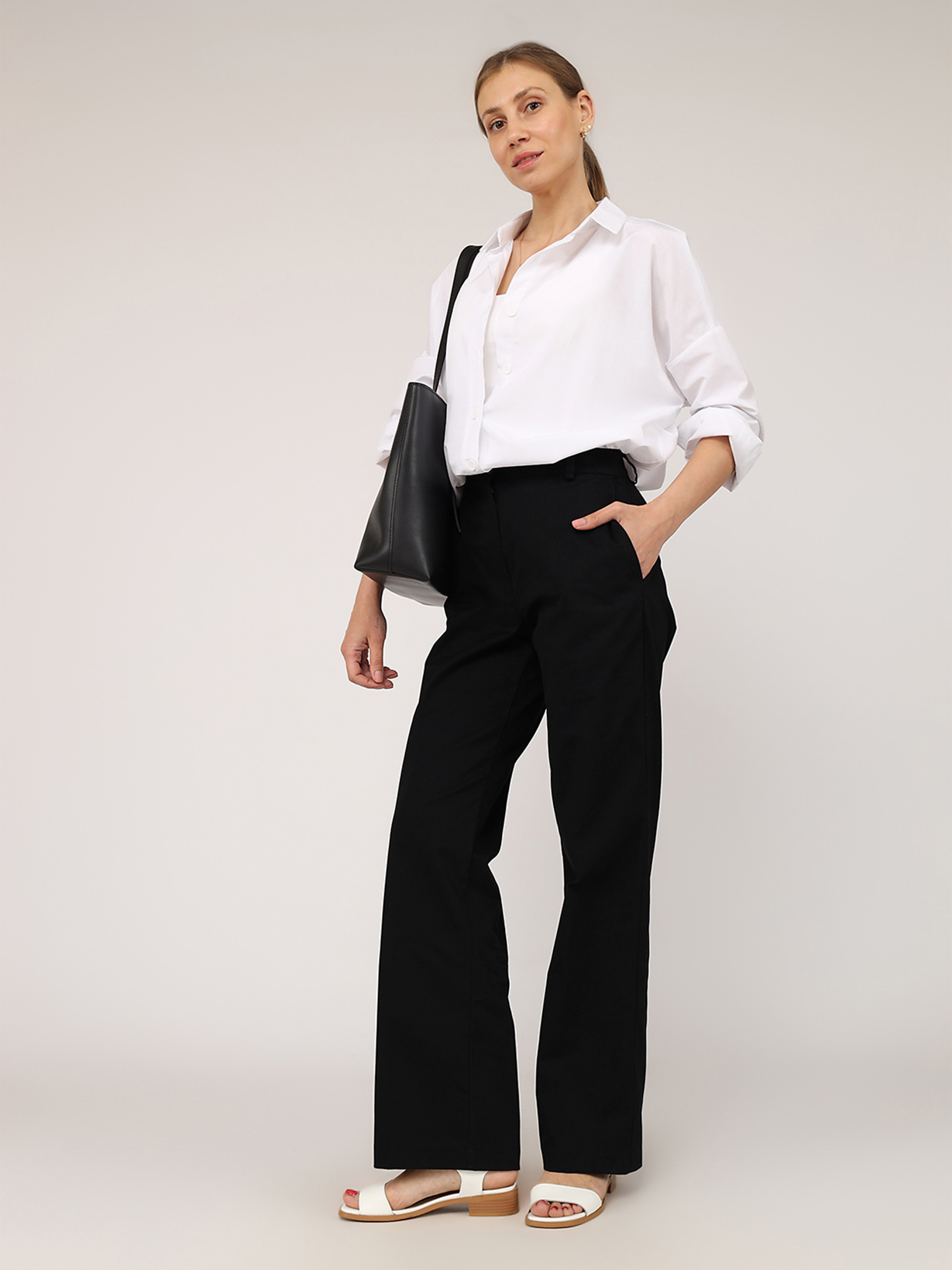 Штани широкі жіночі – це елегантний і комфортний елемент гардеробу, що додає образу легкості та вишуканості. Їхній вільний крій створює невимушений силует, дозволяючи почуватися розкуто в будь-якій ситуації. М’яка, струмуюча тканина ніжно обіймає фігуру, підкреслюючи стиль і витонченість. Такі штани ідеально поєднуються з топами, блузами чи об’ємними светрами, створюючи як повсякденні, так і більш вишукані образи. Широкий фасон додає нотку свободи й актуальності, роблячи їх must-have для сучасного гардеробу. Жіночі широкі штани – це гармонія зручності, трендового дизайну та універсальності для будь-якого випадку! Особливості виробу: Колір: чорний, однотонний. Матеріал виготовлення: костюмна тканина. Склад: 55 % поліестер, 40 % віскоза, 5 % еластан. Крій: широкі. Посадка: висока. Сезон: демісезон. Параметри моделі: Зріст: 170 сантиметрів. Розмір на моделі: 46. Країна виробник: Україна.