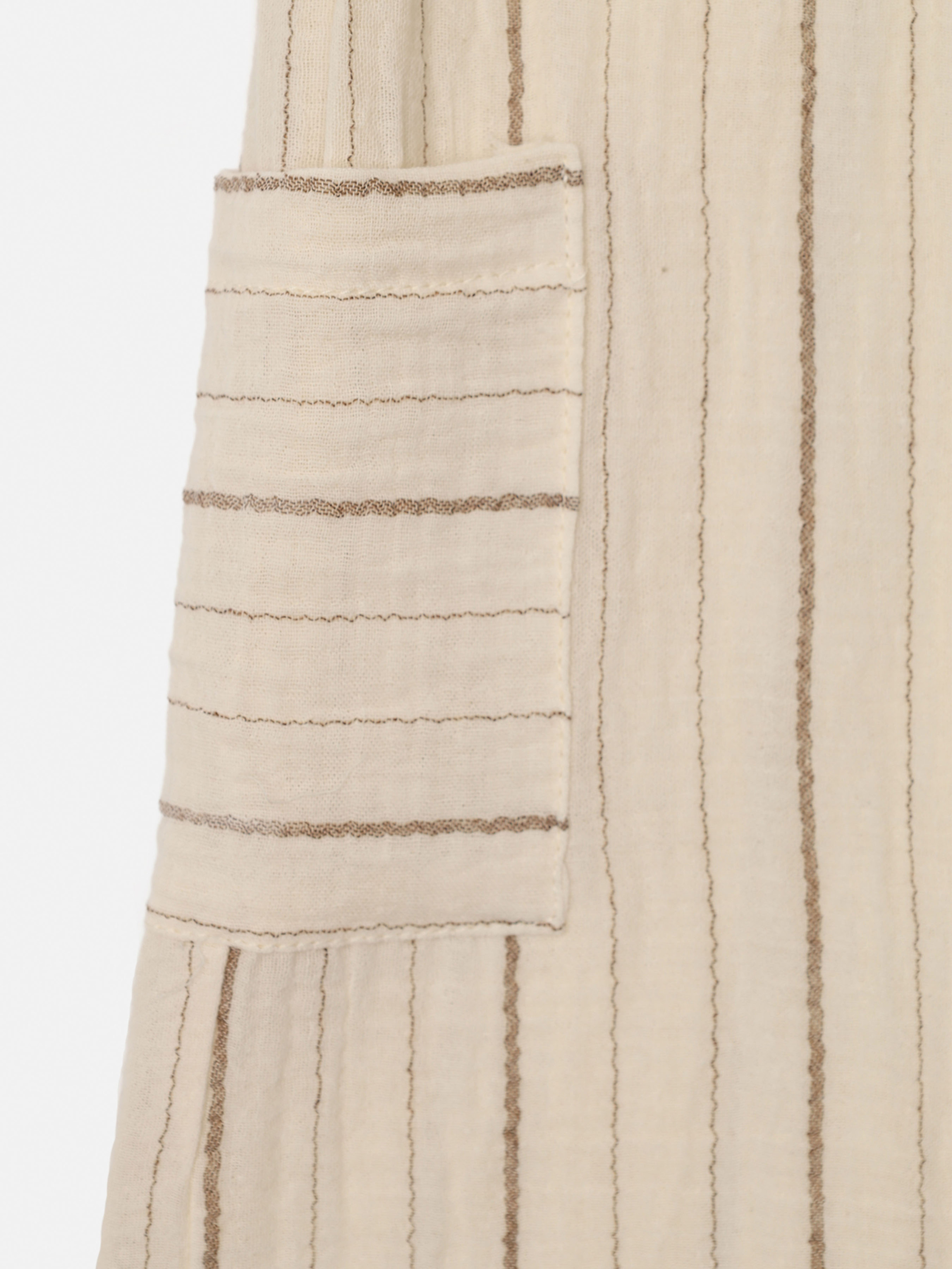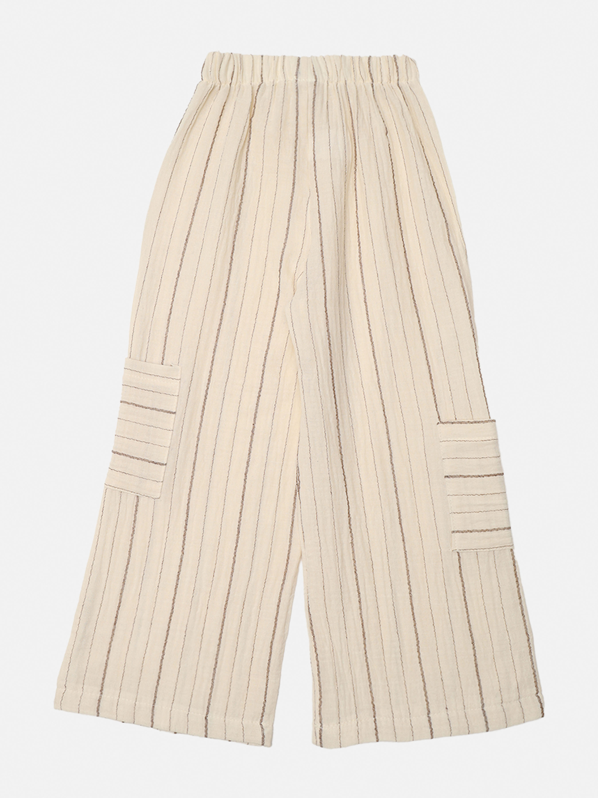 Штани палаццо для дівчинки – це елегантний і водночас зручний вибір для маленьких любительок стилю. Широкий крій і легка, струмуюча тканина створюють витончений силует, який виглядає неймовірно стильно й дарує відчуття свободи. Ці штани ідеально підходять як для особливих моментів, так і для повсякденних пригод, дозволяючи дівчинці почуватися комфортно під час ігор чи прогулянок. Завдяки завищеній талії вони додають образу нотку вишуканості, а плавні лінії підкреслюють легкість рухів. Штани палаццо чудово поєднуються з блузками, топами чи кедами, створюючи ніжні й модні комбінації. Це справжня знахідка для дівчинки, яка хоче виглядати особливо, зберігати свою унікальність і насолоджуватися кожною миттю в стильному вбранні! Особливості виробу: Колір: бежевий, зі смужками. Матеріал виготовлення: льон. Склад: 100 % бавовна. Модель штанів: палаццо. Розмірний ряд: 116 - 134. Сезон: літо. Країна виробник: Туреччина.