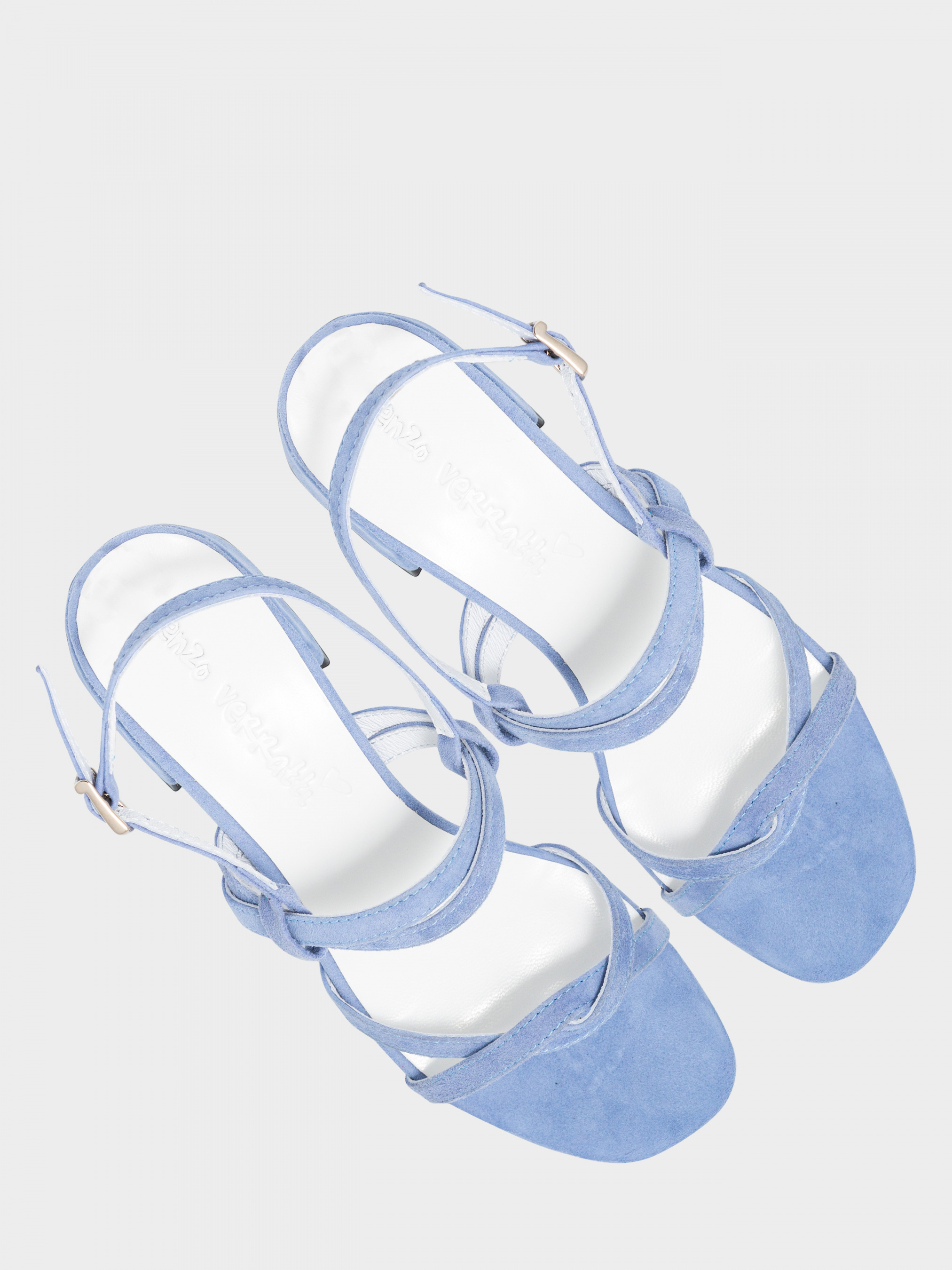 Босоніжки з натурального італійського велюру блакитного кольору. На середній підйом. Устілка має силіконову основу. Висота каблука 3 см. Відкритий злегка приквадрачений носок. Розмірна сітка по устілці: 35 р - 22,5 см, 36 р - 23,3 см, 37 р - 24 см, 38 р - 24,6 см, 38 р 24,6 см, 39 р 25,2 см, 40 р - 26 см.