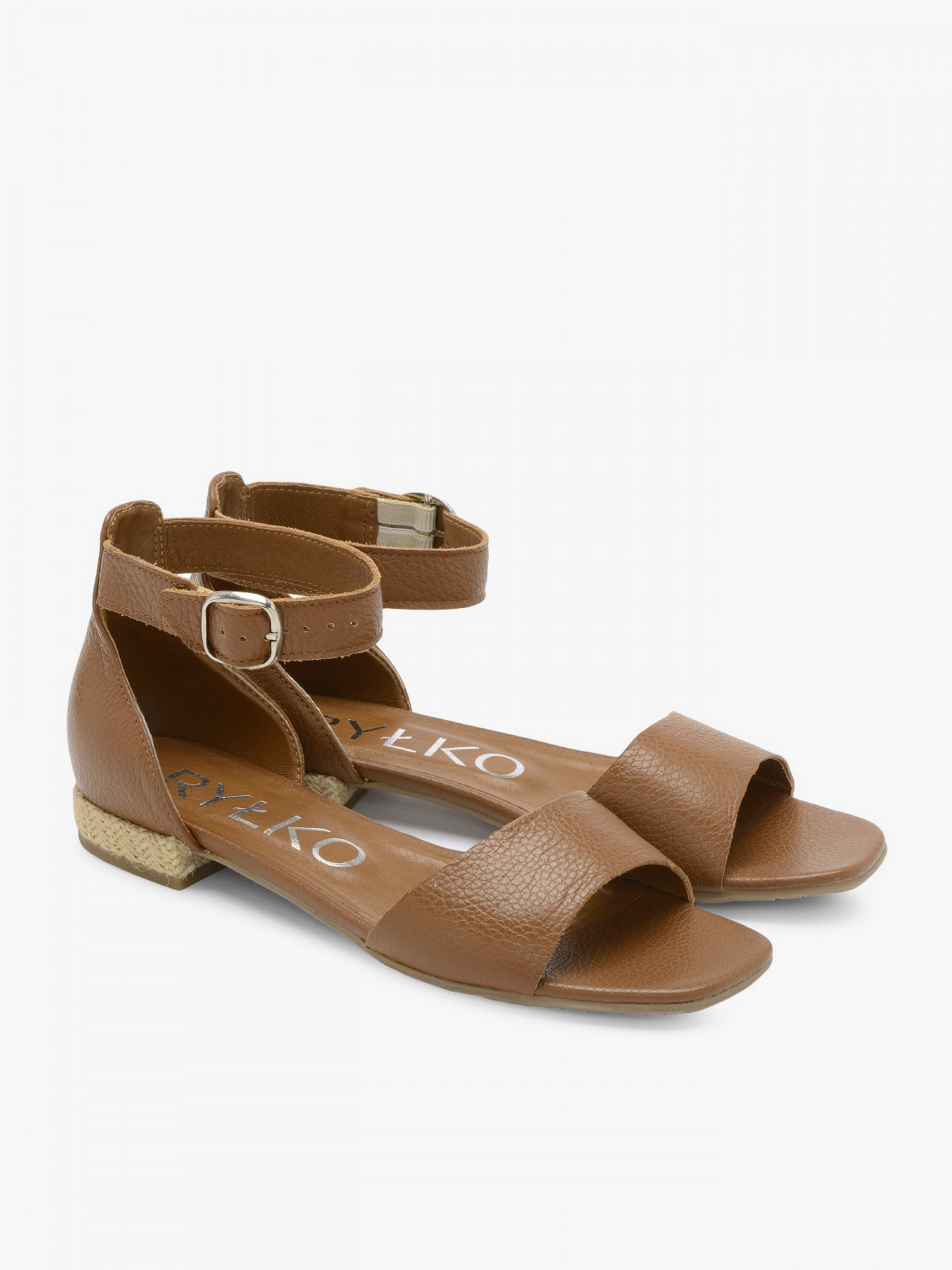Коричневі босоніжки RYŁKO з відкритою носовою частиною та закритою п'ятою, модель виготовлена з лицьової шкіри високої якості. Плоска підошва на низьких підборах з джутовою обробкою - висотою 1 см. Підходять на вузьку повноту стопи. Склад моделі - Верх: натуральна шкіра/Підкладка: натуральна шкіра/Устілка: натуральна шкіра/Підошва: термополіуретан (ТПУ)/Застібка: пряжка. Розмірна сітка RYLKO EU: 35-23,3 см. 36-24 см. 36,5-24,3 см. 37-24,7 см. 37,5-25 см. 38-25,3 см. 38,5 -25,7 см. 39-26 см. 39,5-26,3 см. 40-26,7 см. 40,5-27 см. 41-27,3 см. 42-28 см.