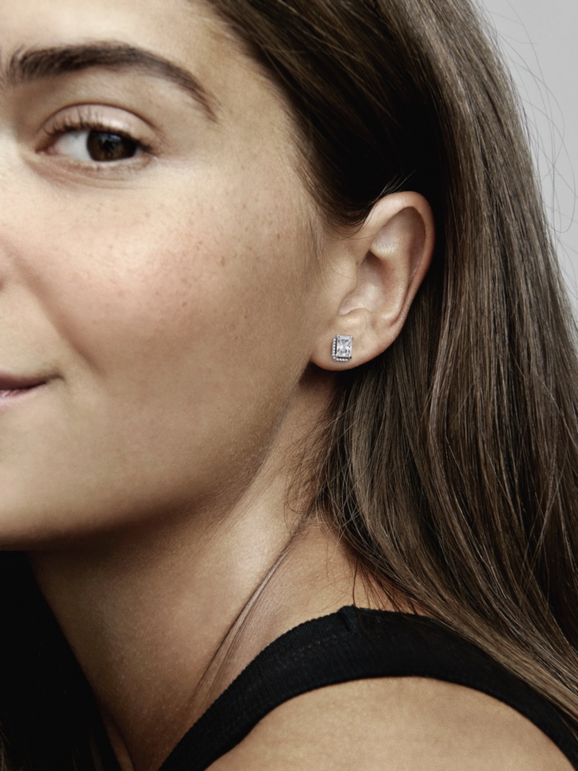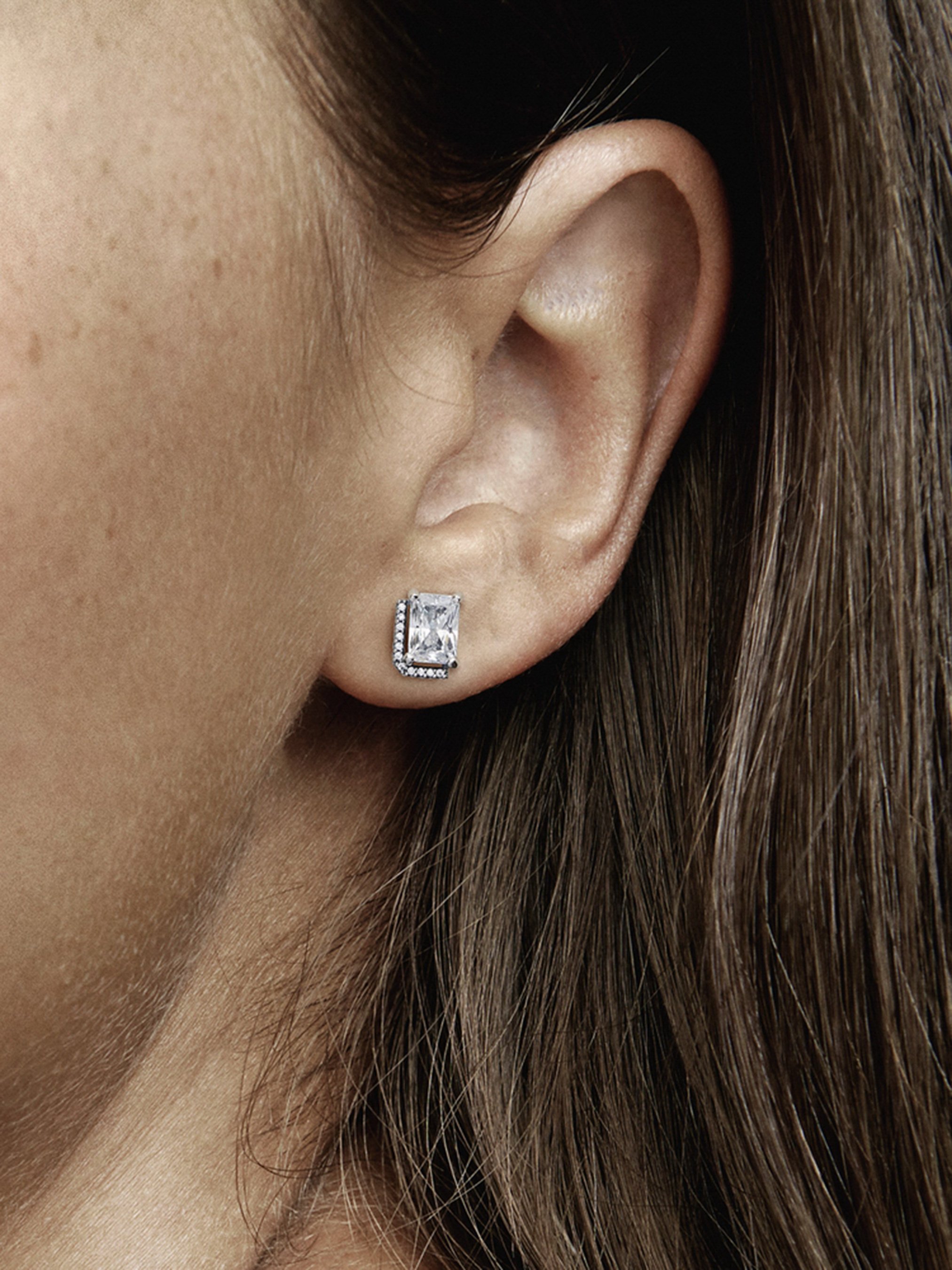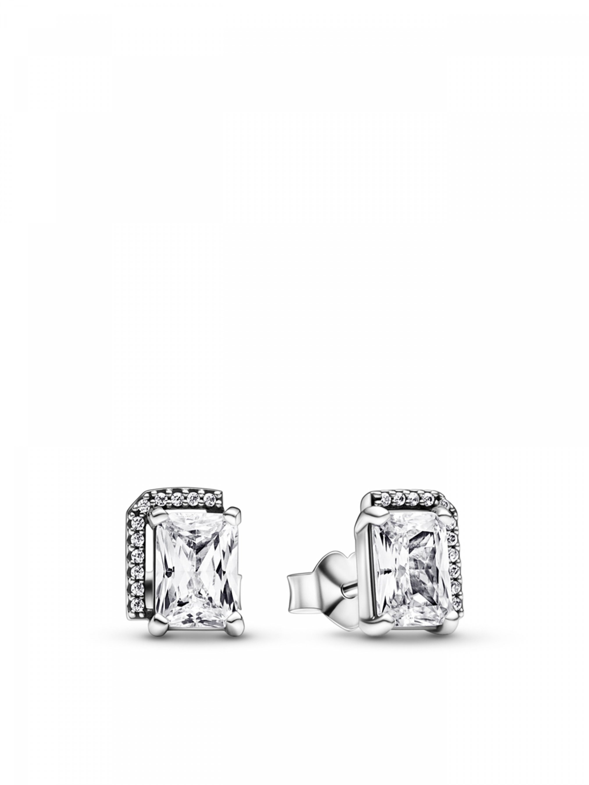 Одягніть ефектну прикрасу з ореолом. Срібні сережки-пусети "Блискучий прямокутник з ореолом", що інкрустовані камінцями кубічного оксиду цирконію прямокутної форми, додадуть класичної елегантності вашому повсякденному образу. Приблизно половину кожної сережки інкрустовано ореолом із pavé. Ці блискучі прикраси — сучасна інтерпретація традиційних ювелірних виробів з ореолом.