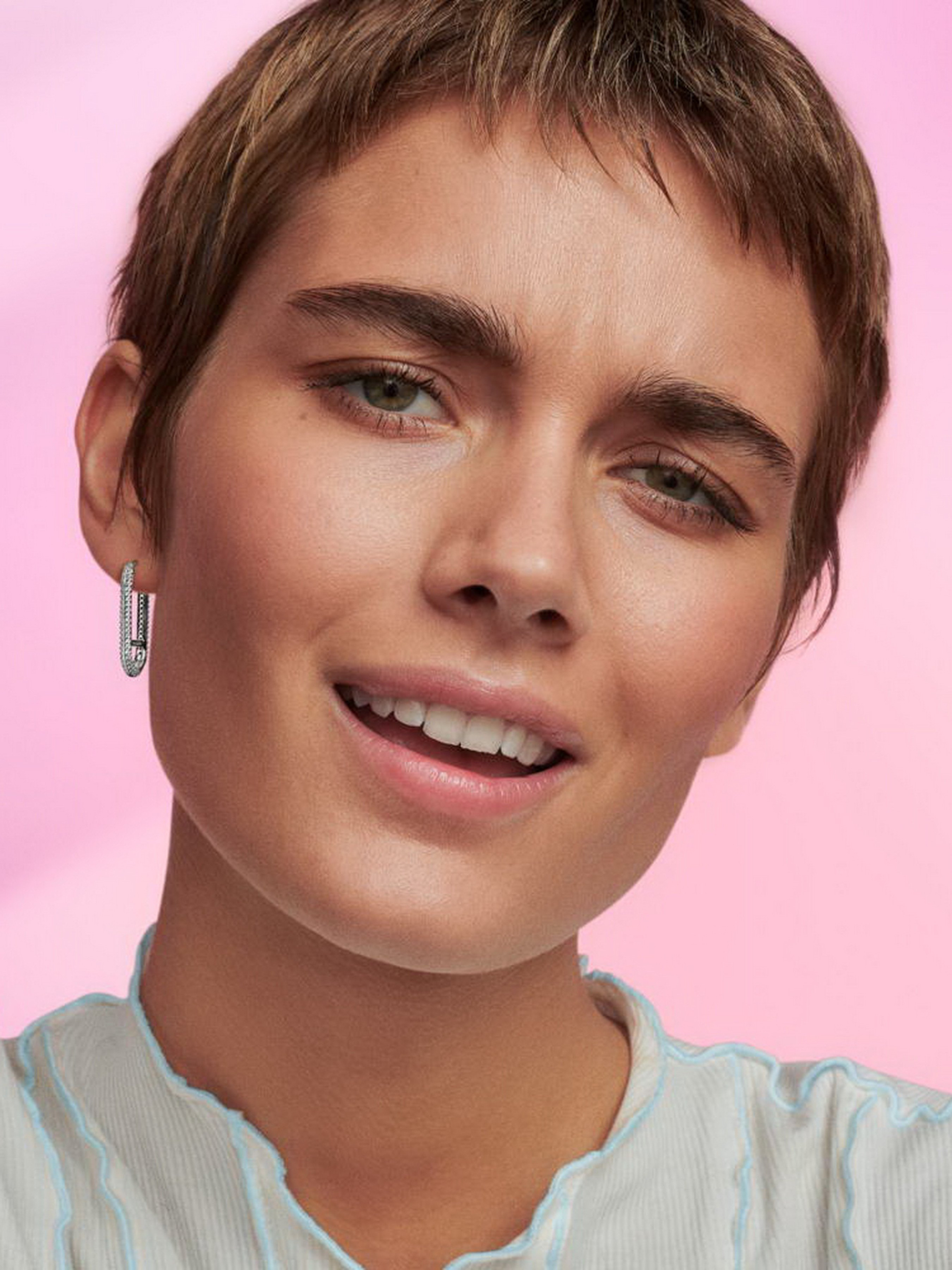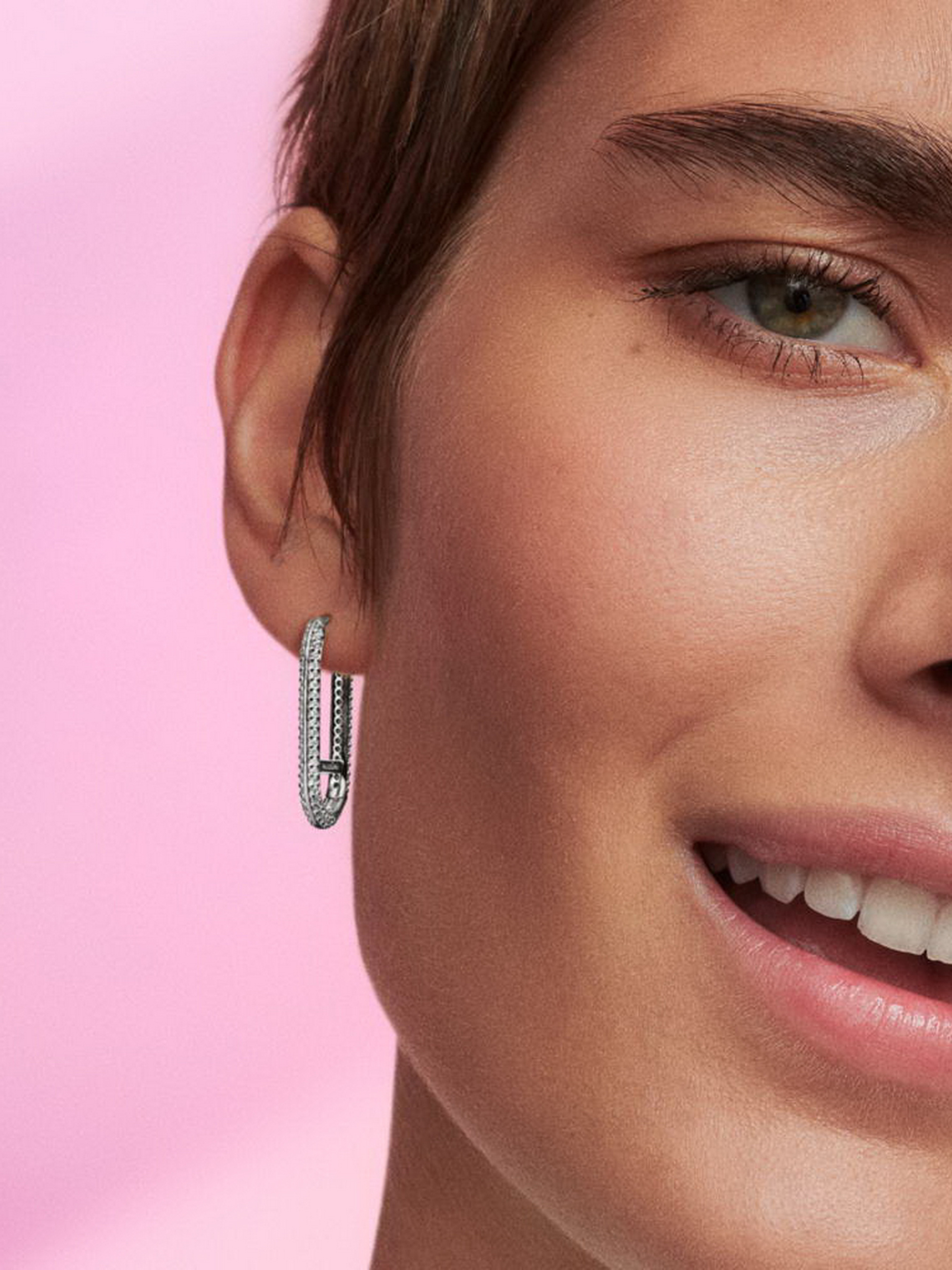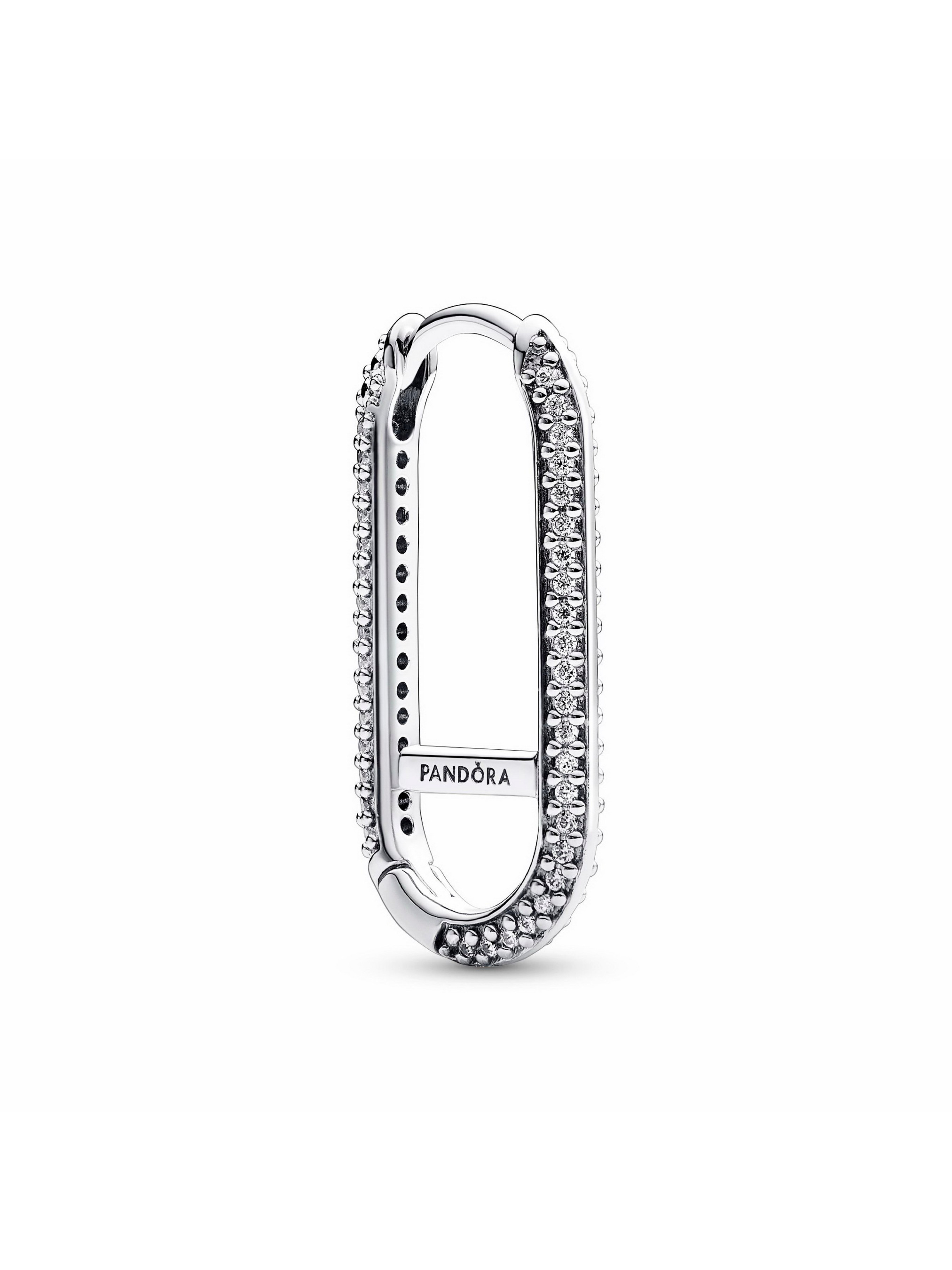 Будьте сміливими та впевненими в собі з подовженою ланковою сережкою Pandora ME з паве. Ця одинарна ланкова сережка-хуп зі срібла 925-ї проби, має горизонтальну перекладину в середині та два ряди паве з прозорих камінців кубічного оксиду цирконію на зовнішніх сторонах сережки. На сережці можна закріпити до трьох мініпідвісок або один медальйон, ланку для стилізації чи з'єднувач для стилізації — практично безмежні можливості для створення нових дизайнів.