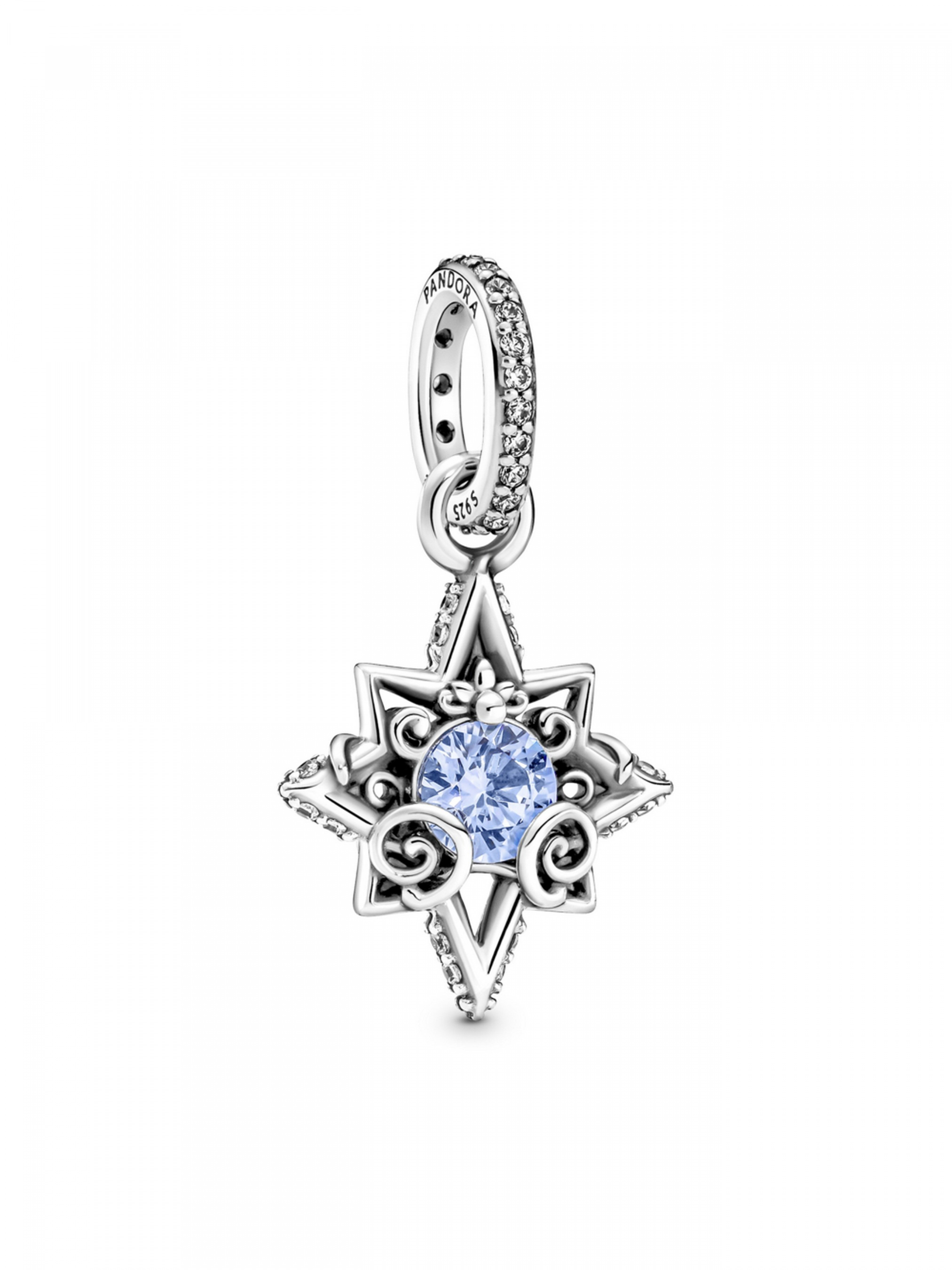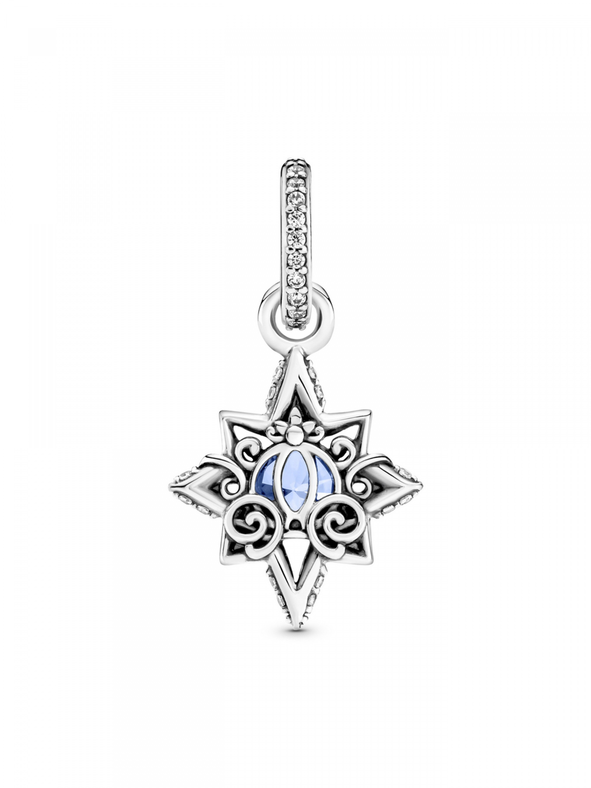 Створіть образ, гідний принцеси, разом із підвіскою "Блакитна зірка" з лінійки прикрас "Попелюшка" колекції Disney. Центральний елемент цієї срібної підвіски — великий блакитний камінець кубічного оксиду цирконію, оточений асиметричною зіркою. Зірку оздоблено металевими кульками та завитками й доповнено вирізьбленим зображеннями карети з гарбуза на зворотному боці. На створення цієї прикраси нас надихнув легендарний стиль та історія героїні Disney, Попелюшки. Прикраса неодмінно додасть королівської вишуканості вашому образові.