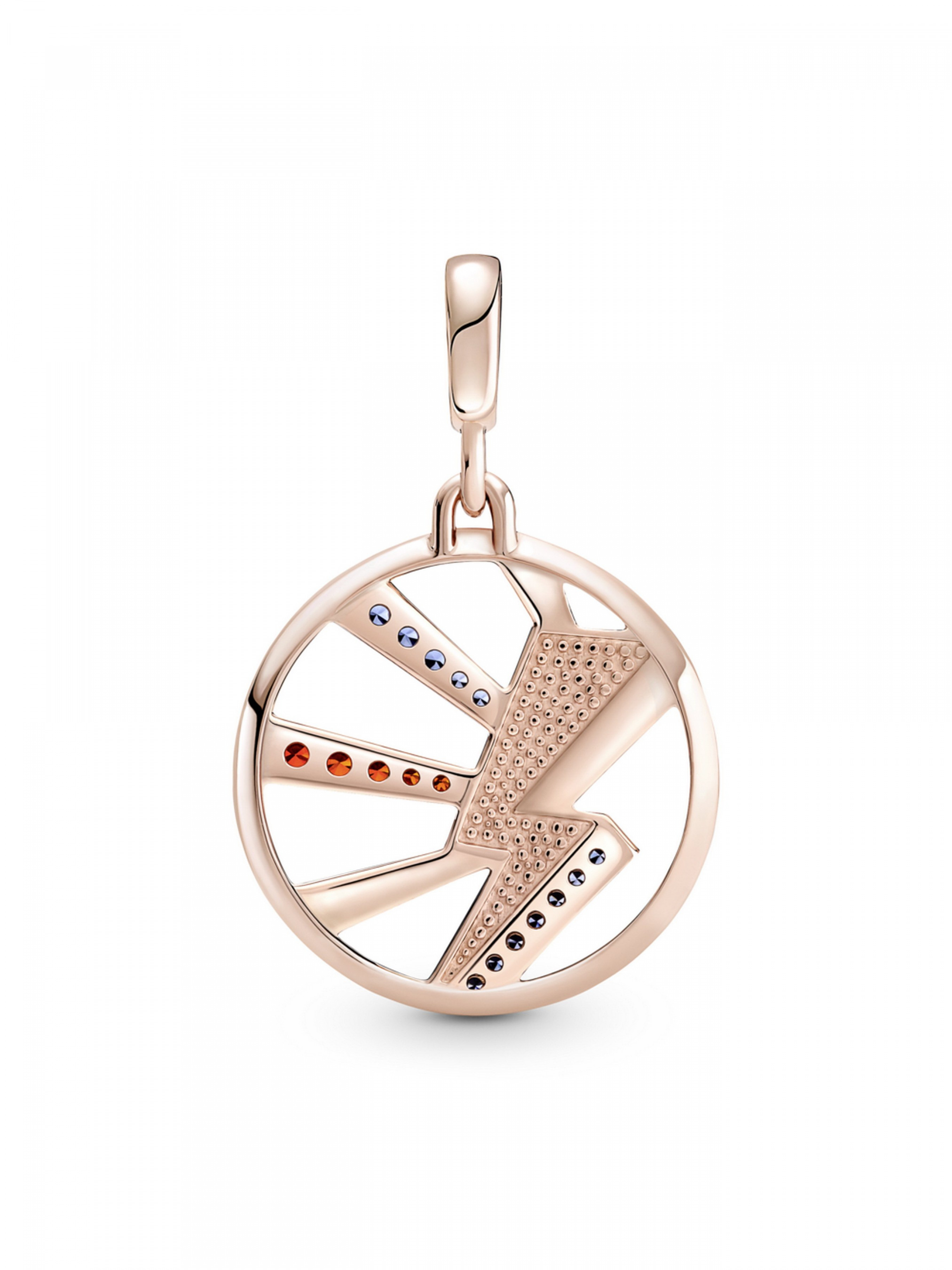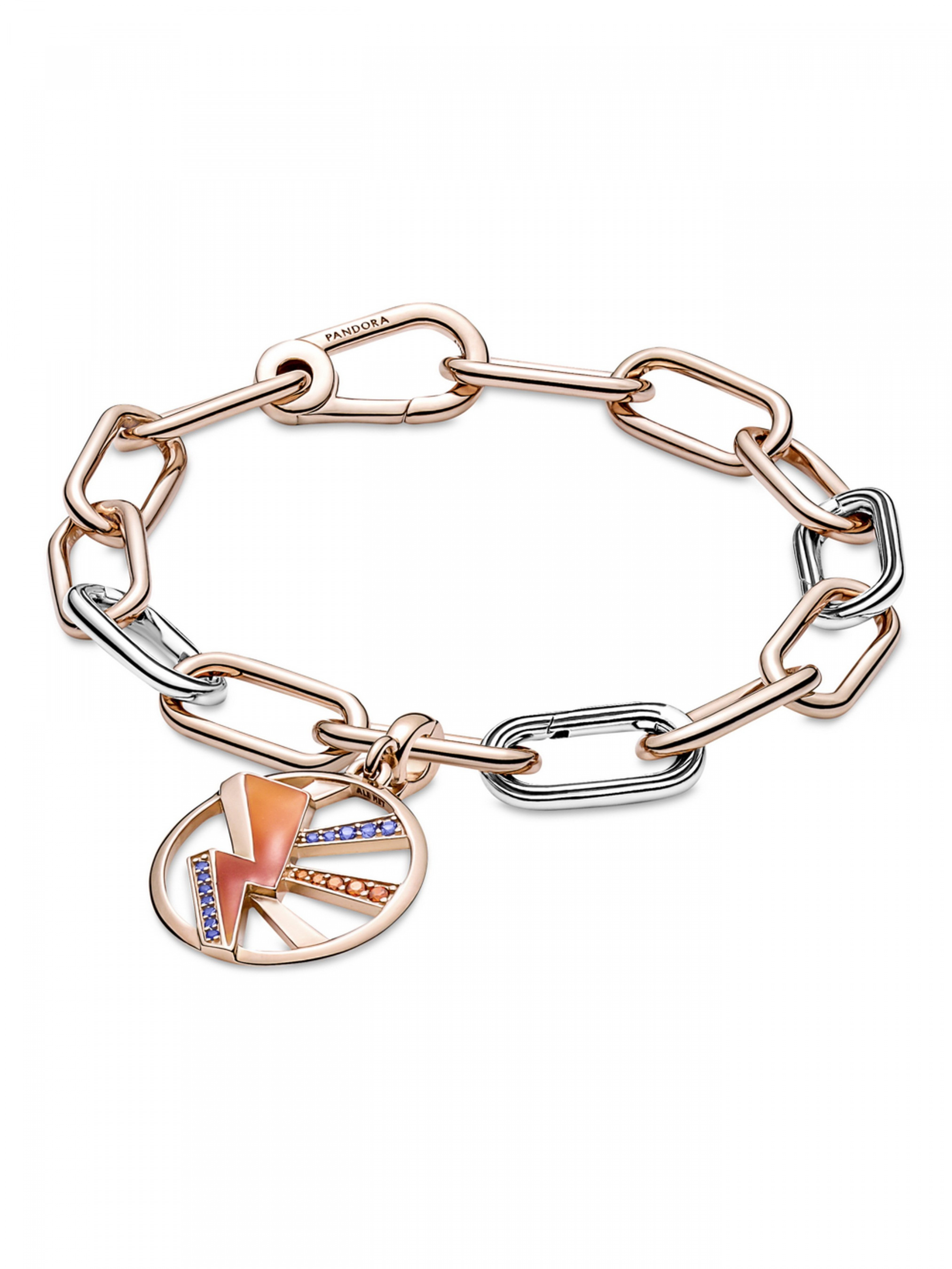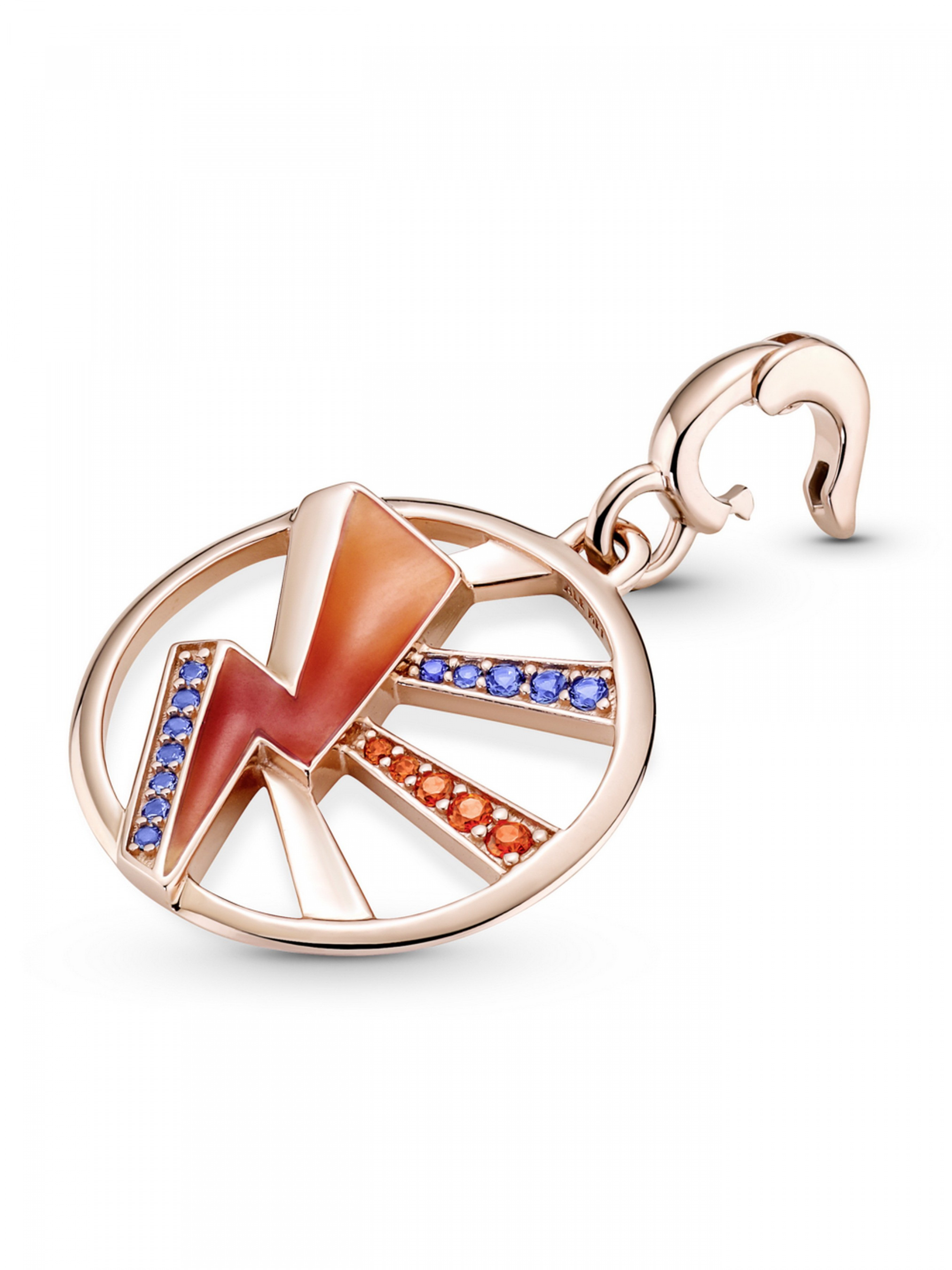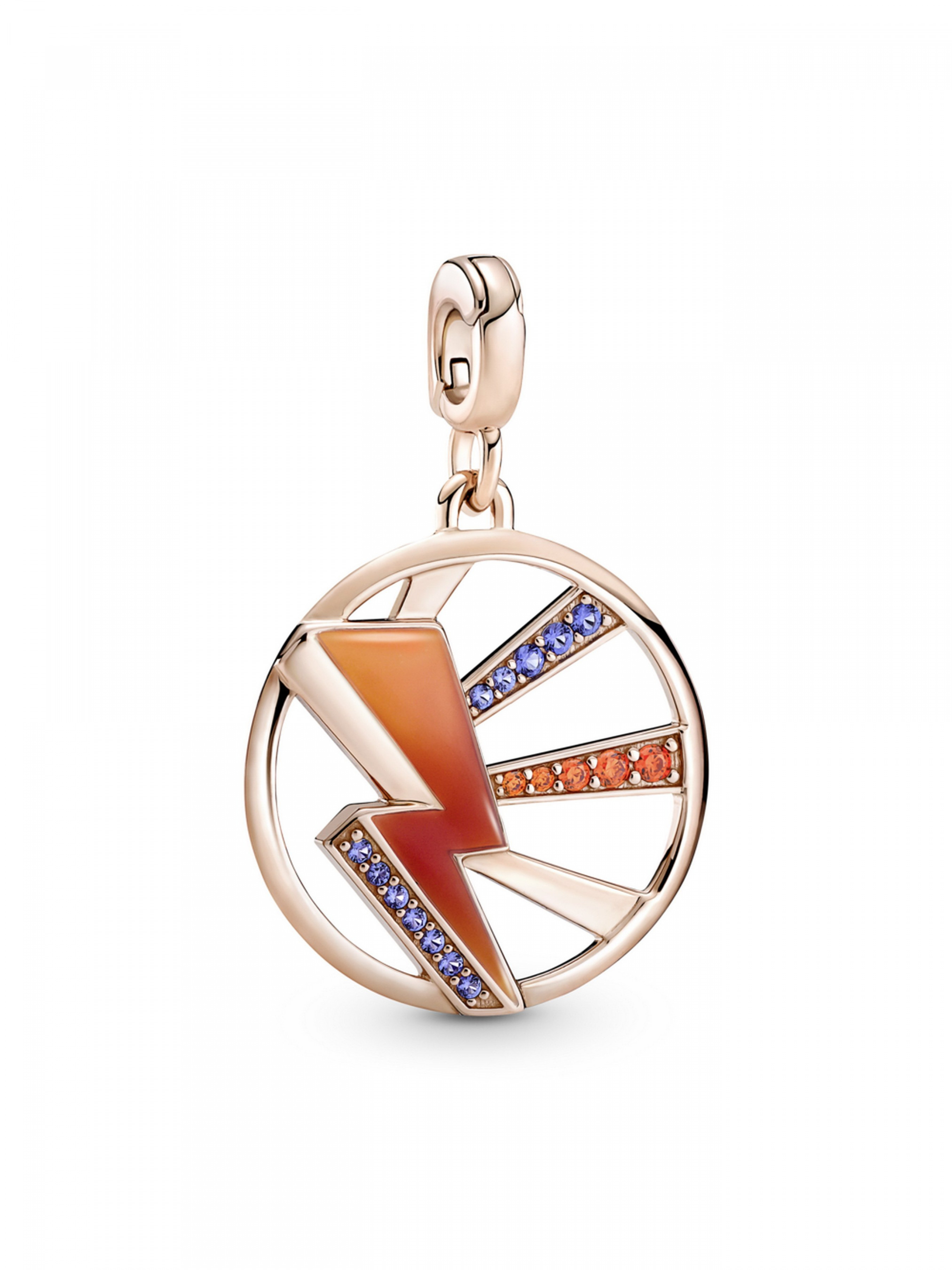 Розкрийте ваш потенціал за допомогою медальйона "Запали мене" Pandora ME. На цьому довершеному вручну медальйоні з покриттям рожевим золотом 14k зображено блискавку, що є символом яскравих ідей, сили, стійкості та інтуїції. Прикрасу розфарбовано прозорою емаллю, що плавно переходить зі світло-вишневого до червоного кольору, й інкрустовано кристалами діамантового огранювання контрастних помаранчевого та синього кольорів, що символізують полум'я та воду, протилежності, які притягуються. Завдяки дужці із простою застібкою цю прикрасу-амулет можна кріпити на ланки для стилізації Pandora ME закритого типу, з'єднувачі для стилізації, що відкриваються, та з'єднувачі для стилізації каблучок на браслетах, намисті, каблучках і сережках-хупах.