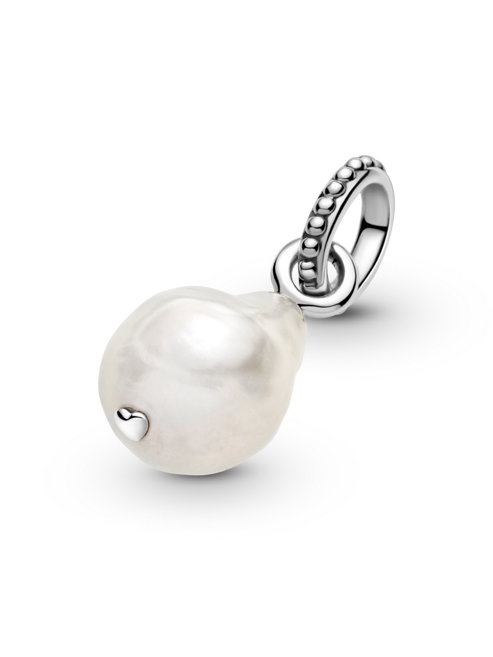 Підвіска із культивованою прісноводною перлиною "бароко" — неповторна, єдина у своєму роді прикраса. Кожна культивована прісноводна перлина унікальна за всіма параметрами, як от: розмір, форма, колір. Саме тому ця підвіска стане ідеальним подарунком людині, що займає унікальне місце у вашому житті. Прикраса вирізняється природним мерехтінням перлини. Сучасного акценту класичній прикрасі додає дужка, що виконана зі срібла 925-ї проби й оздоблена металевими кульками.