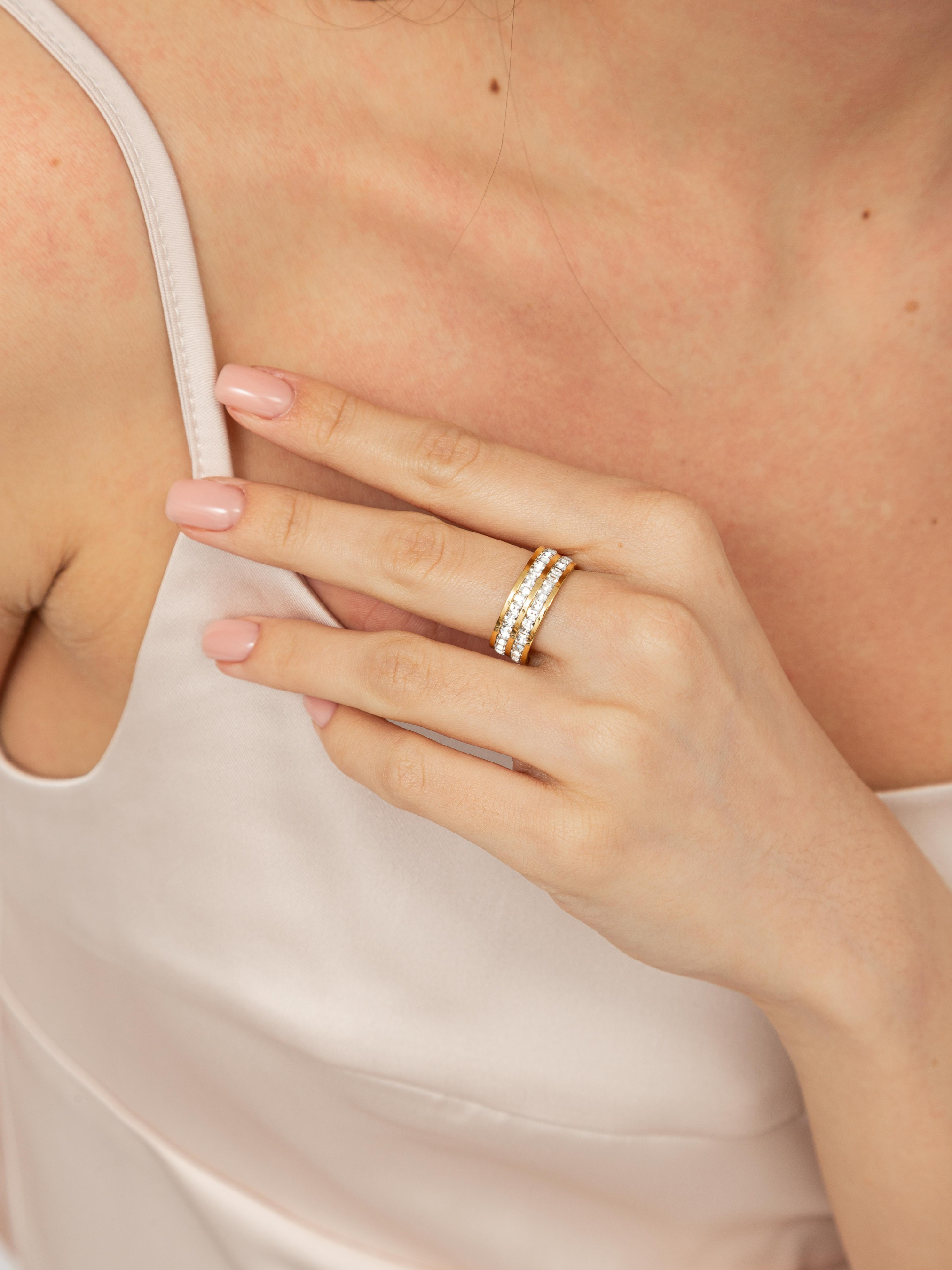 Каблучка KOL-2730 - це стильний аксесуар, який стане яскравим доповненням до будь-якого ювелірного ансамблю. Виготовлена з високоміцних матеріалів, вона поєднує в собі елегантний дизайн та сучасні тенденції моди, роблячи її ідеальним вибором для жінок, які цінують як стиль, так і якість.Ця каблучка відмінно підходить не лише для щоденного носіння, але і для урочистих подій, на яких ви прагнете виглядати бездоганно.Основні характеристики:- Каблучка має оригінальний дизайн з елементами, що надають їй особливого шарму та вишуканості.- Використання високоякісних матеріалів гарантує тривале користування без втрати візуальної привабливості.- Аксесуар доступний у різних розмірах, що дозволяє підібрати ідеальний варіант для вашої руки.Догляд:- Рекомендується зберігати каблучку в окремій коробочці або мішечку, щоб уникнути подряпин і пошкоджень.- Очистіть каблучку від забруднень за допомогою м'якої тканини, уникаючи агресивних хімічних засобів.- Не надягайте каблучку під час занять спортом або під час виконання домашніх справ, щоб зберегти її первозданний вигляд.