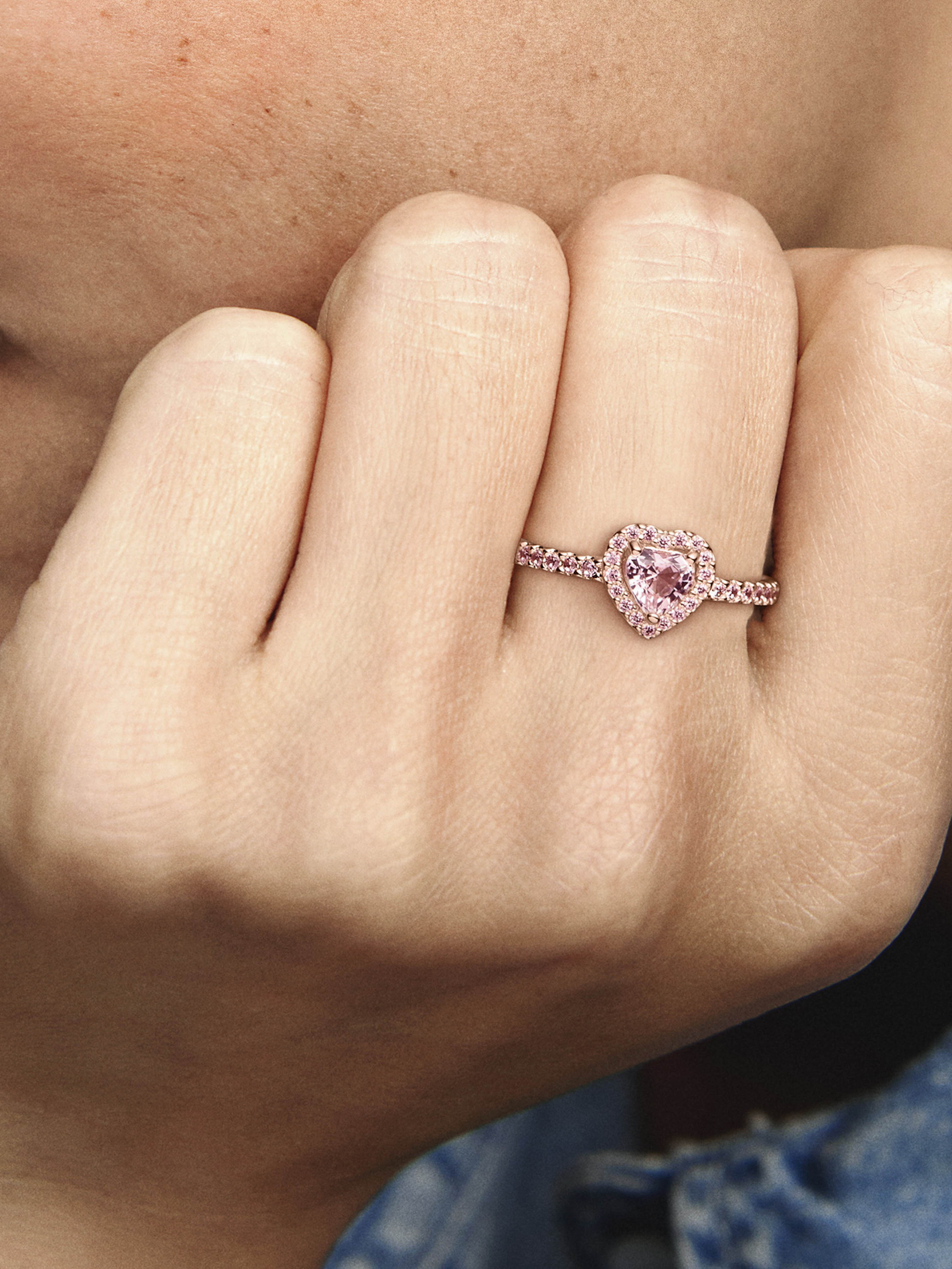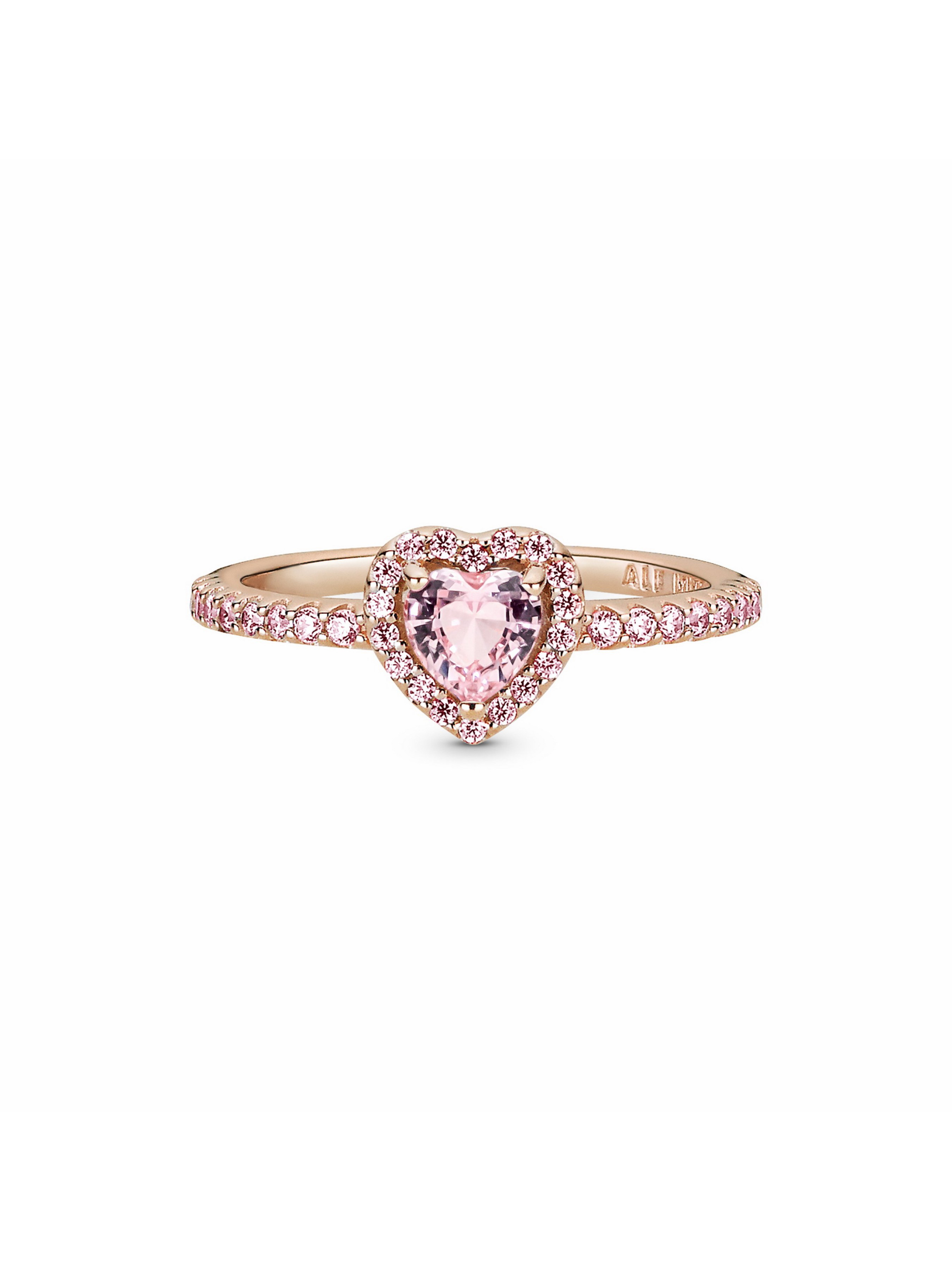 Додайте вишуканості своєму образові за допомогою каблучки "Блискуче серце". На створення цієї каблучки нас надихнули класичні прикраси з колекції Pandora Timeless. Центральний елемент каблучки, що виготовлена з унікального сплаву металів з покриттям рожевим золотом 14k, — рожевий камінь у формі серця, який встановлено у високому кріпленні. Ореол і половину шинки каблучки інкрустовано прозорими камінцями кубічного оксиду цирконію. На внутрішній частині шинки міститься логотип Pandora. Щоб створити яскравий образ, доповніть каблучку довершеними вручну срібними прикрасами.
