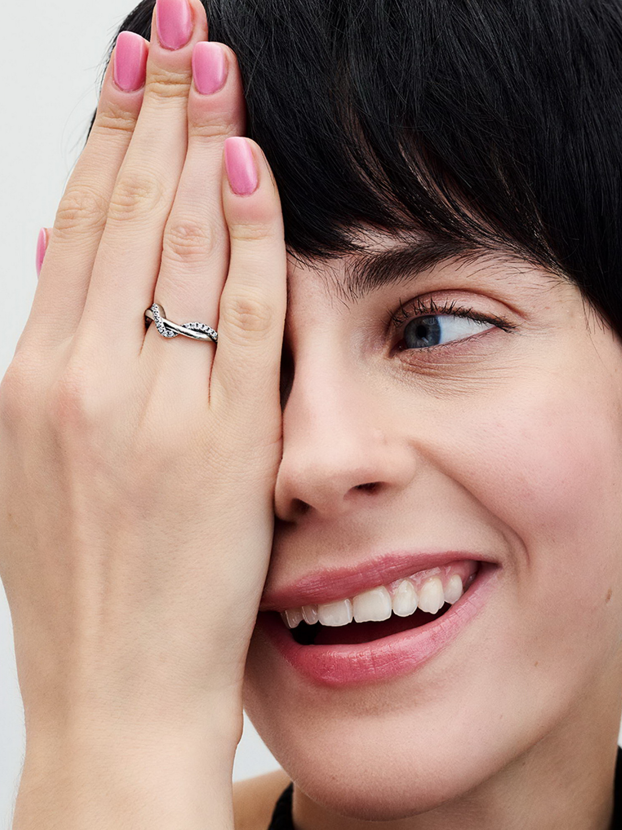 Виготовлена зі срібла 925-ї проби, ця каблучка "Переплетені хвилі" своїм дизайном нагадує рухи океанських хвиль. Одна частина каблучки відполірована та гладка, огортається хвилястою смугою, яка інкрустована сяючими камінцями кубічного оксиду цирконію в закріпці паве. Носіть її окремо або комбінуйте з улюбленими каблучками з паве, щоб створити сучасний образ, який буде актуальним ще багато років.