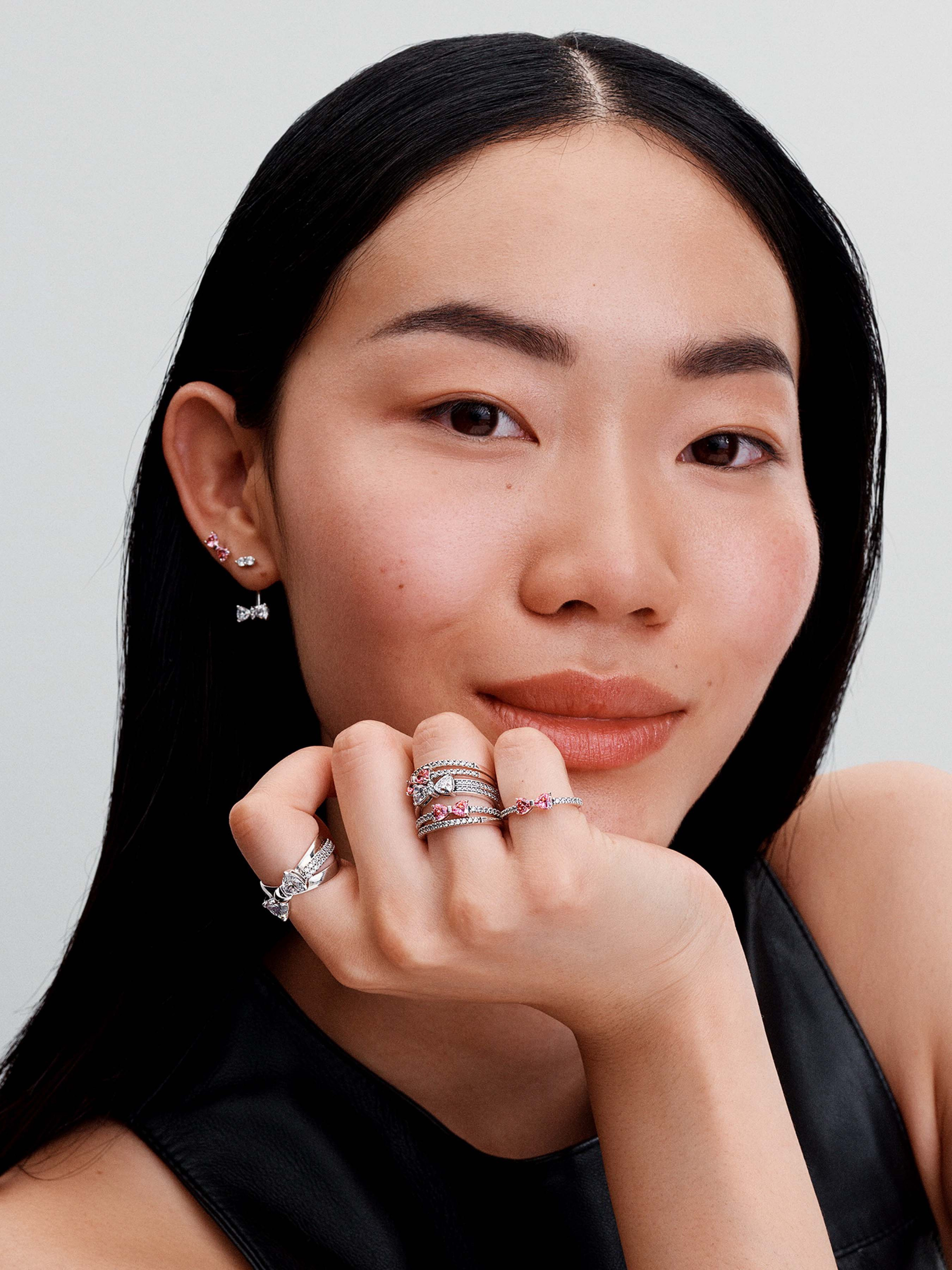 Зустрічайте каблучку з блискучим рожевим бантом: елегантну прикрасу зі срібла 925-ї проби. По центру ця універсальна каблучка оздоблена двома камінцями кубічного оксиду цирконію у формі серця, а витончений бант додає їй блиску і святковості. Шинка каблучки інкрустована чотирнадцятьма камінцями кубічного оксиду цирконію, що надають додаткового сяйва. Ця каблучка ідеально пасуватиме як до повсякденного, так і до офіційного вбрання, додаючи нотку кольору до будь-якого образу.