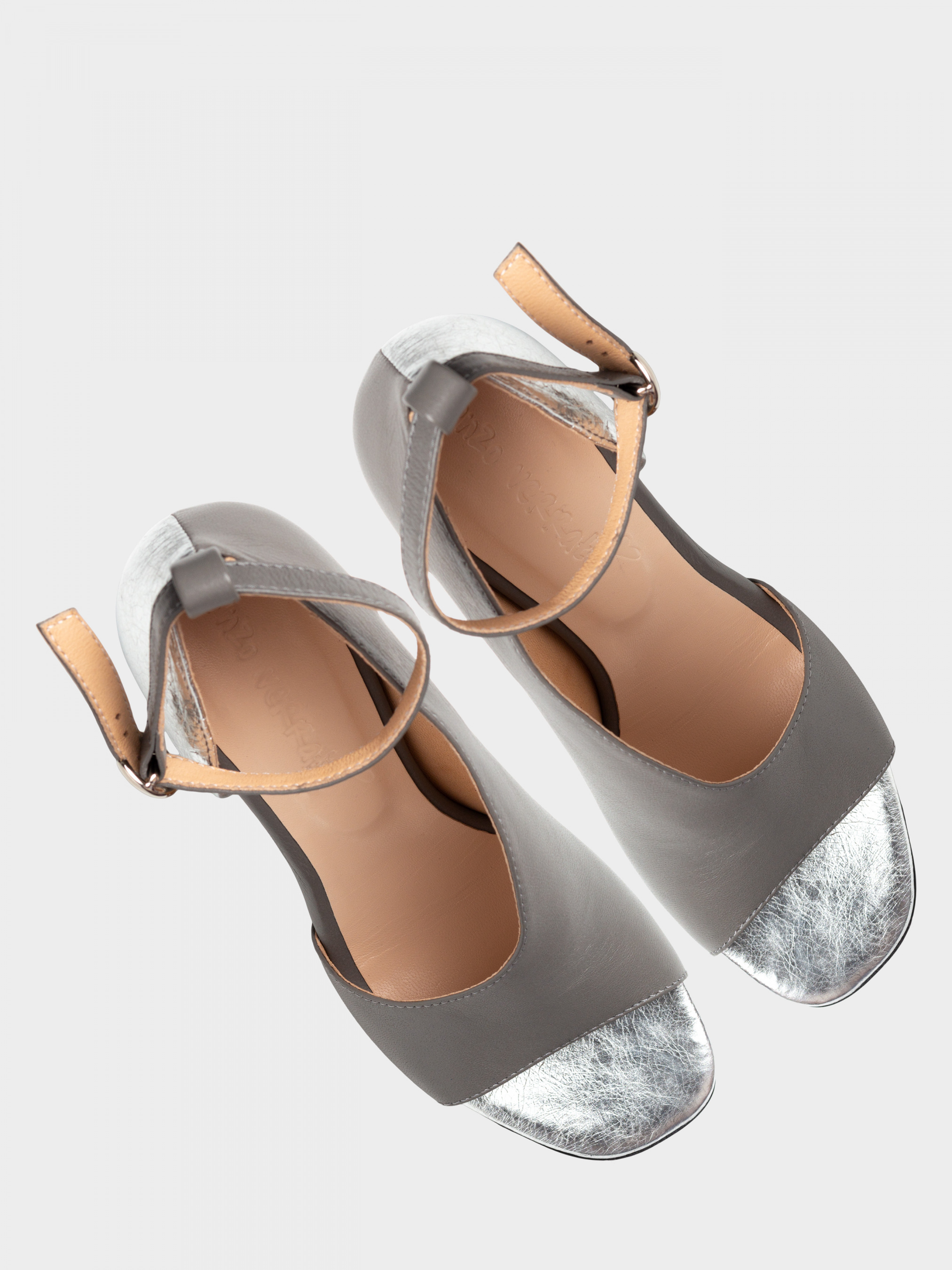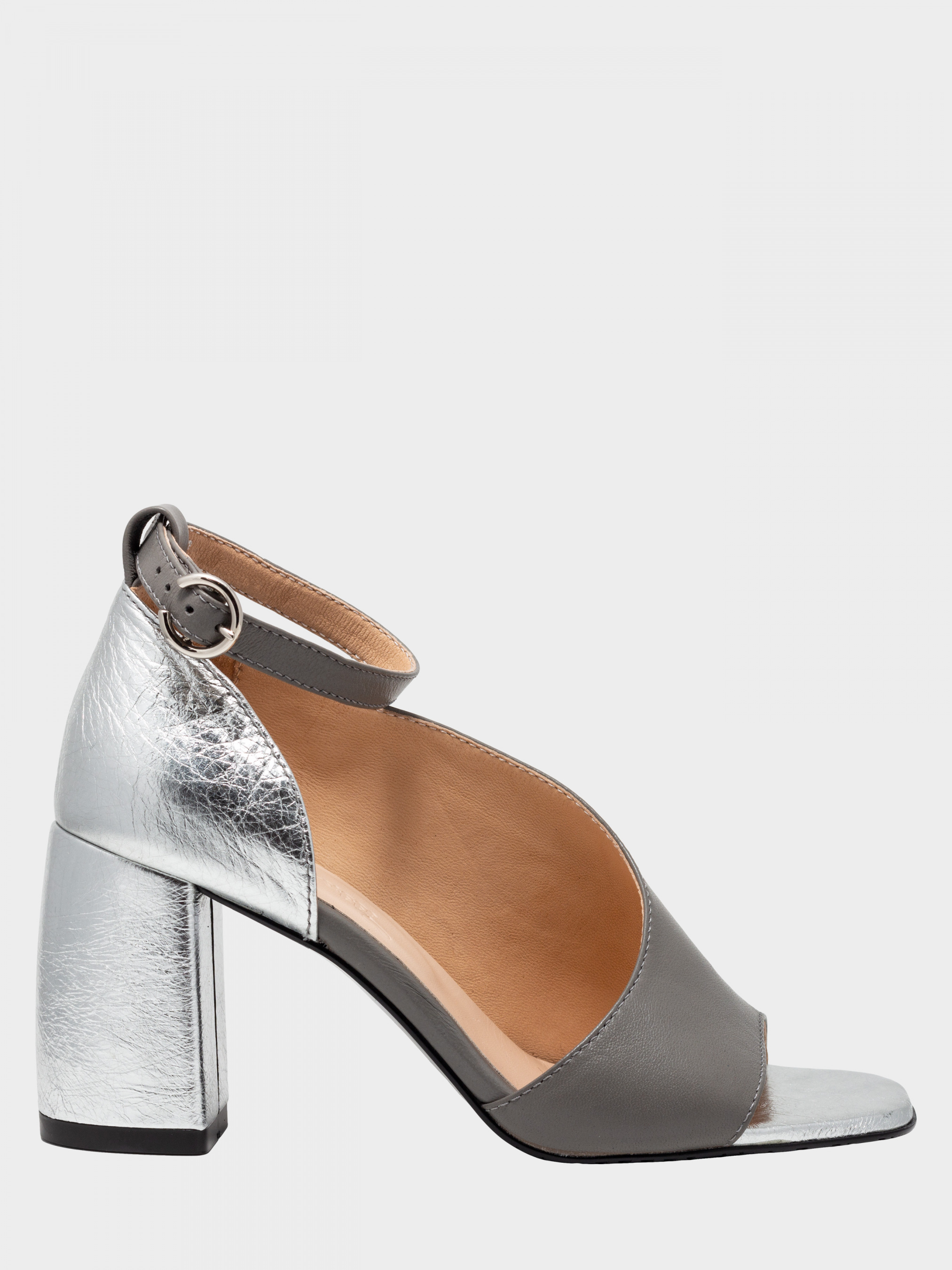 Оригінальні босоніжки виготовлені зі шкіри сірого та срібного кольору - комбіновані. Зручний широкий стійкий підбор заввишки 7 см, обтягнутий срібною шкірою. Комфортна колодка дозволяє відчувати себе впевнено вессь день. Босоніжки фіксуються навколо щіколодкі за допомогою ремінця з пряжкою. П'ятка закрита. Носочна частина відкрита і має злегка квадратну форму. Розмірна сітка по устілці: 35 р - 22,6 см, 36 р - 23,3 см, 37 р - 24 см, 38 р - 24,6 см, 39 р - 25,3 см, 40 р - 26 см.
