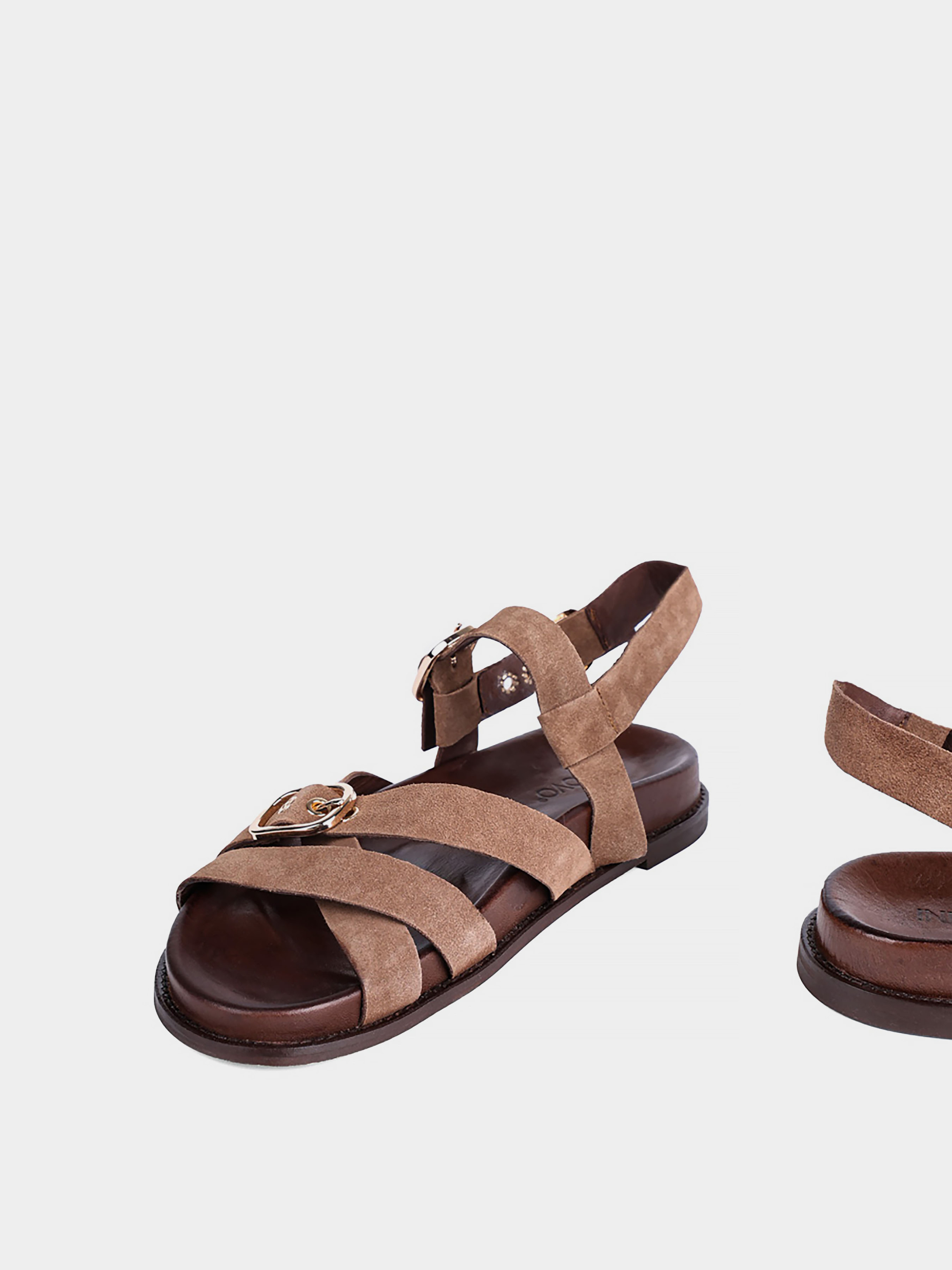 Жіночі сандалі INUOVO велюрові коричневі Матеріал: велюр. Підкладка: натуральна шкіра. Бренд: INUOVO. Колір: коричневий. Підошва: подвійна. Тип каблука: низький. Стиль: комфорт. Сезон: весна-літо.
