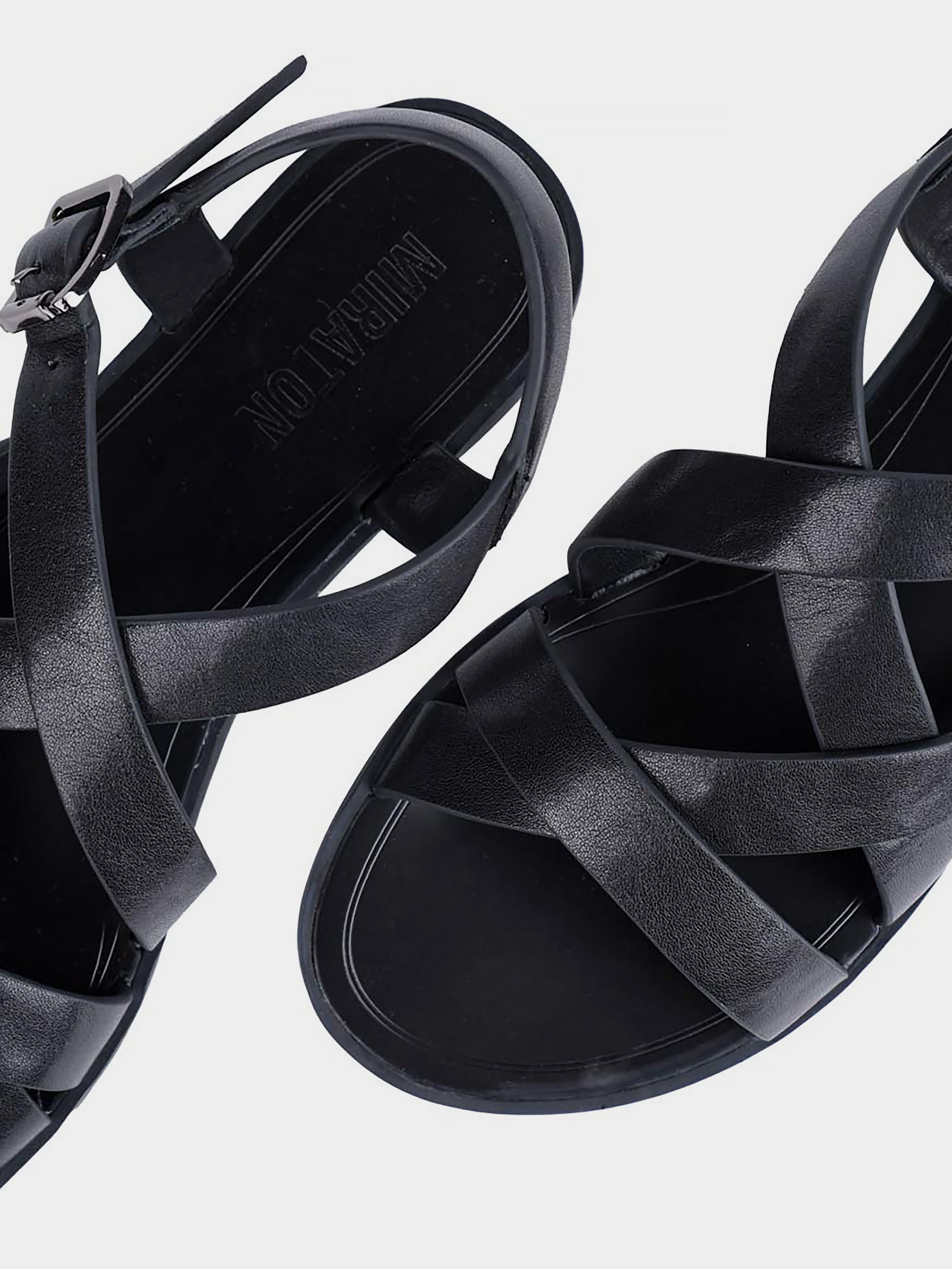 Жіночі сандалі MIRATON шкіряні чорні Матеріал: шкіра. Підкладка: натуральна шкіра. Бренд: MIRATON. Колір: чорний. Підошва: танкетка. Тип каблука: низький. Стиль: комфорт. Сезон: весна-літо.