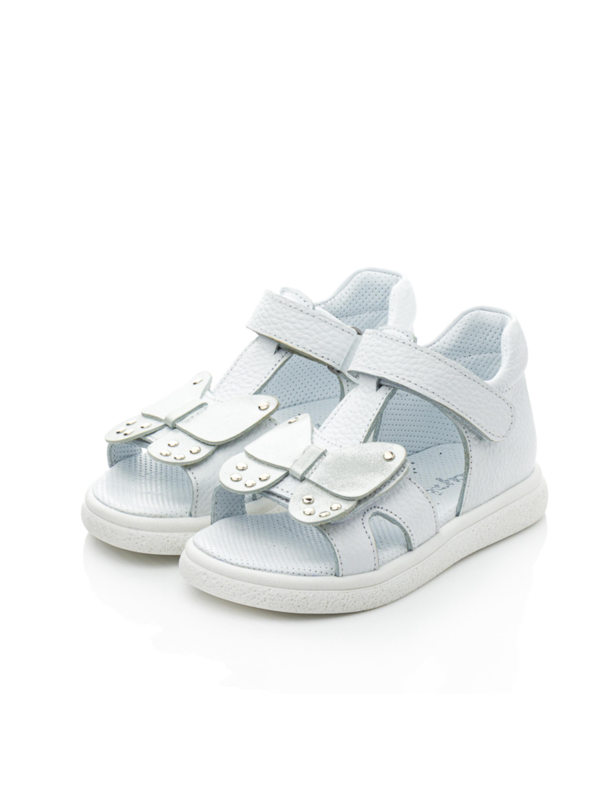 Білі шкіряні босоніжки для дівчинки – зручність і витончений декор Ця модель створена для маленьких принцес, які люблять комфорт і гарні деталі. Босоніжки виготовлені з натуральної шкіри, м’якої та приємної до ніжки, а перфорована устілка дозволяє стопам дихати. Висока задня частина підтримує ніжку, забезпечуючи правильну фіксацію. Декоративний метелик із металевими елементами надає взуттю оригінальності та робить його чудовим вибором як для повсякденних прогулянок, так і для особливих випадків. Білий колір гармонійно поєднується з будь-яким літнім вбранням, додаючи легкості та ніжності образу.