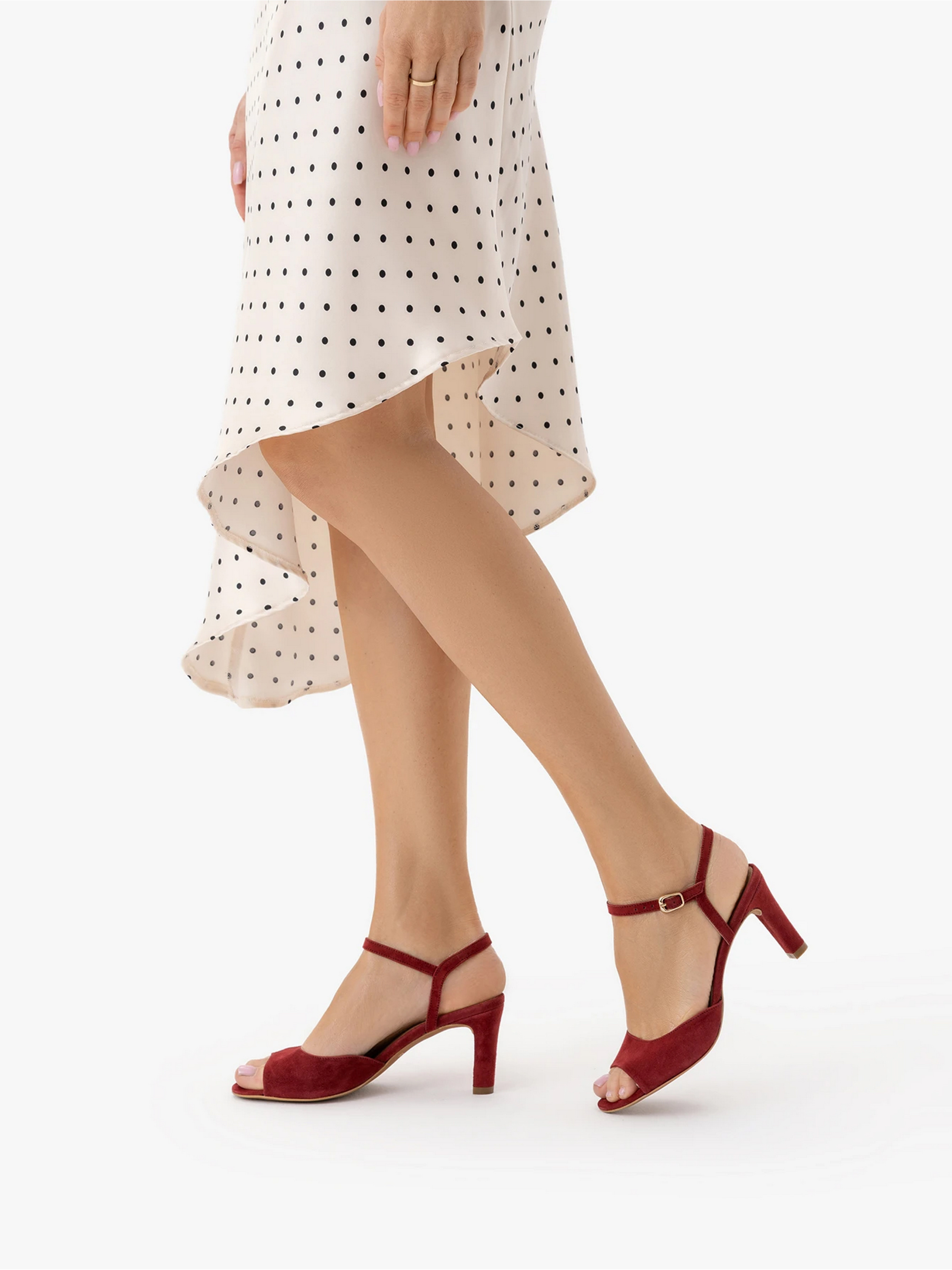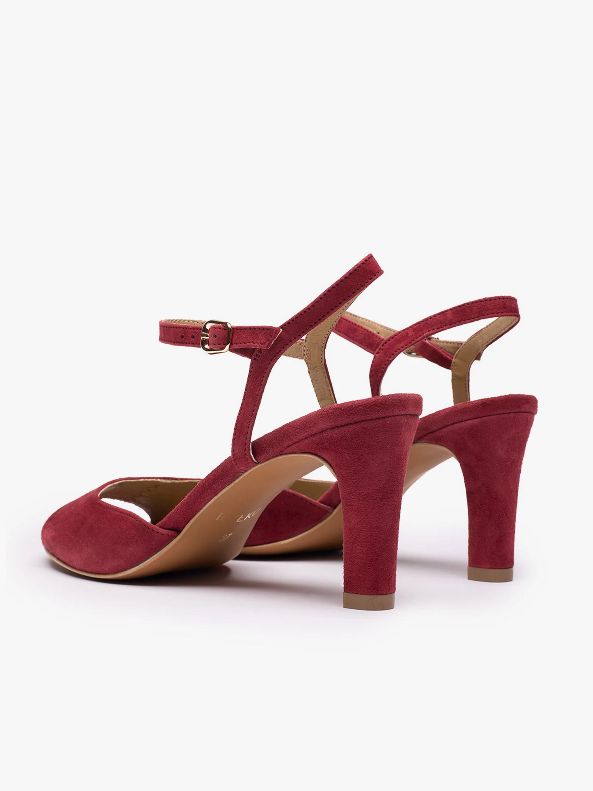 Жіночі замшеві босоніжки польського виробника RYLKO бордового кольору - елегантна та комфортна модель. Каблук висотою 7,5 см додає образу витонченості, а золотиста фурнітура ніжно підкреслює дизайн. Технологія R.SILENCE забезпечує комфорт протягом усього дня, завдяки гнучким набійкам, які гасять вібрації та зменшують шум під час ходьби. Ця модель підходить на стандартну (середню) повноту стопи. Щоб правильно обрати свій розмір, обов'язково використовуйте розмірну сітку RYŁKO EU: 35-23,3 см; 36-24 см; 36,5-24,3 см; 37-24,7 см; 37,5-25 см; 38-25,3 см; 38,5-25,7 см; 39-26 см; 39,5-26,3 см; 40-26,7 см; 40,5-27 см; 41-27,3 см; 42-28 см.