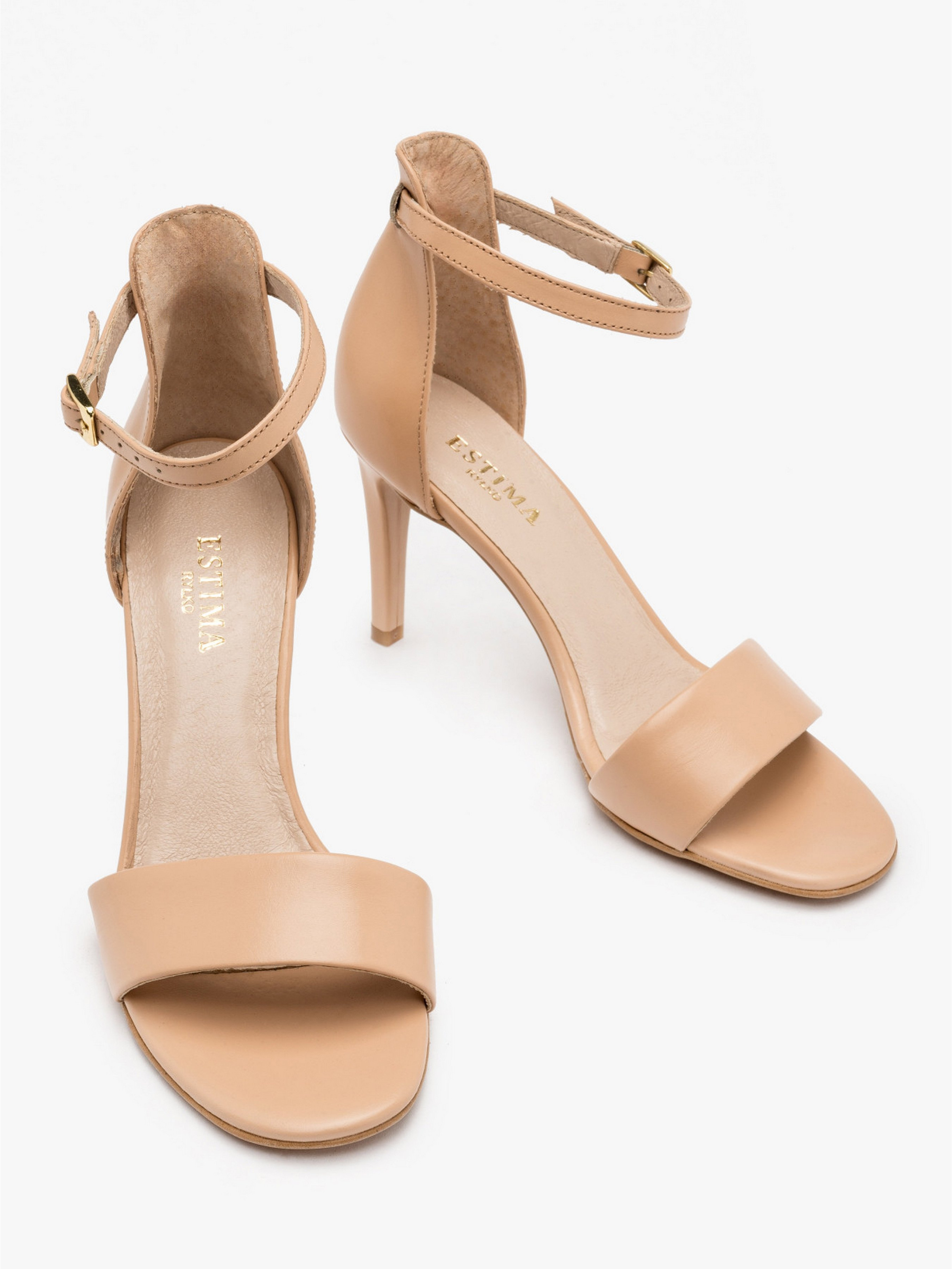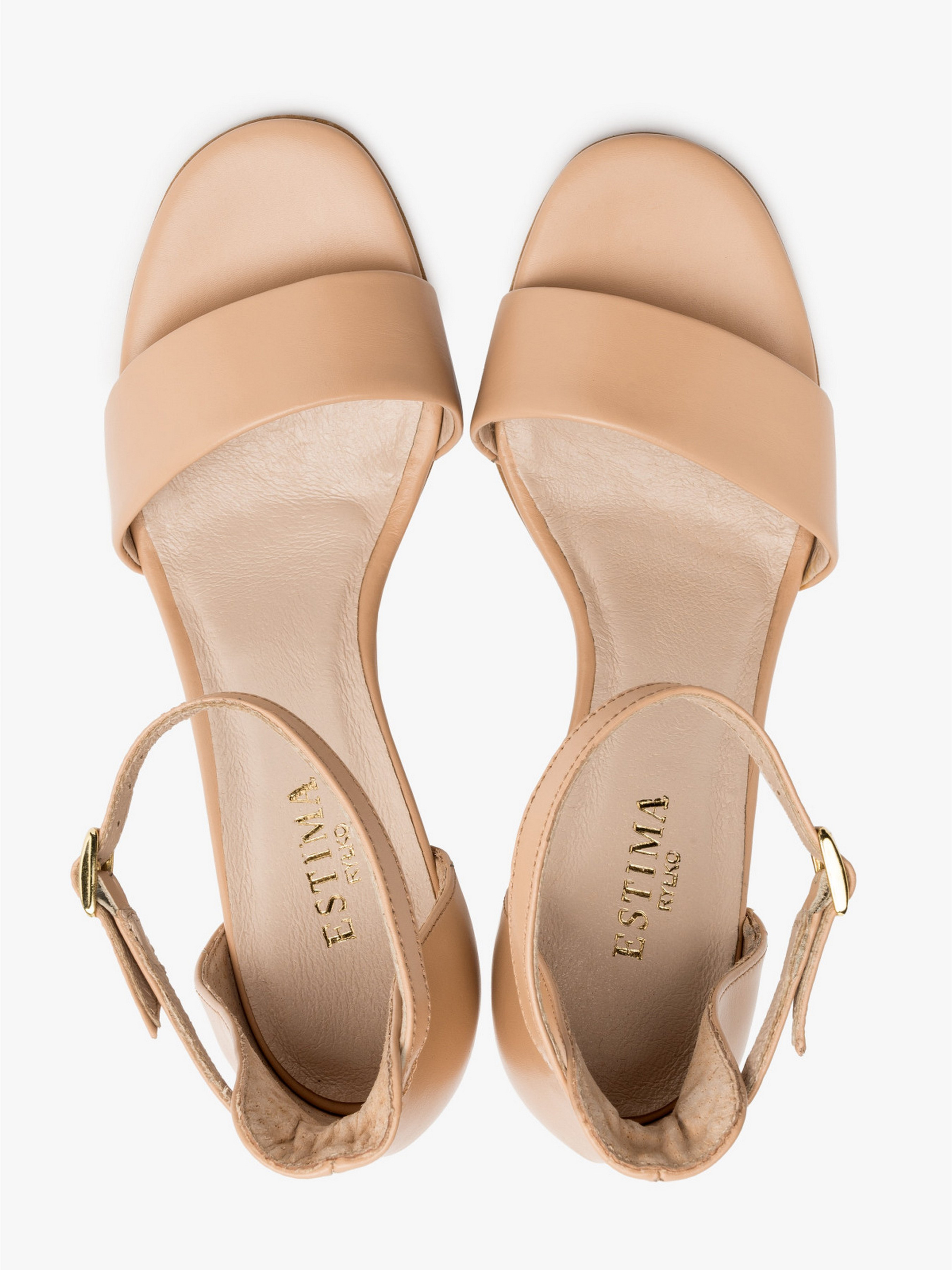 Шкіряні бежеві босоніжки польського виробника RYLKO серії ESTIMA із закритою п'ятою. Виконані з натуральної замші високої якості. Підходять на стандартну (середню) повноту стопи. Всередині - натуральна шкіра. Підбори, обтягнуті замшею, заввишки 8,5 см. Підошва - термополіуретан (ТПУ). Застібка - пряжка золотистого кольору.