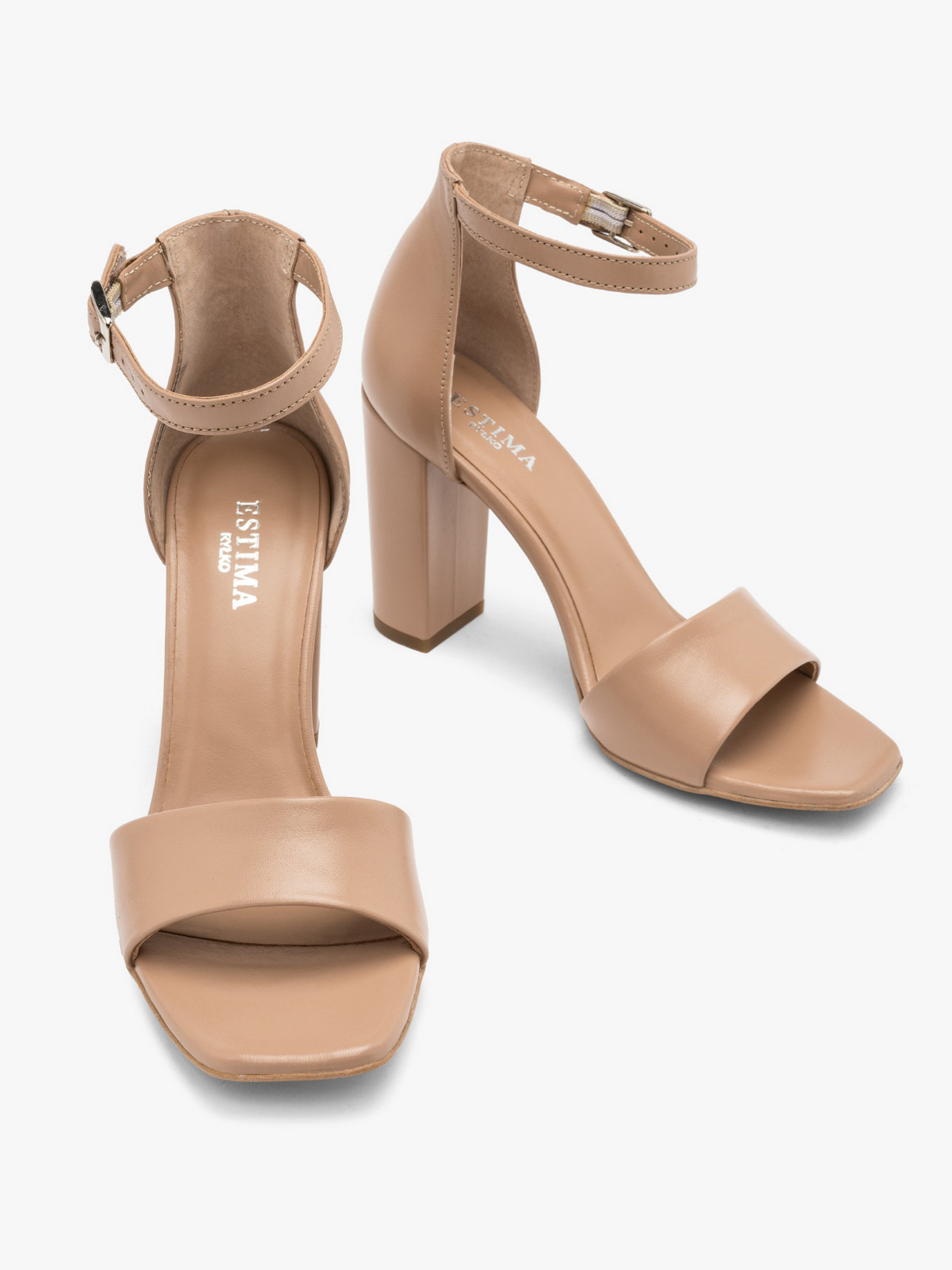 Шкіряні бежеві босоніжки польського виробника RYLKO серії ESTIMA із закритою п'ятою. Виконані з натуральної лицьової шкіри високої якості. Підходять на стандартну (середню) повноту стопи. Всередині - натуральна шкіра. Підбори, обтягнуті шкірою, заввишки 9,5 см. Застібка - пряжка з резинкою. В моделі використана технологія R.SILENCE - це приглушення ударів підбору, досягнуте завдяки застосуванню технологічно нової набійки, що гасить вібрації при ходьбі.