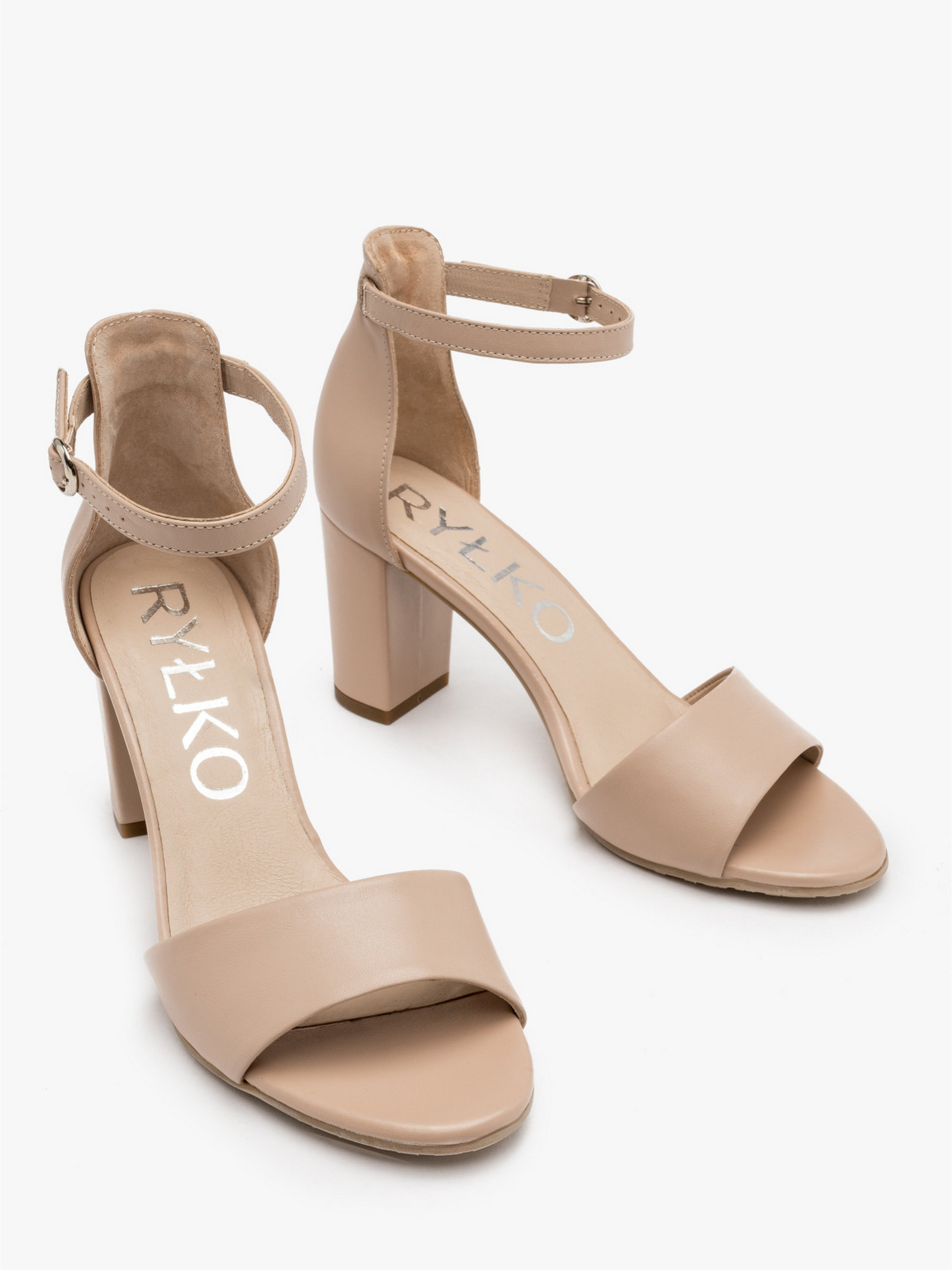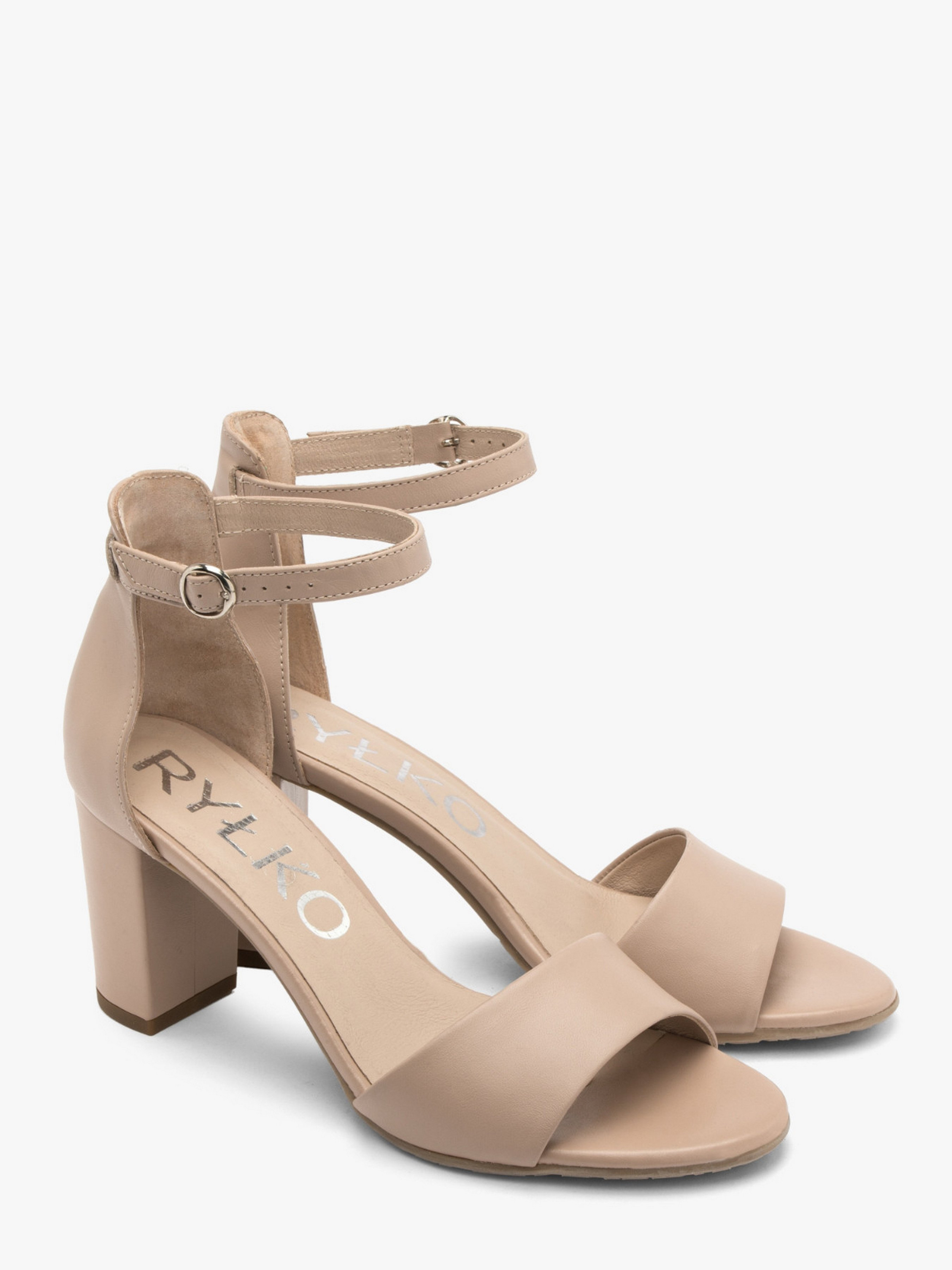 Шкіряні бежеві босоніжки польського виробника RYLKO із закритою п'ятою. Виконані з натуральної лицьової шкіри високої якості. Підходять на стандартну (середню) повноту стопи. Всередині - натуральна шкіра. Підбори, обтягнуті шкірою, заввишки 7,5 см. Застібка - пряжка сріблястого кольору. В моделі використана технологія R.SILENCE - це приглушення ударів підборів, досягнуте завдяки застосуванню технологічно нової набійки, що гасить вібрації при ходьбі.