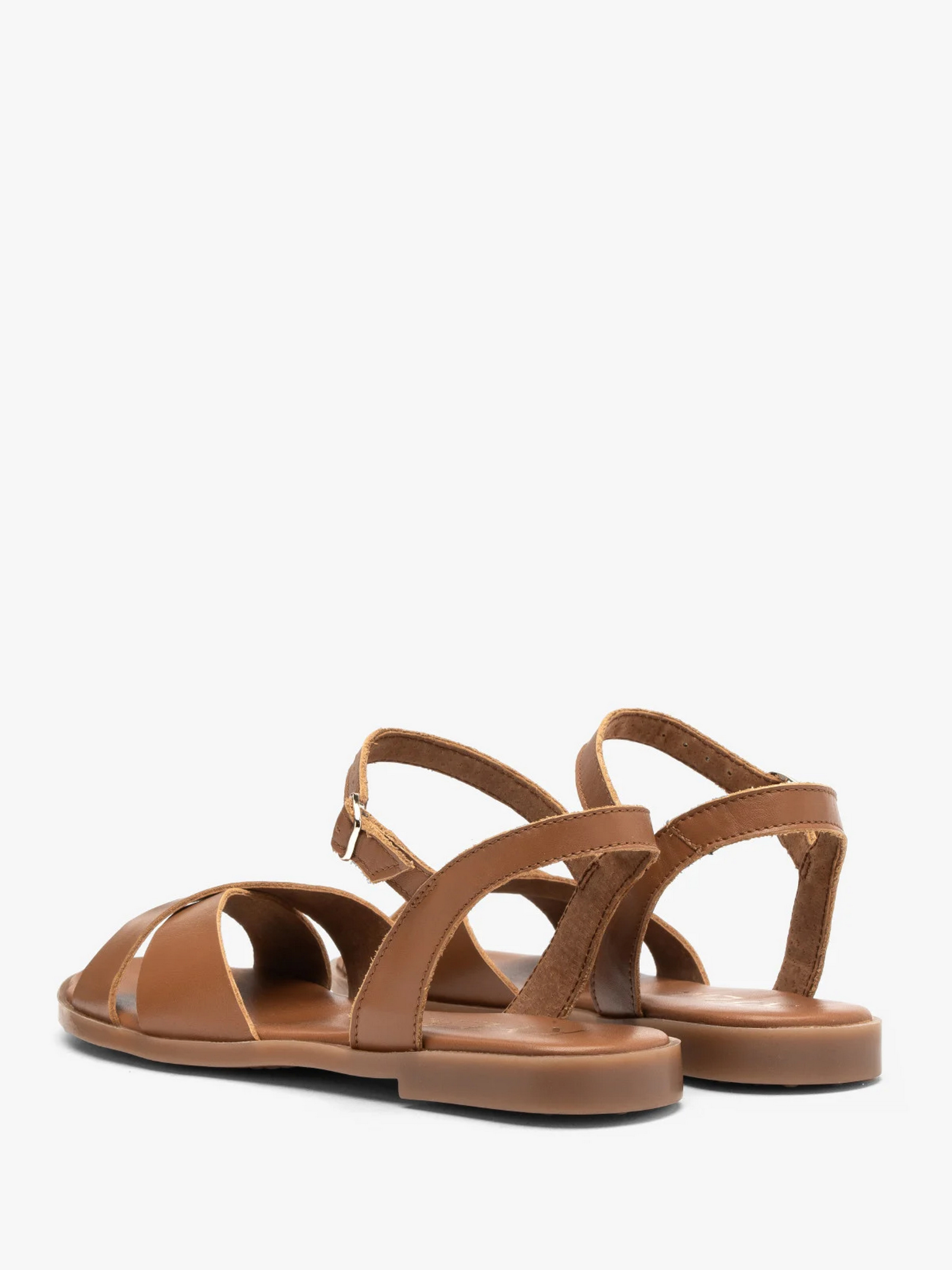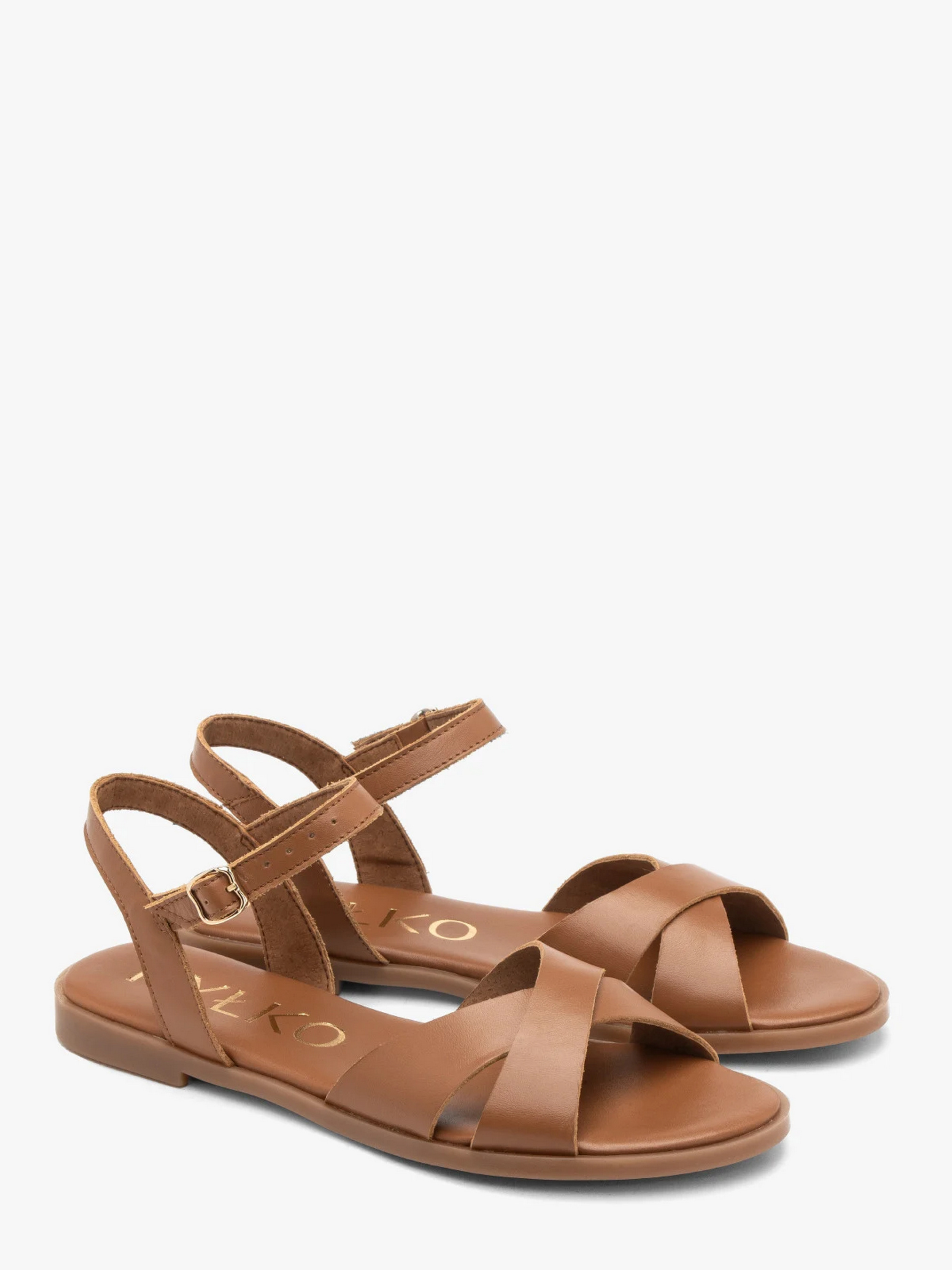 Шкіряні сандалії польського виробника RYLKO коричневого кольору. Модель виготовлена з натуральної шкіри преміум якості. На плоскій, еластичній та легкій поліуретановій підошві. Підходять на стандартну (середню) повноту стопи. Всередині натуральна шкіра. Застібка - пряжка золотистого кольору.
