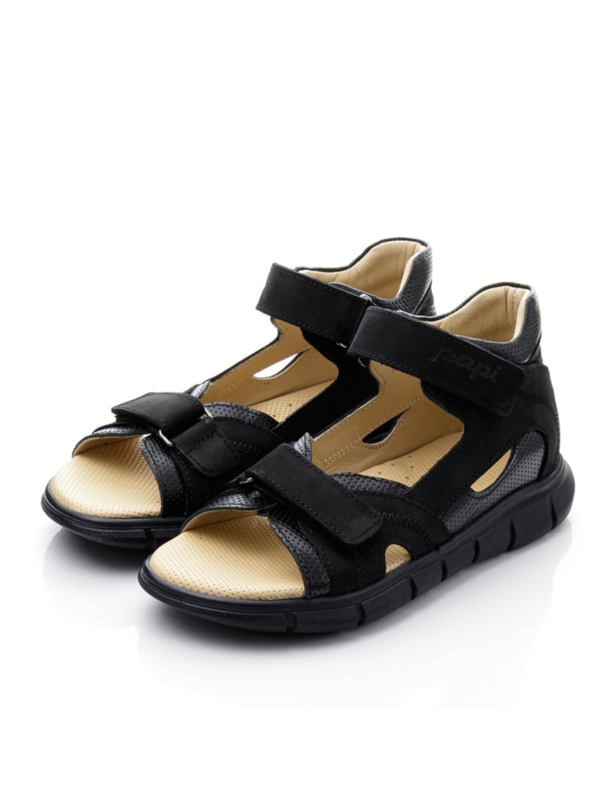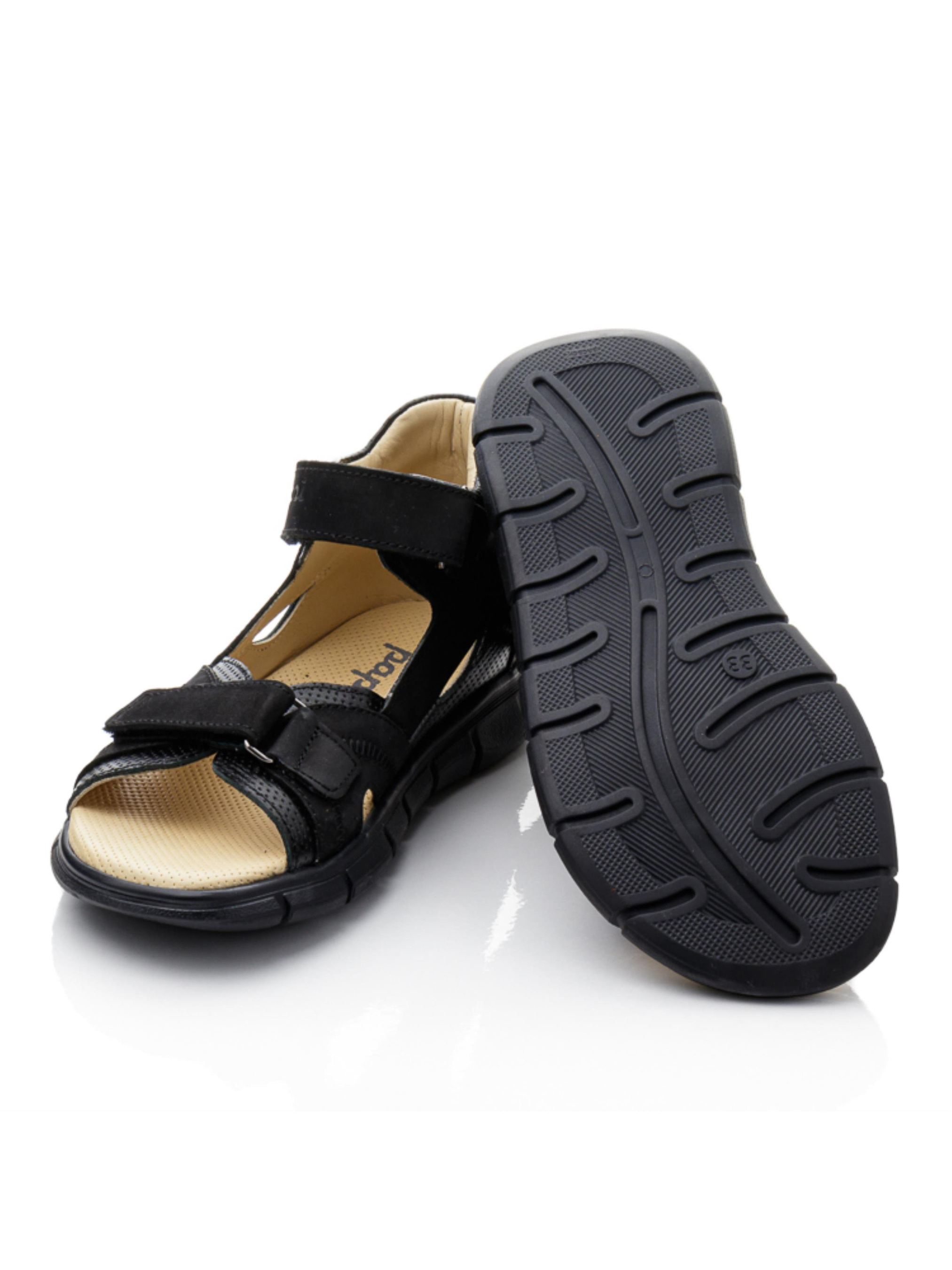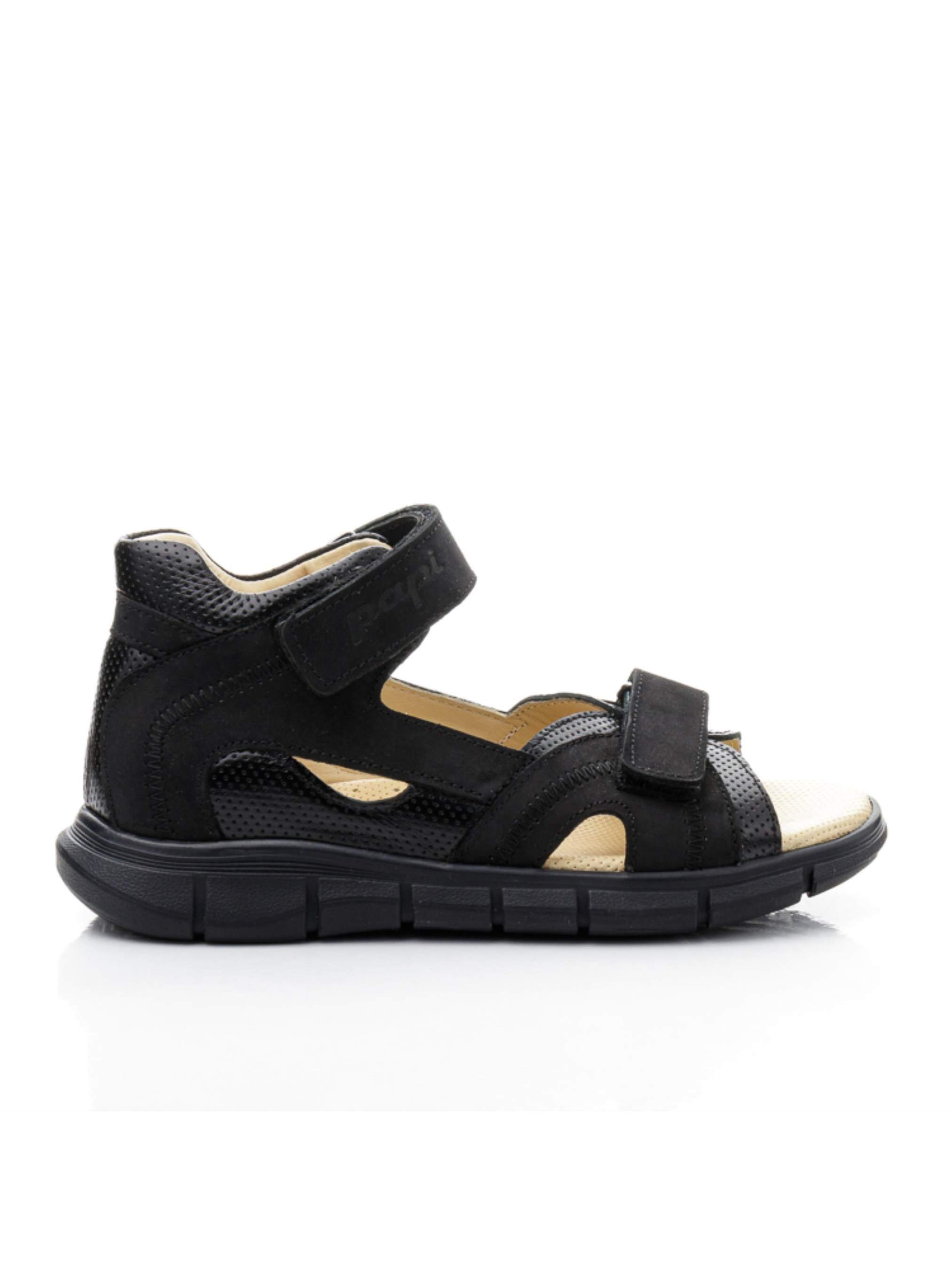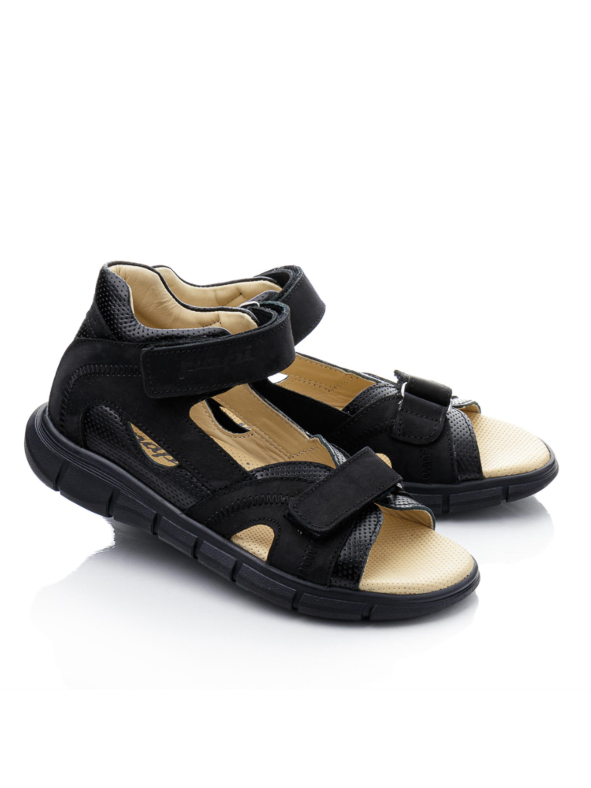 Шукаєте зручні та якісні босоніжки для хлопчика або підлітка? Зверніть увагу на цю стильну модель у чорному кольорі, створену для активного літа! Босоніжки виготовлені з натуральної шкіри та нубуку, а завдяки максимально відкритому дизайну нога в них добре дихає. Жорсткий задник та супінатор забезпечують правильну фіксацію стопи, а анатомічна устілка з перфорованої шкіри дарує додатковий комфорт під час ходьби. Спортивна підошва гнучка та легка — ідеальна для прогулянок і рухливих ігор. Зручна фіксація на дві липучки дозволяє швидко взувати та знімати взуття. Модель підійде як для молодших хлопчиків, так і для підлітків — стиль і комфорт у кожному кроці!