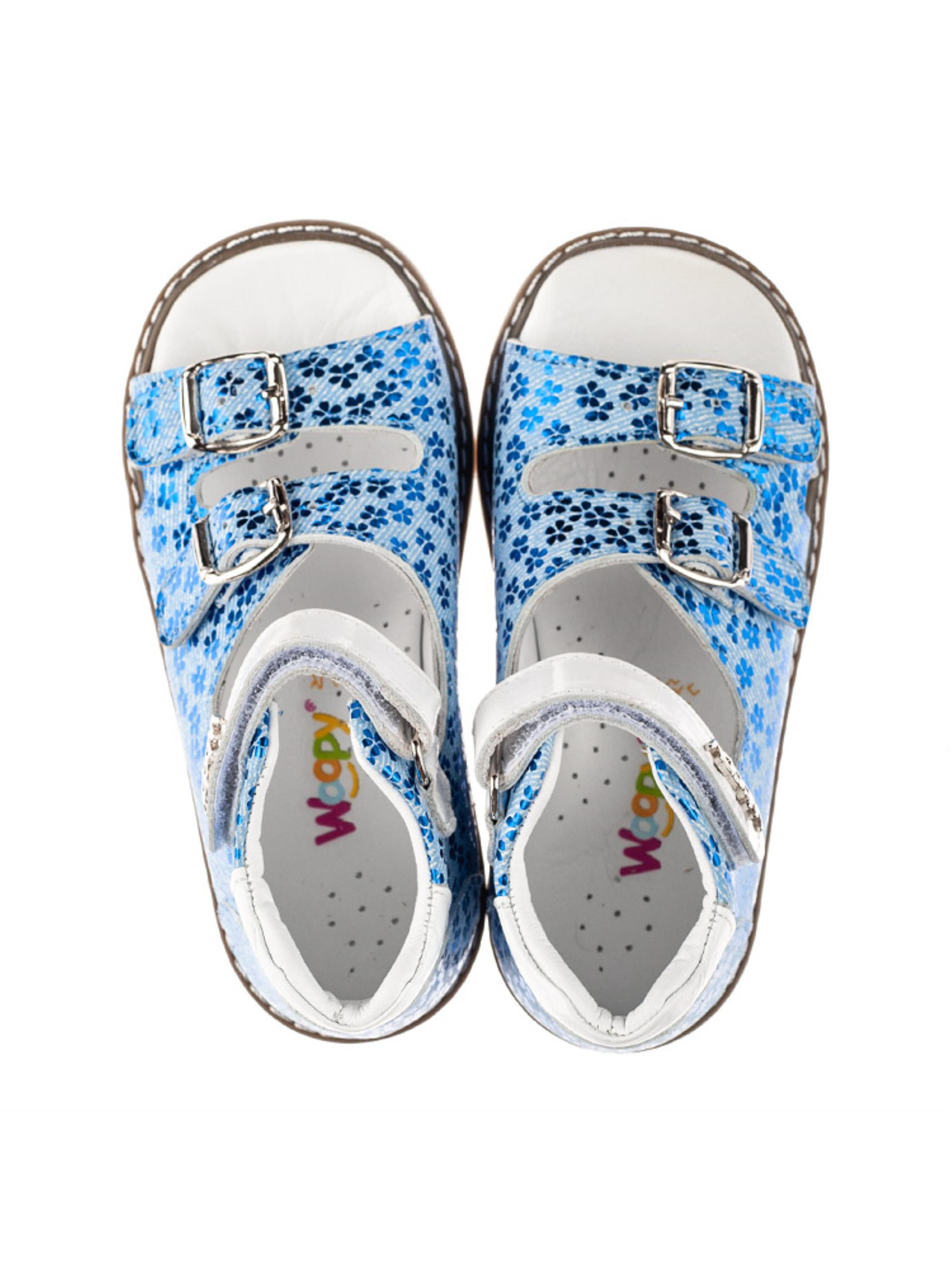 Woopy Orthopedic представлений колекцією босоніжок, туфель, ортопедичних босоніжок/туфель з високим берцем, демісезонних та зимових черевик, які забезпечують профілактику та лікування плосковальгусної деформації стопи і мають важливі ортопедичні елементи дитячого взуття: каблук Томаса, жорсткий задник, супінатор та анатомічно правильну устілку.