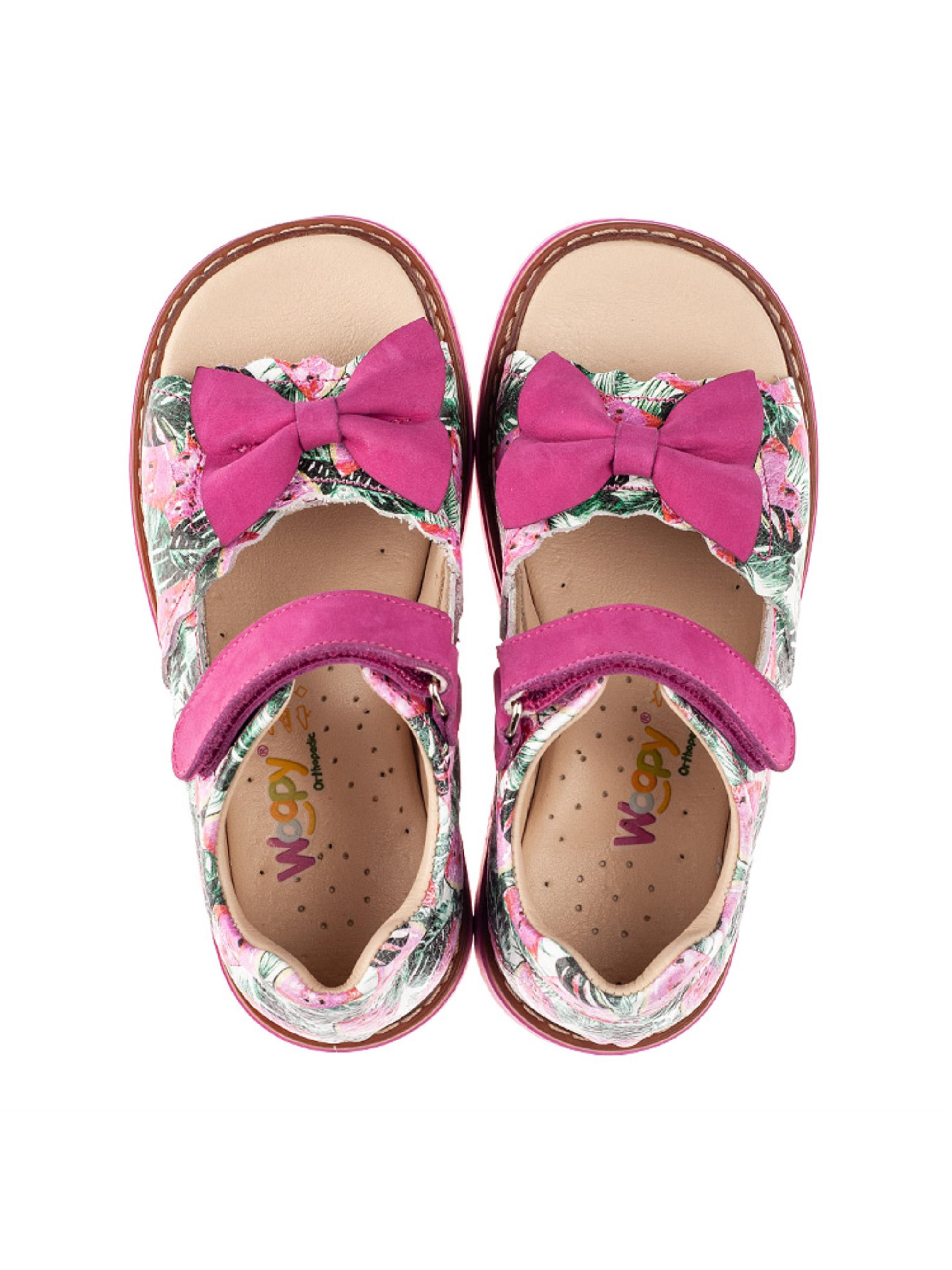 Woopy Orthopedic представлений колекцією босоніжок, туфель, ортопедичних босоніжок/туфель з високим берцем, демісезонних та зимових черевик, які забезпечують профілактику та лікування плосковальгусної деформації стопи і мають важливі ортопедичні елементи дитячого взуття: каблук Томаса, жорсткий задник, супінатор та анатомічно правильну устілку.