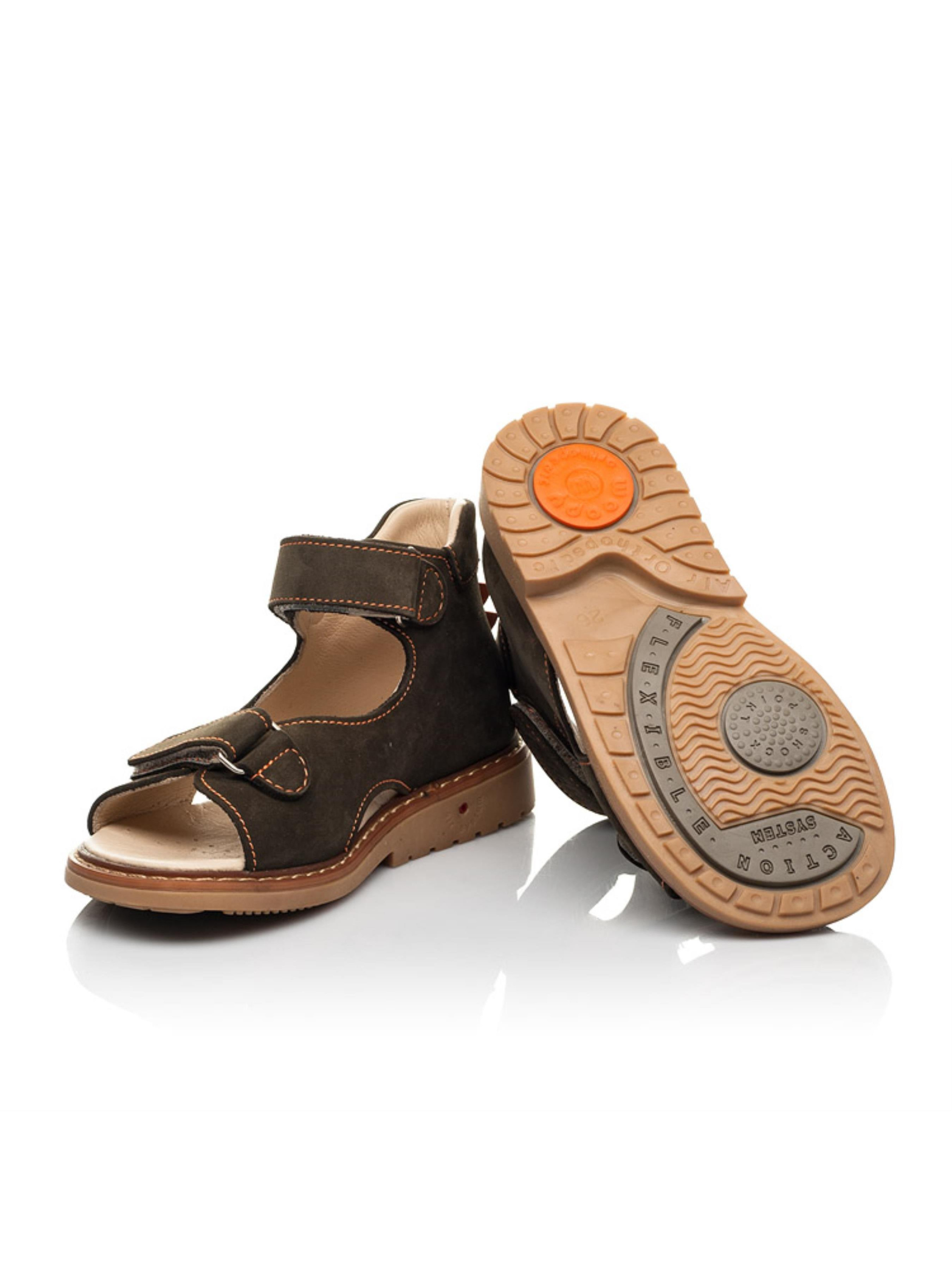Вражаючі босоніжки для хлопчика поєднують в собі якість, стиль та комфорт. Дитячі босоніжки для хлопчика створені з натурального нубука глибокого зеленого кольору, матеріал підкладки та устілки - натуральна гладка шкіра. Популярний фасон круто доповнено гребінцем дракончика контрастного рудого кольору. Спосіб застібання - дві надійні липучки. Верхня липучка-застібка оздоблена тисненням з логотипом виробника Woopy. Дитячі босоніжки для хлопчика мають усі важливі ортопедичні елементи дитячого взуття: каблук Томаса, жорсткий задник, супінатор та анатомічно правильну устілку. Такі неймовірні босоніжки подарують комфорт улюбленим дитячим ніжкам в щоденних активних прогулянках.