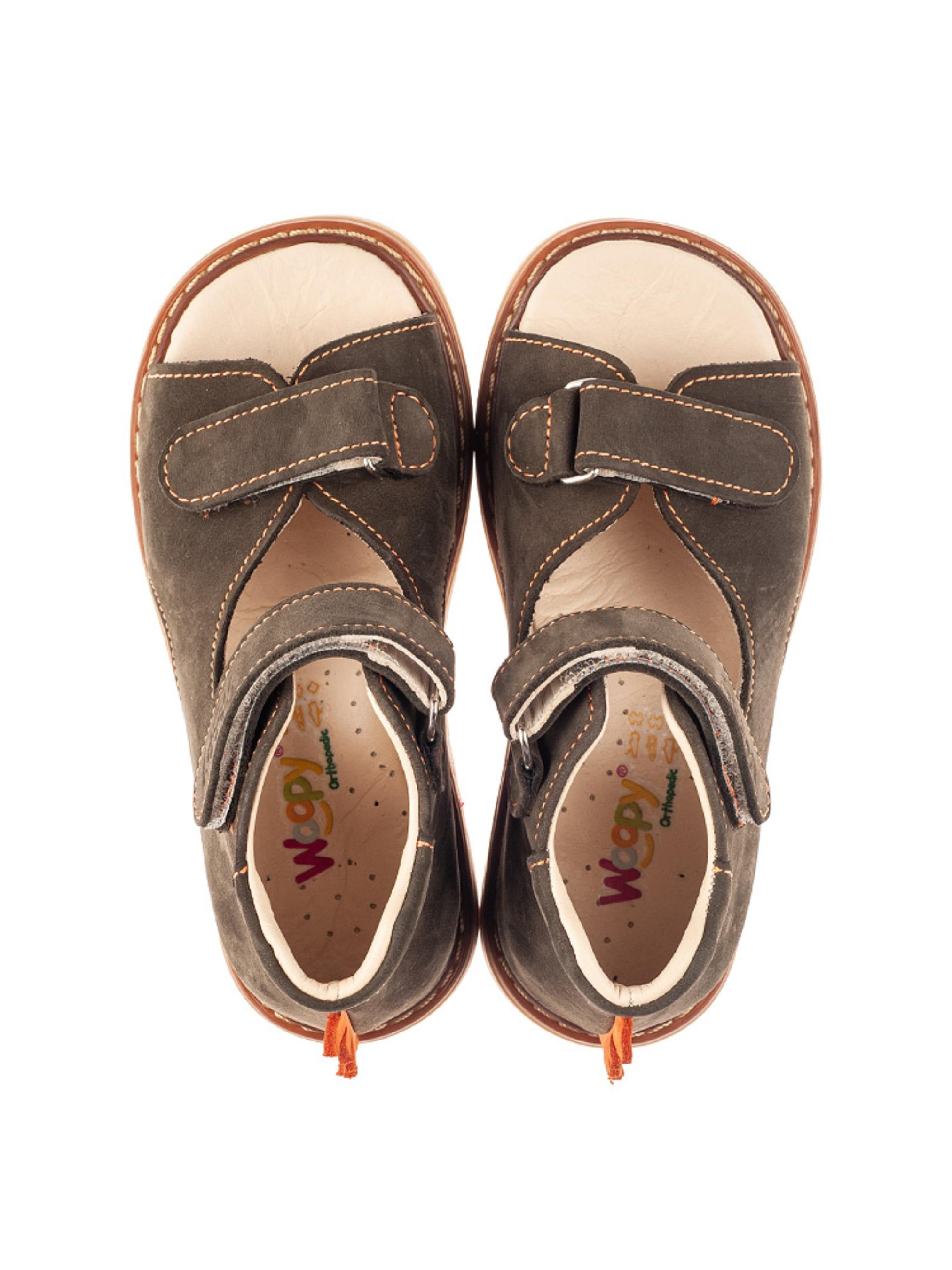 Woopy Orthopedic представлений колекцією босоніжок, туфель, ортопедичних босоніжок/туфель з високим берцем, демісезонних та зимових черевик, які забезпечують профілактику та лікування плосковальгусної деформації стопи і мають важливі ортопедичні елементи дитячого взуття: каблук Томаса, жорсткий задник, супінатор та анатомічно правильну устілку.