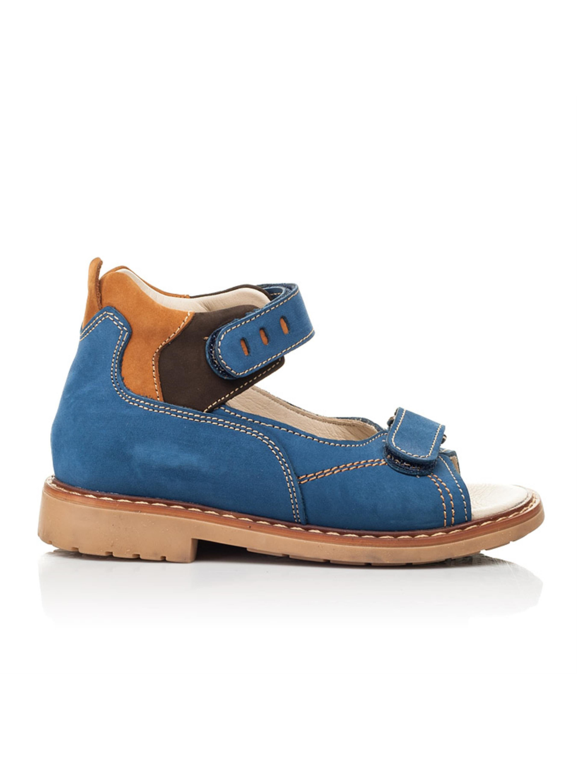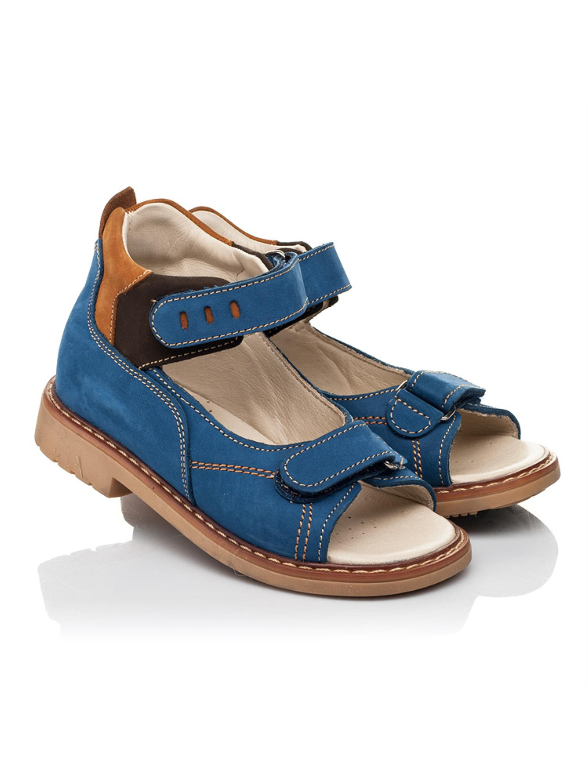 Знайомтесь з лаконічною та якісною парою босоніжок для хлопчика. Дитячі босоніжки для хлопчика пошиті з натурального нубука в комбінації трьох кольорів: синього, коричневого та темно-коричневого. Матеріал підкладки та устілки - натуральна шкіра. Батьки можуть бути спокійні за здоров'я дитячих стоп, адже босоніжки для хлопчика пошиті з врахуванням усіх елементів дитячого взуття: каблук Томаса, супінатор, жорсткий задник та анатомічна устілка. Елементом оздоблення пари виступають численні контрастні шви, які додають босоніжкам витонченості. Дві надійні застібки-липучки пришвидшать процес взування та зафіксують дитячу стопу у фізіологічно правильному положенні.