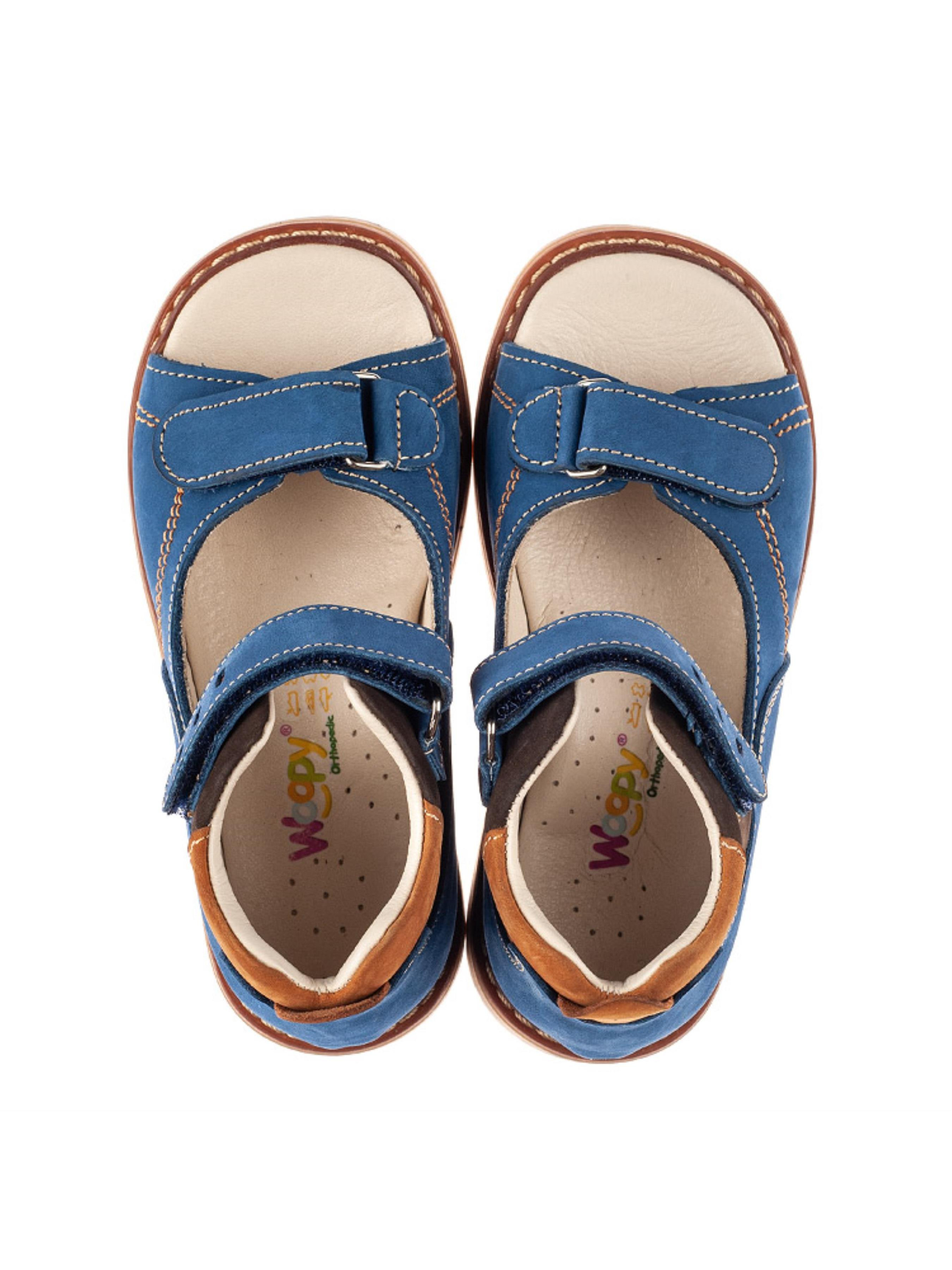 Woopy Orthopedic представлений колекцією босоніжок, туфель, ортопедичних босоніжок/туфель з високим берцем, демісезонних та зимових черевик, які забезпечують профілактику та лікування плосковальгусної деформації стопи і мають важливі ортопедичні елементи дитячого взуття: каблук Томаса, жорсткий задник, супінатор та анатомічно правильну устілку.